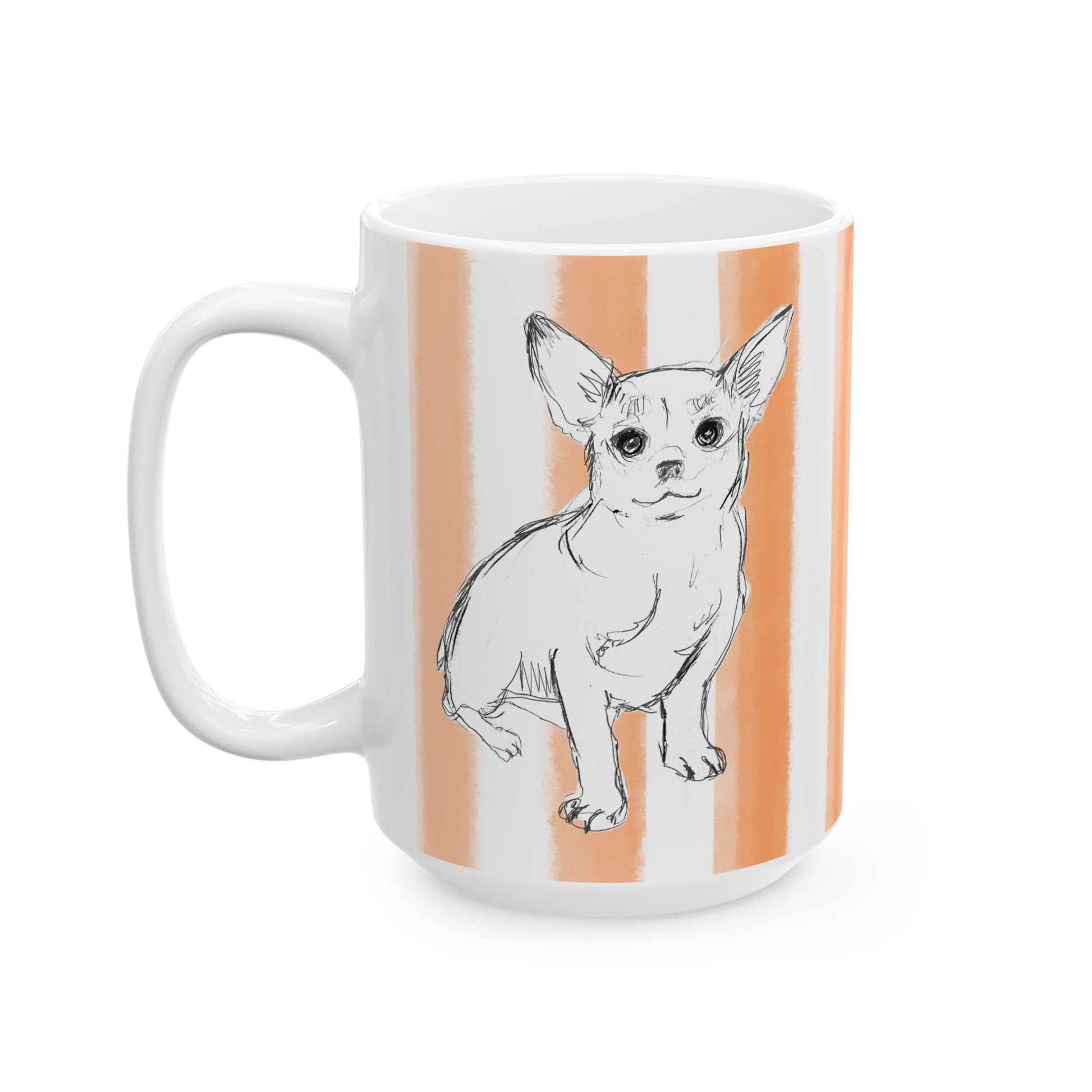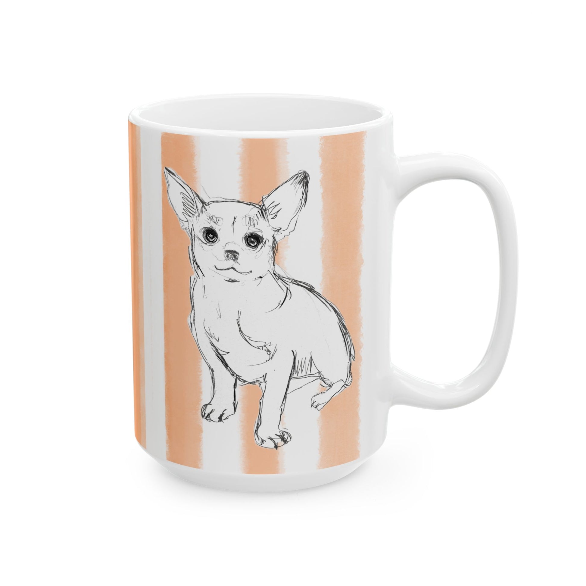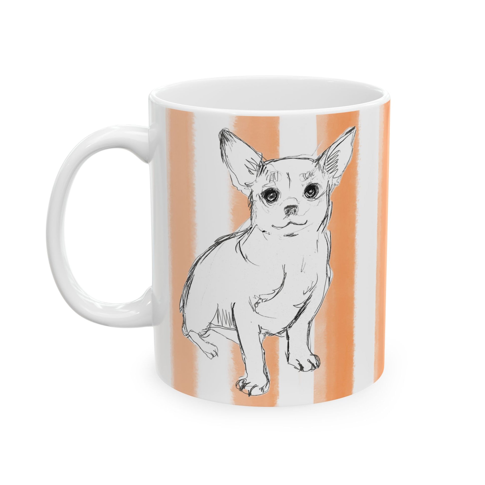 Start your day with more than just a warm drink—start it with a burst of color and the company of a very special pup. These beautifully printed ceramic mugs from Periwinkles Design feature Laurie's art and hand-watercolored rainbow stripes and the sweetest dog you’ll ever meet: Brownie, always ready to brighten your day with his happy face.