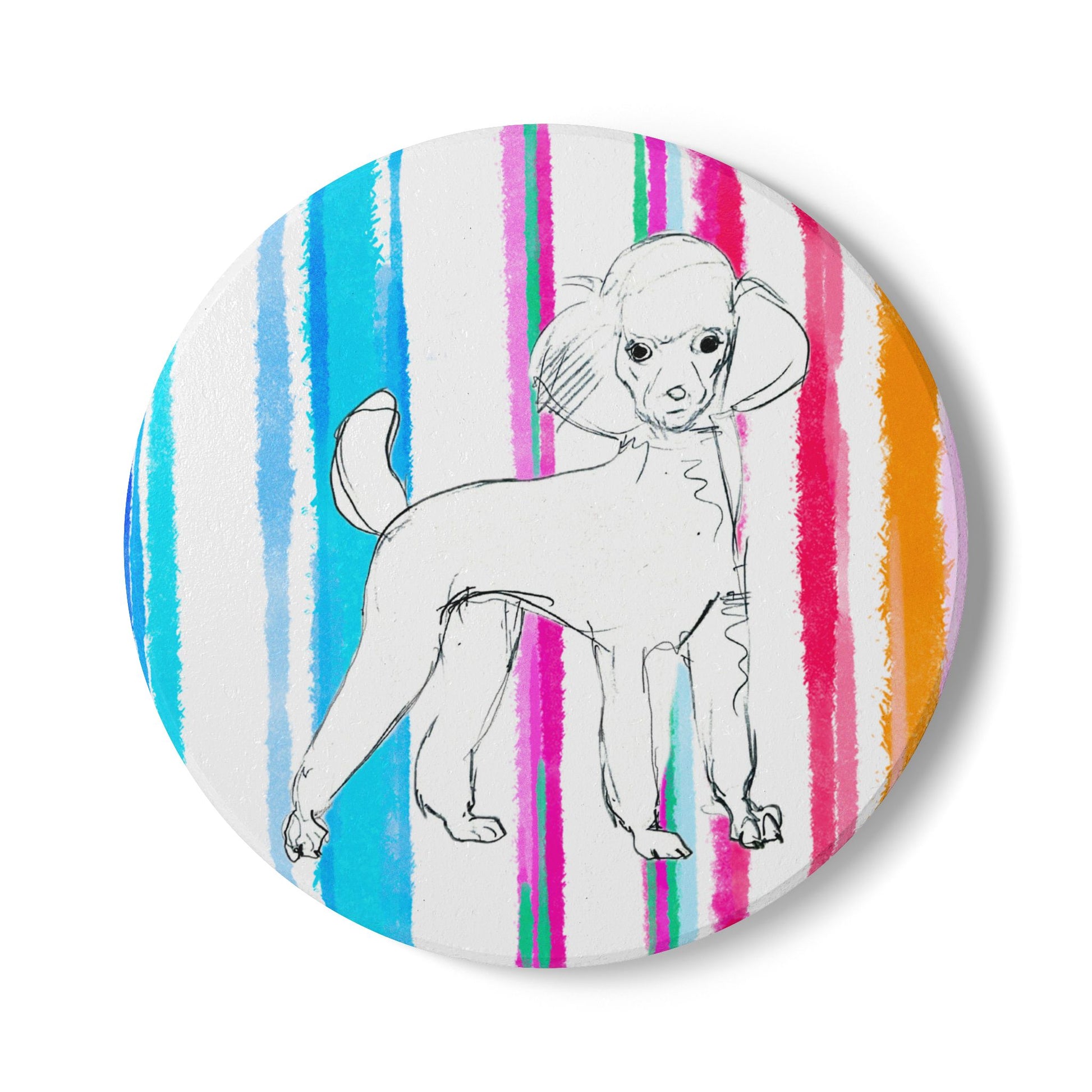 Dogi Fun Poodle Ceramic Coaster in Multi-color Stripes
