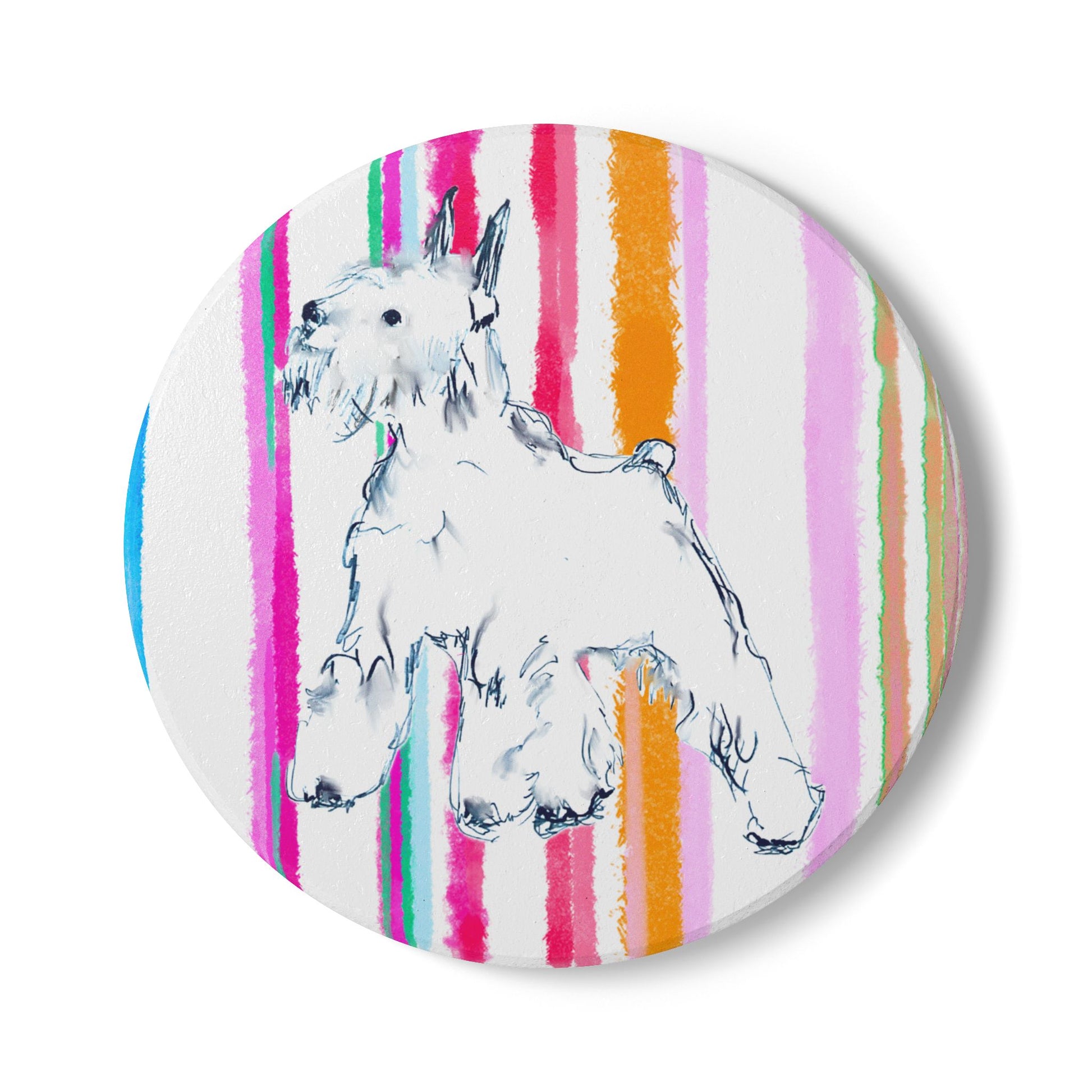 Dogi Fun Schnauzer Doggie Ceramic Coaster in Multi-stripes