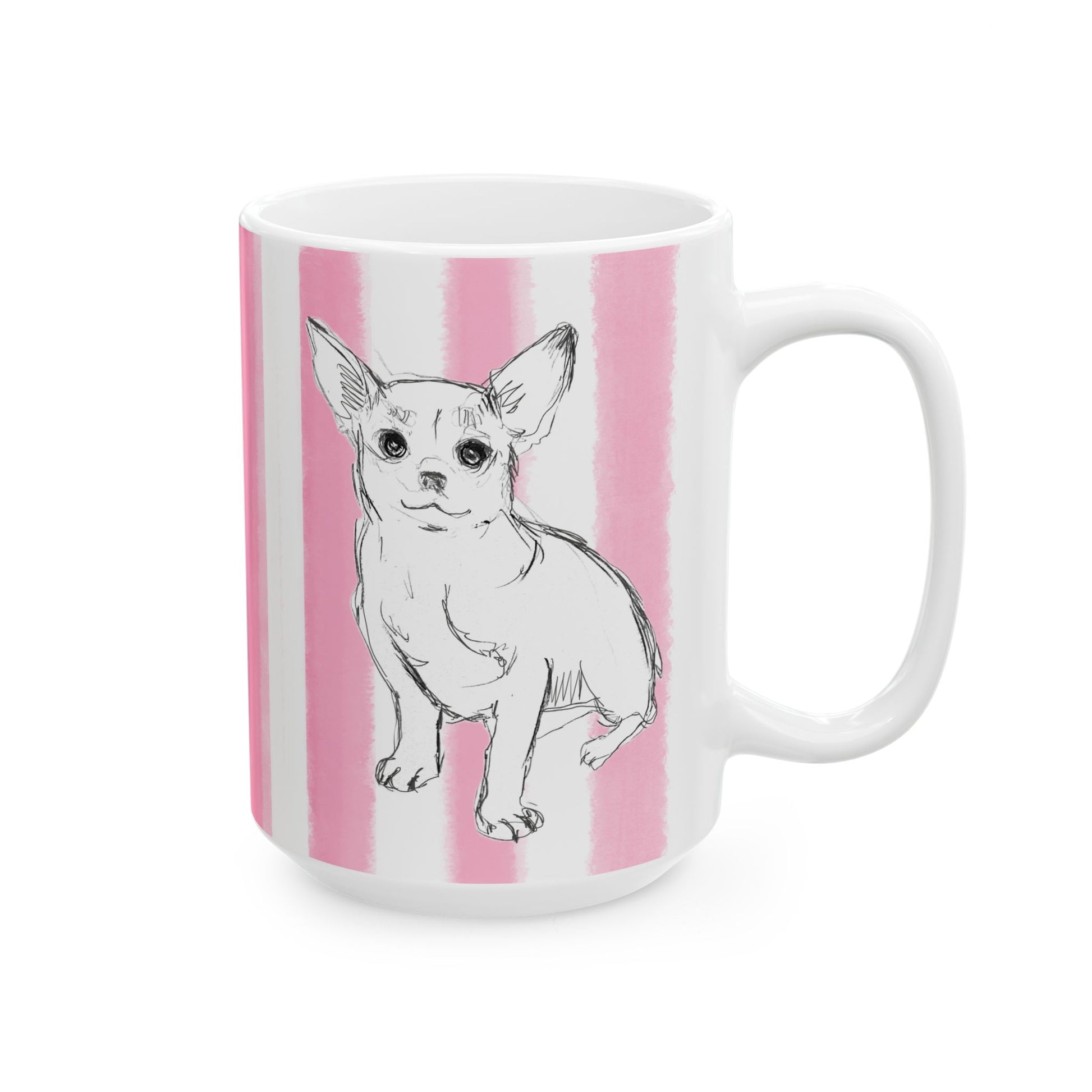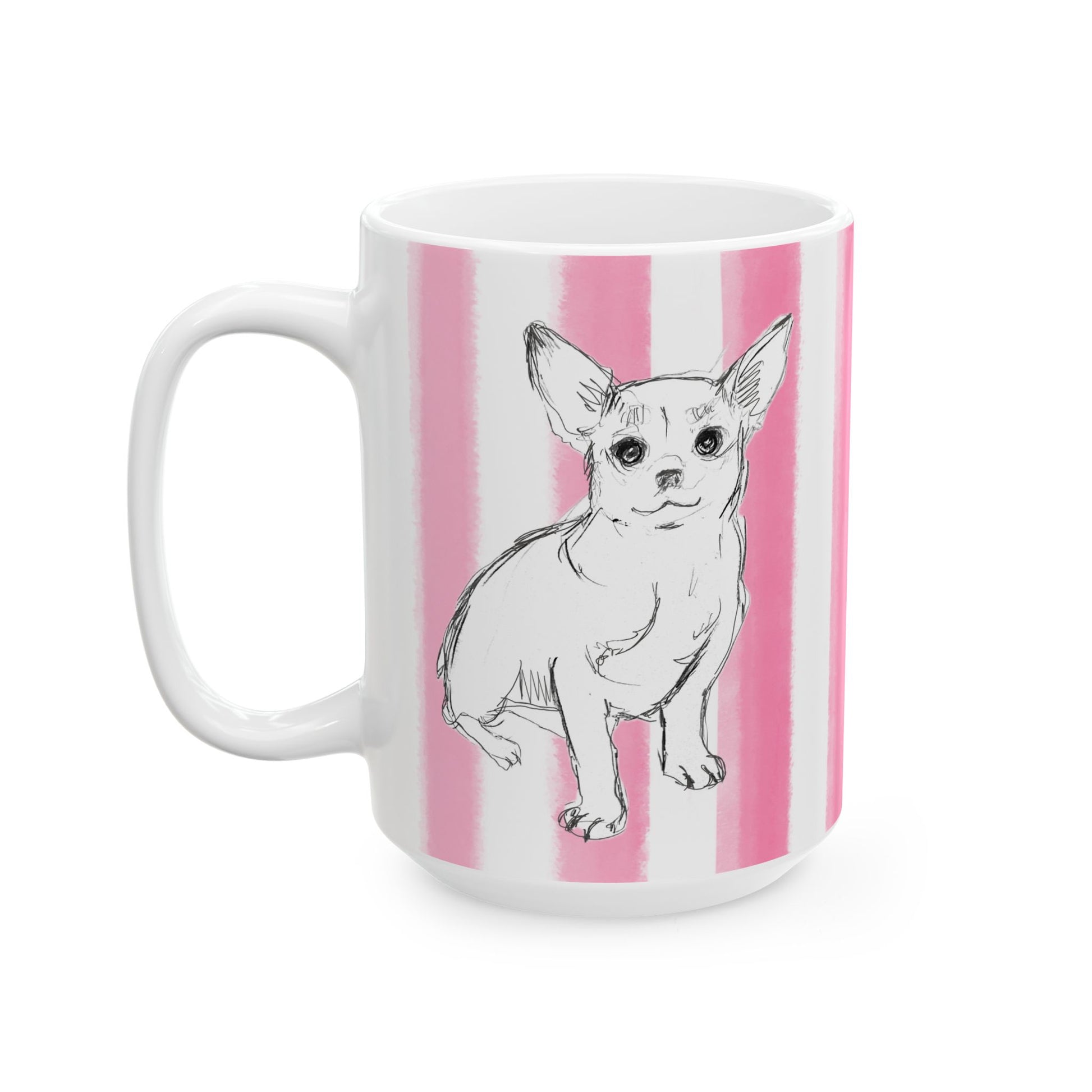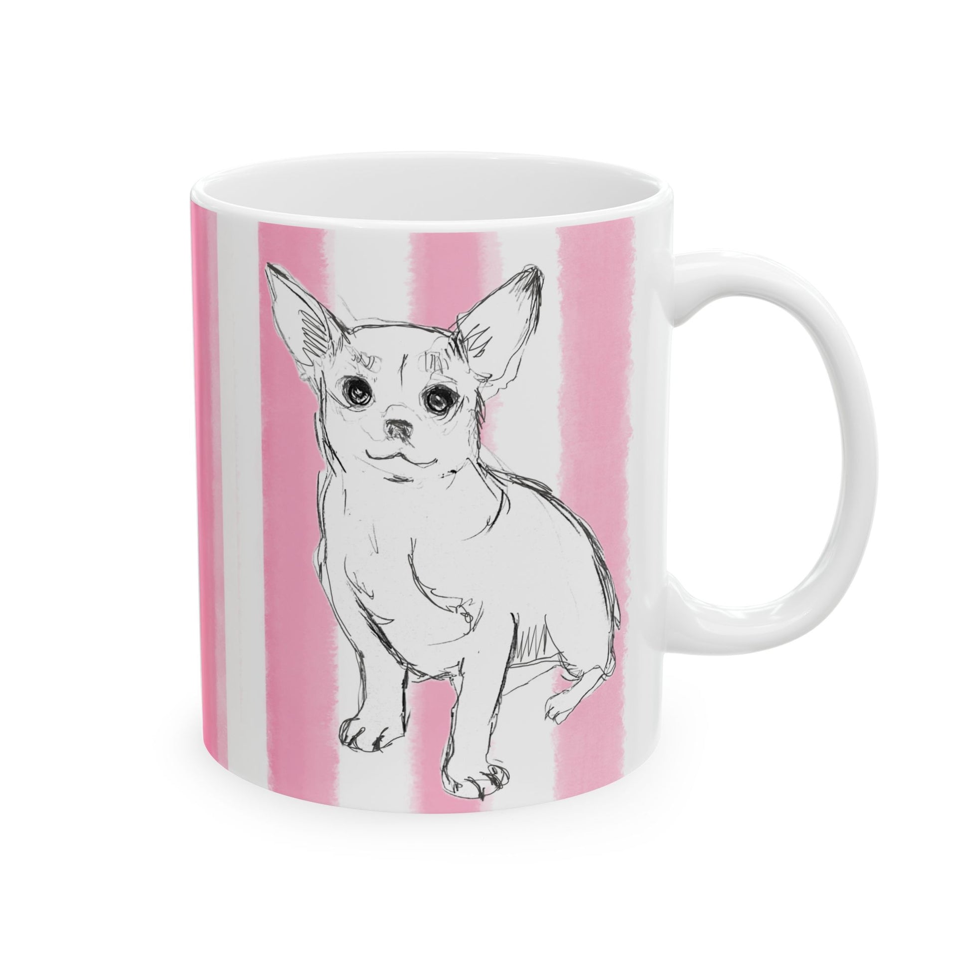 Start your day with more than just a warm drink—start it with a burst of color and the company of a very special pup. These beautifully printed ceramic mugs from Periwinkles Design feature Laurie's art hand-watercolored rainbow stripes and the sweetest dog you’ll ever meet: Brownie, always ready to brighten your day with his happy face.