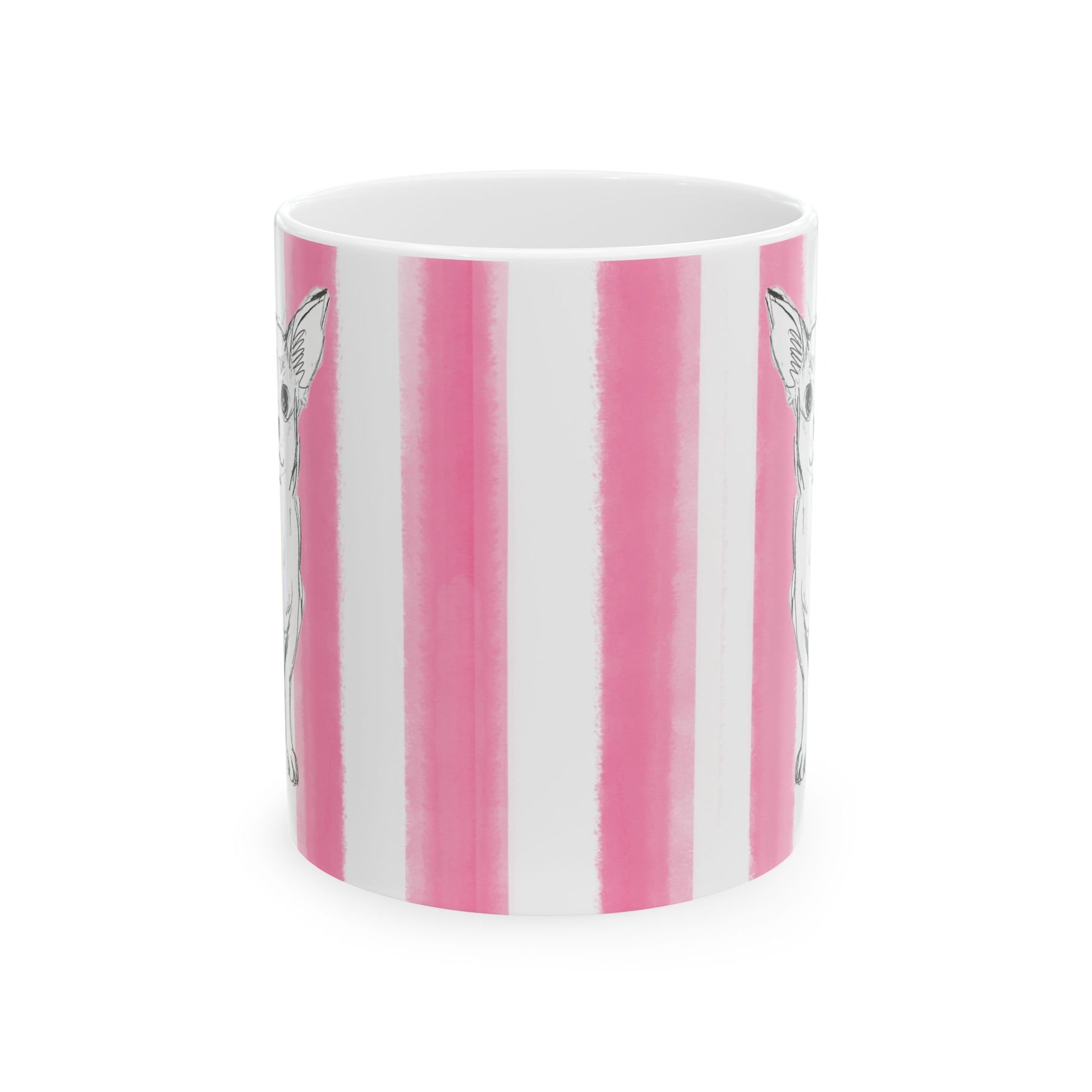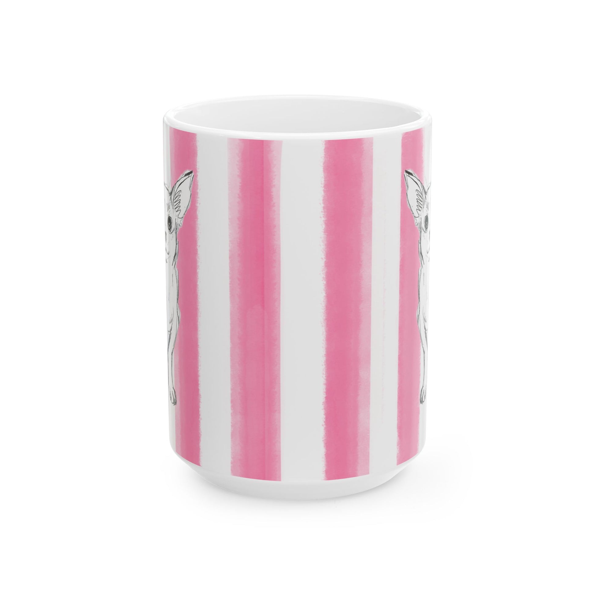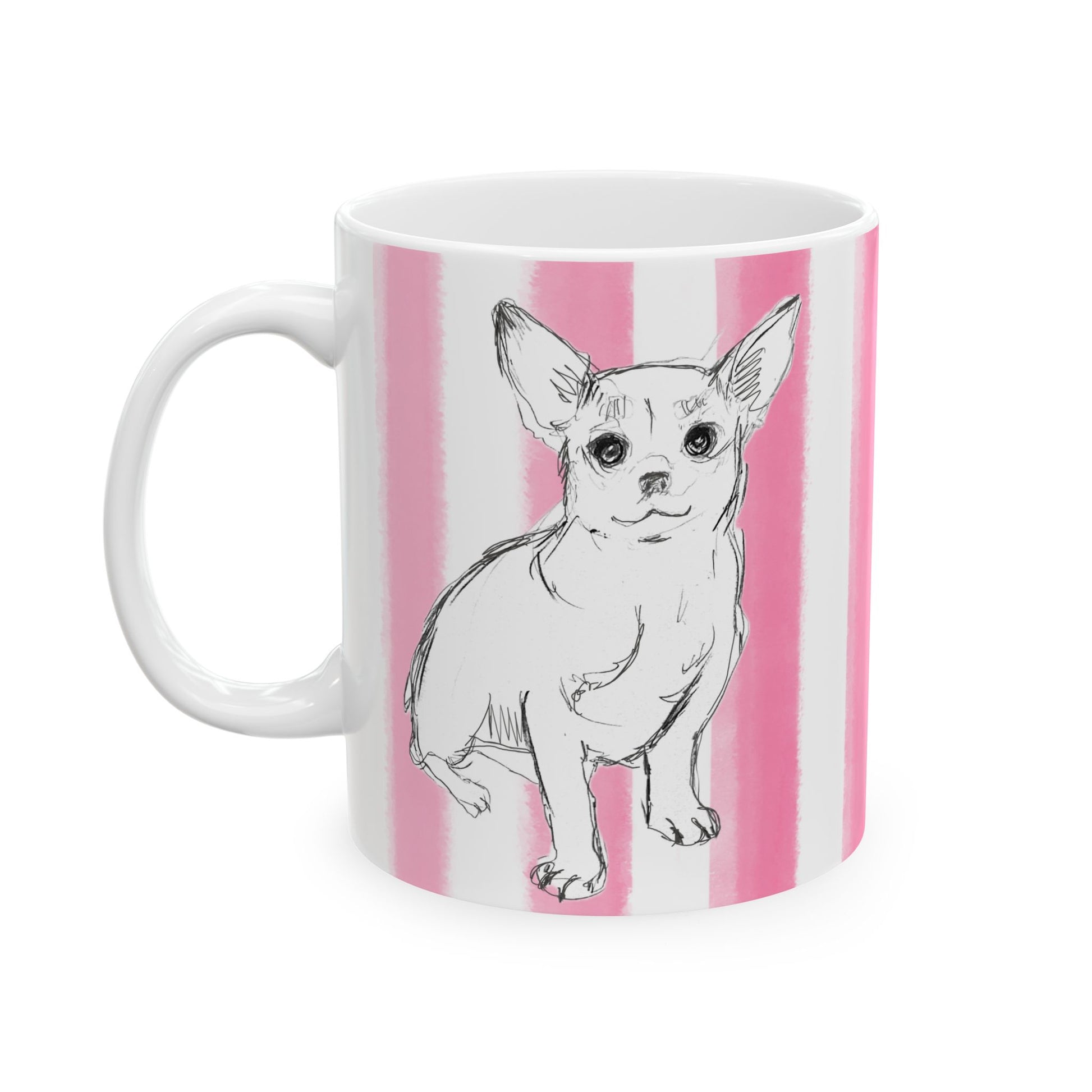 Start your day with more than just a warm drink—start it with a burst of color and the company of a very special pup. These beautifully printed ceramic mugs from Periwinkles Design feature Laurie's art hand-watercolored rainbow stripes and the sweetest dog you’ll ever meet: Brownie, always ready to brighten your day with his happy face.