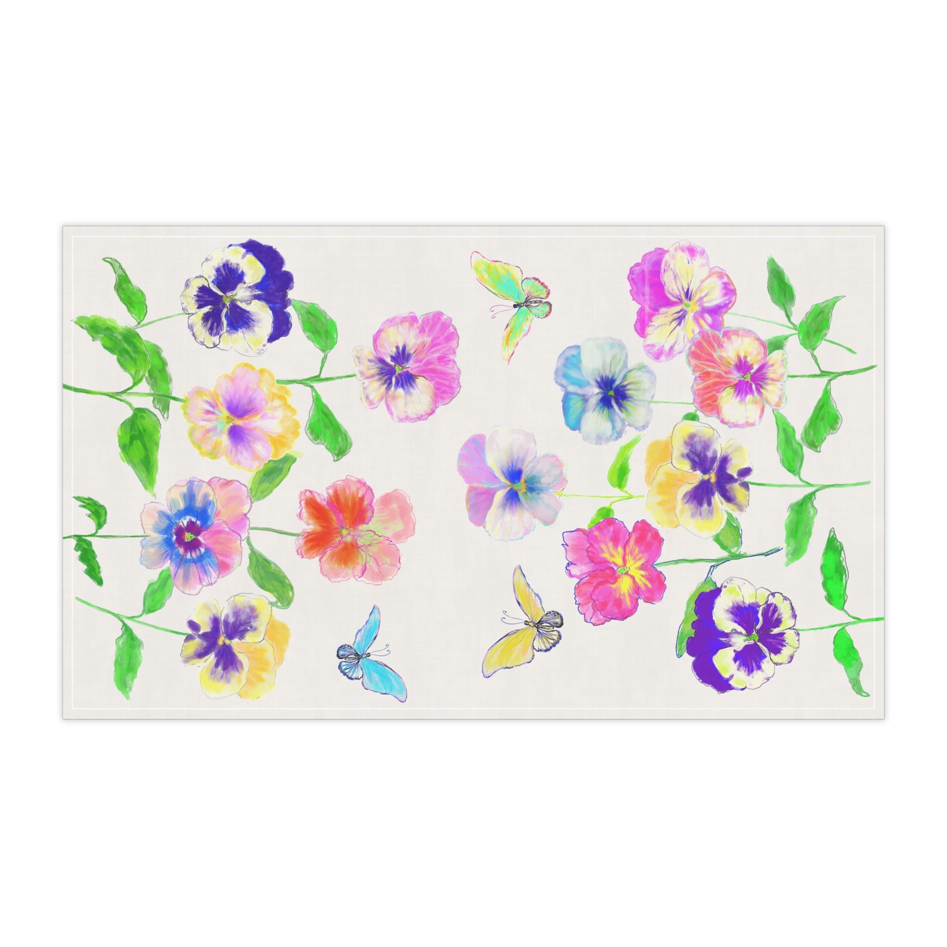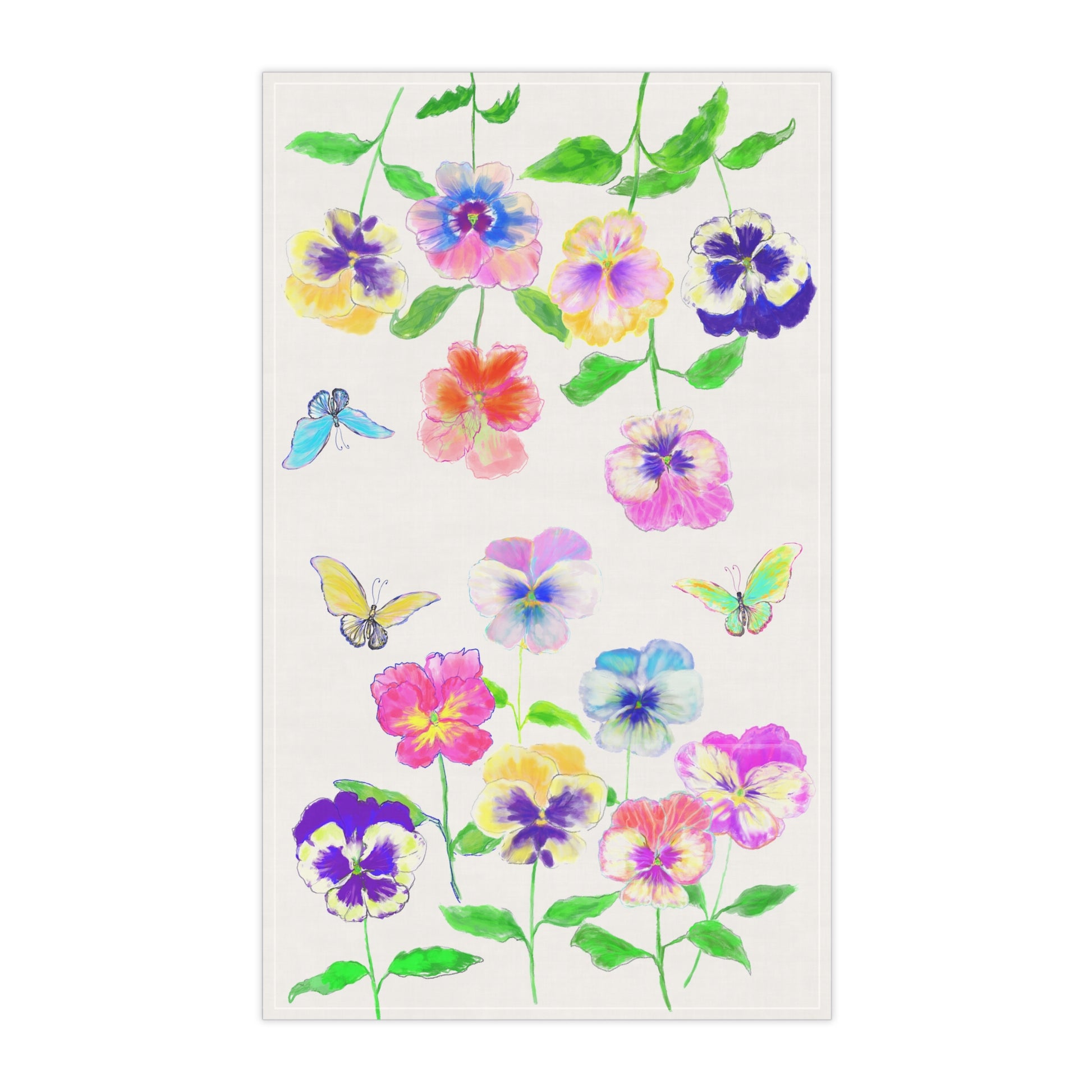 🌸 Periwinkles Design – “Pansy Parade” Kitchen Tea Towel