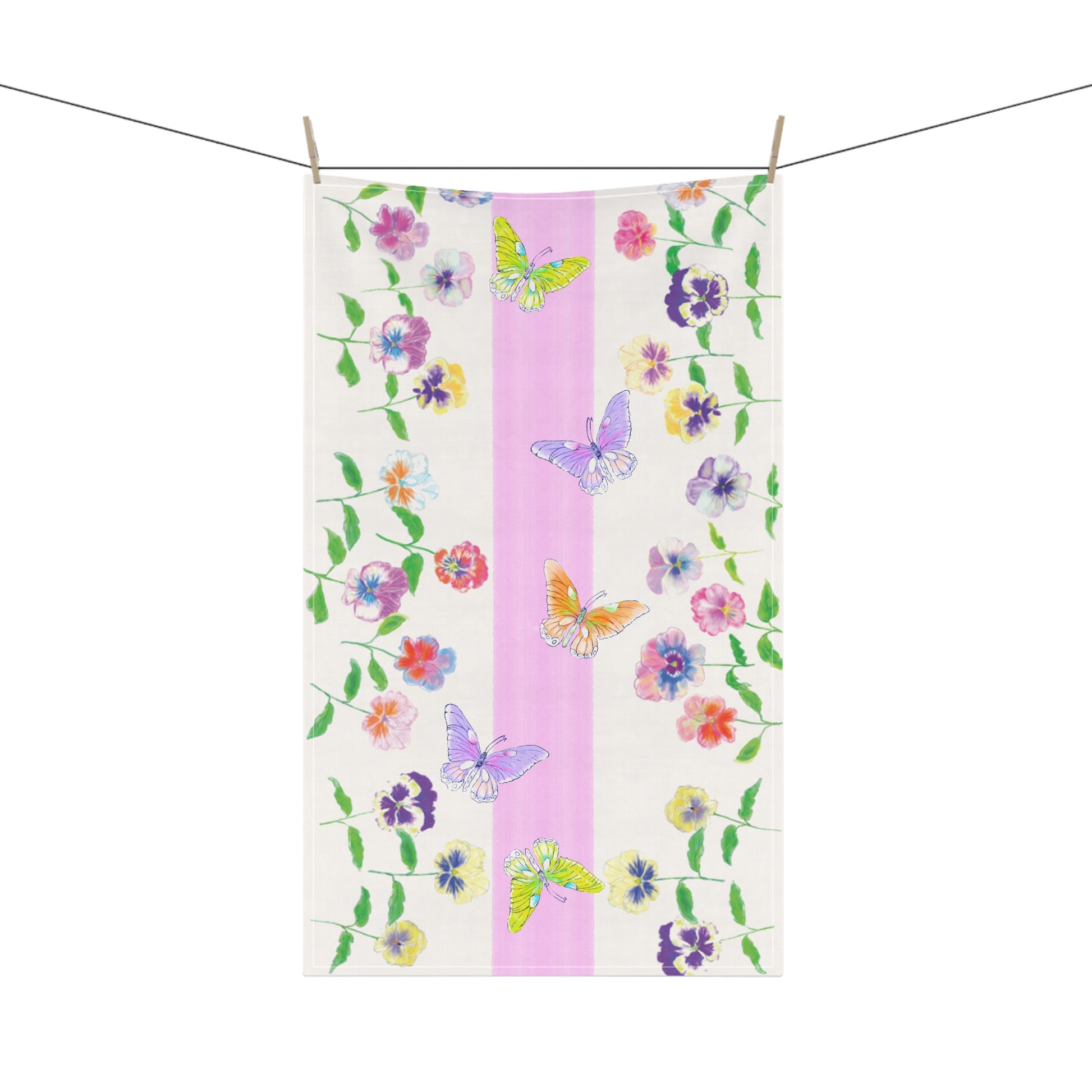 Periwinkles Design – “Pansies in Bloom” Kitchen Towel: Light, Lovely, and Full of Cheer 🌸🫖