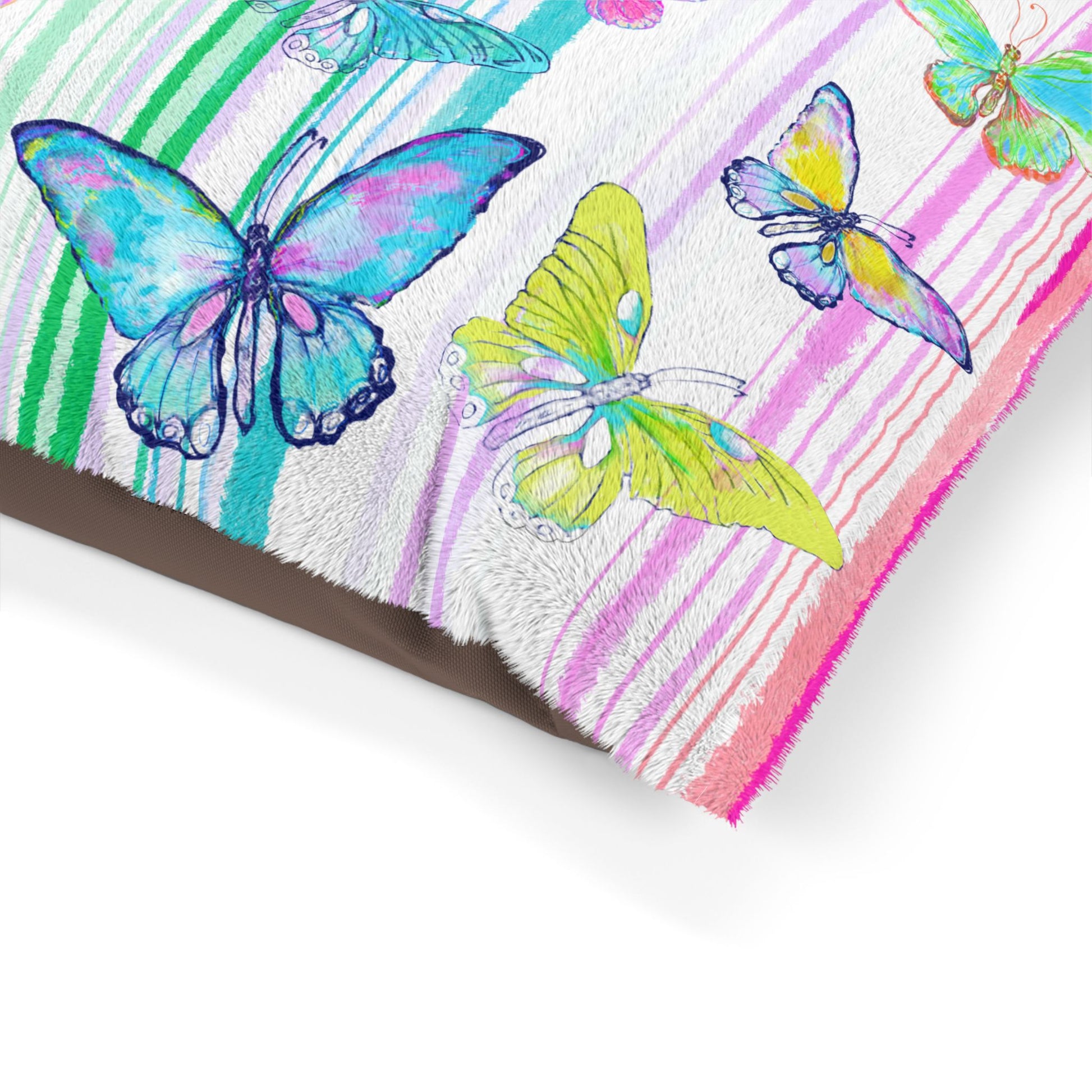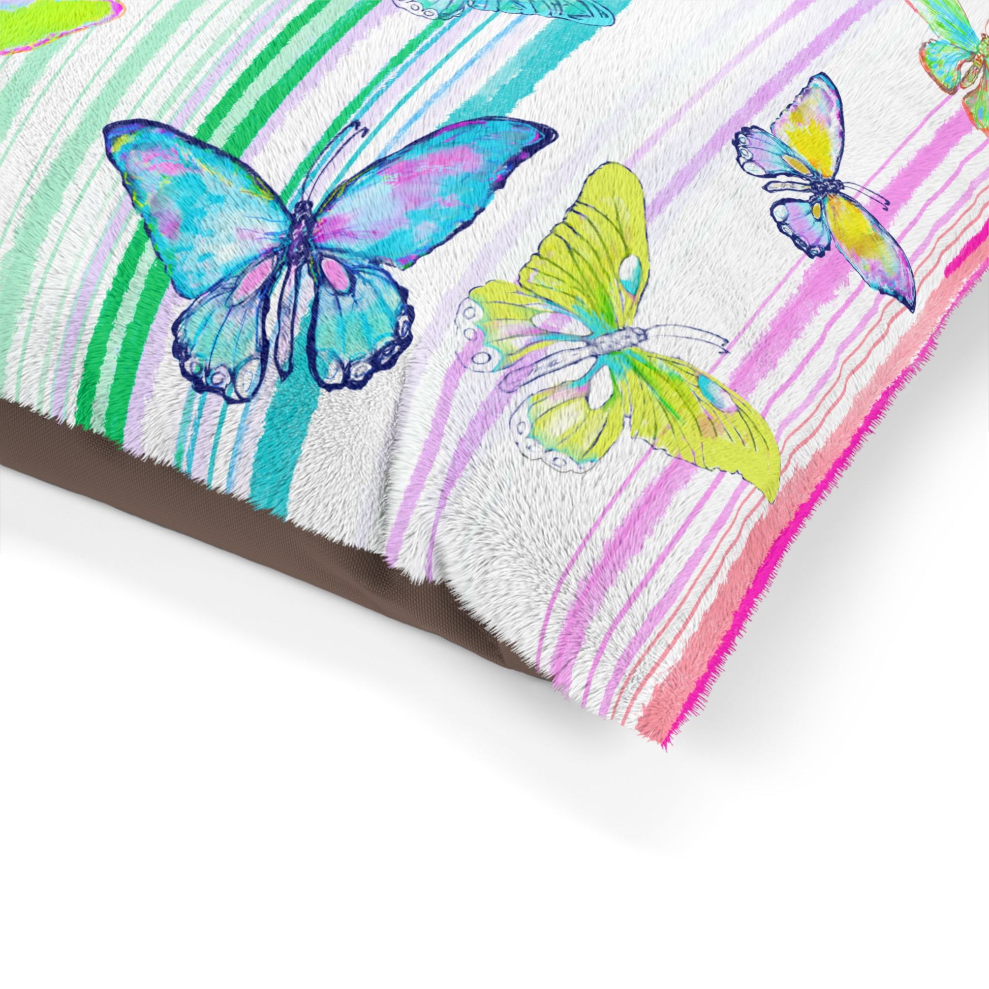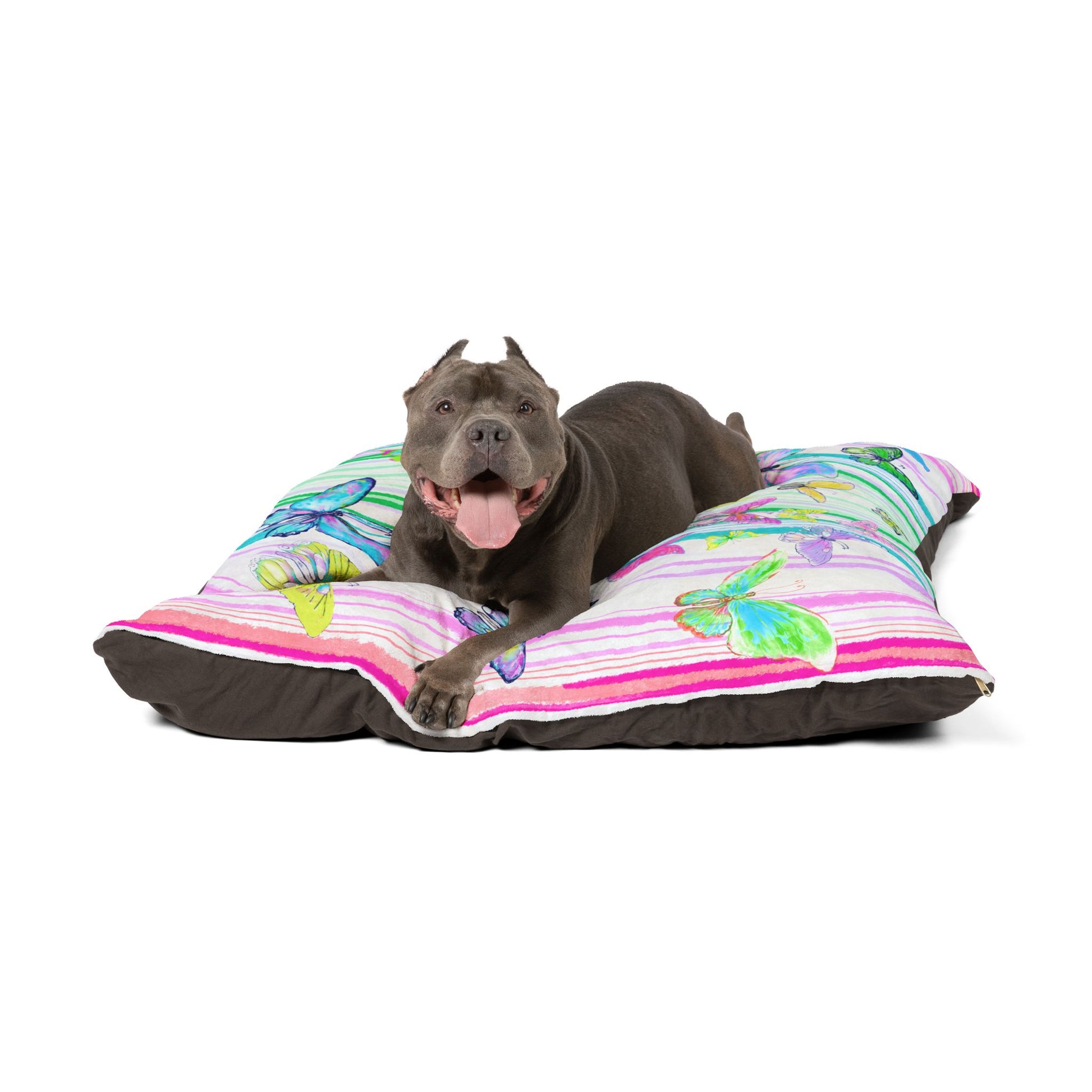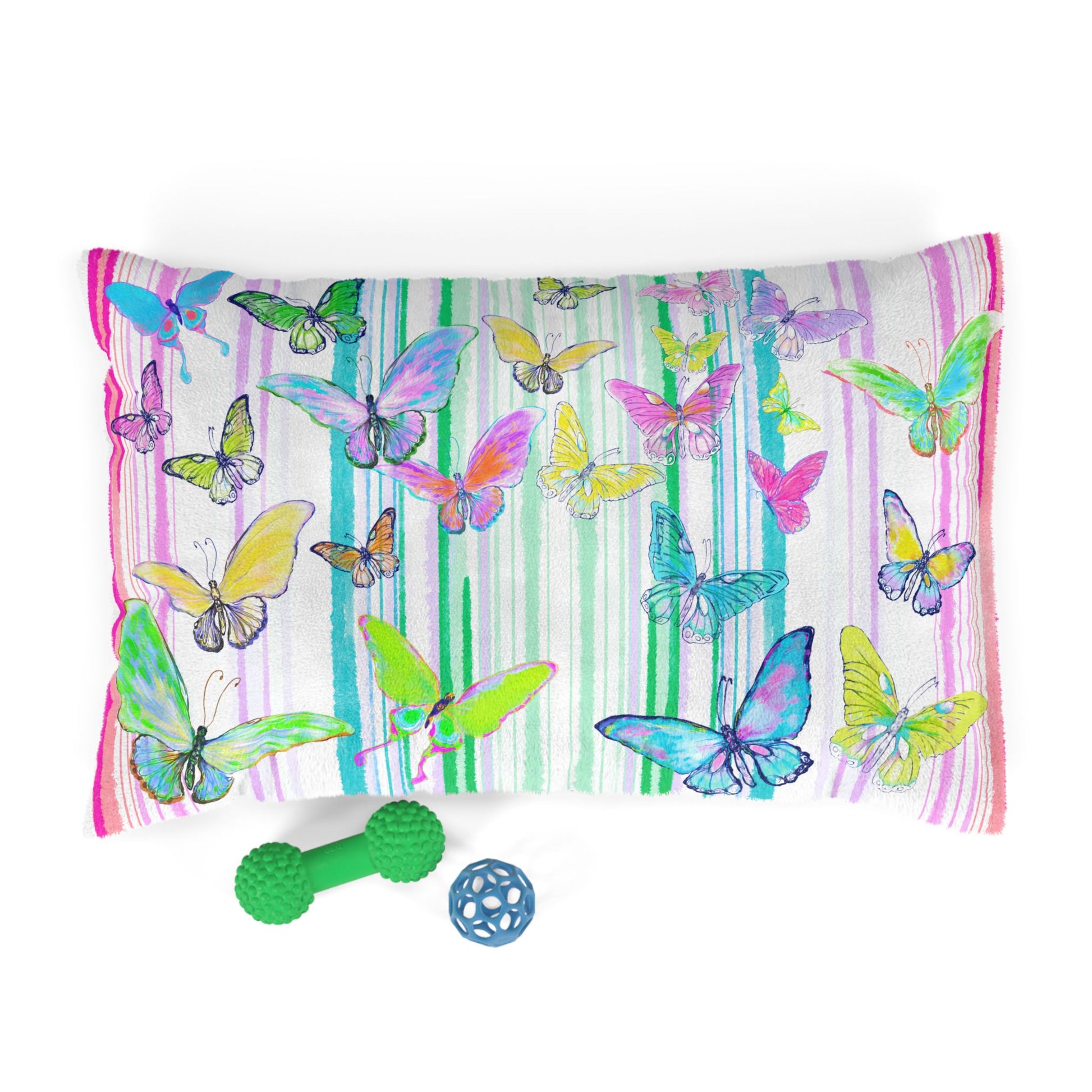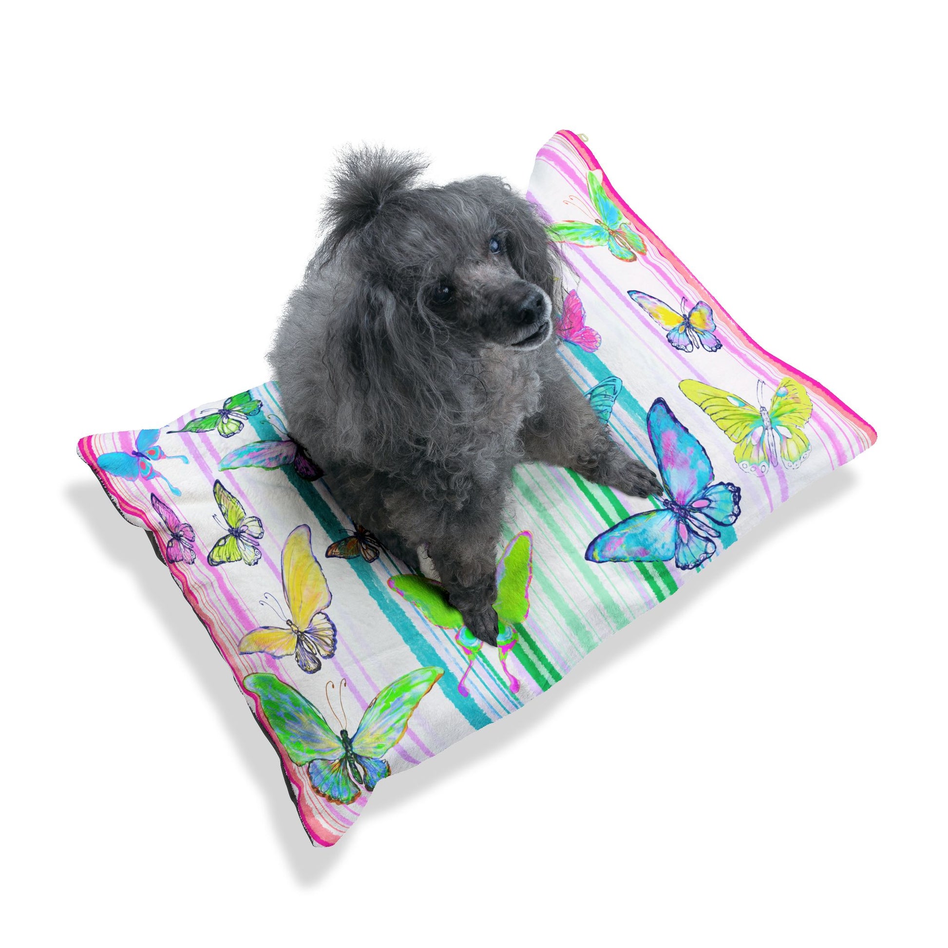 Give your pup (or kitty!) the perfect spot to curl up with the Cozy Haven Pet Bed. Designed with artwork by Joel Borst, this bed features hand-drawn watercolor butterflies and playful watercolor stripes that bring color, light, and charm to your home. Not only does it keep your furry friend comfy, it adds an artistic touch to your décor while keeping your furniture fur-free.