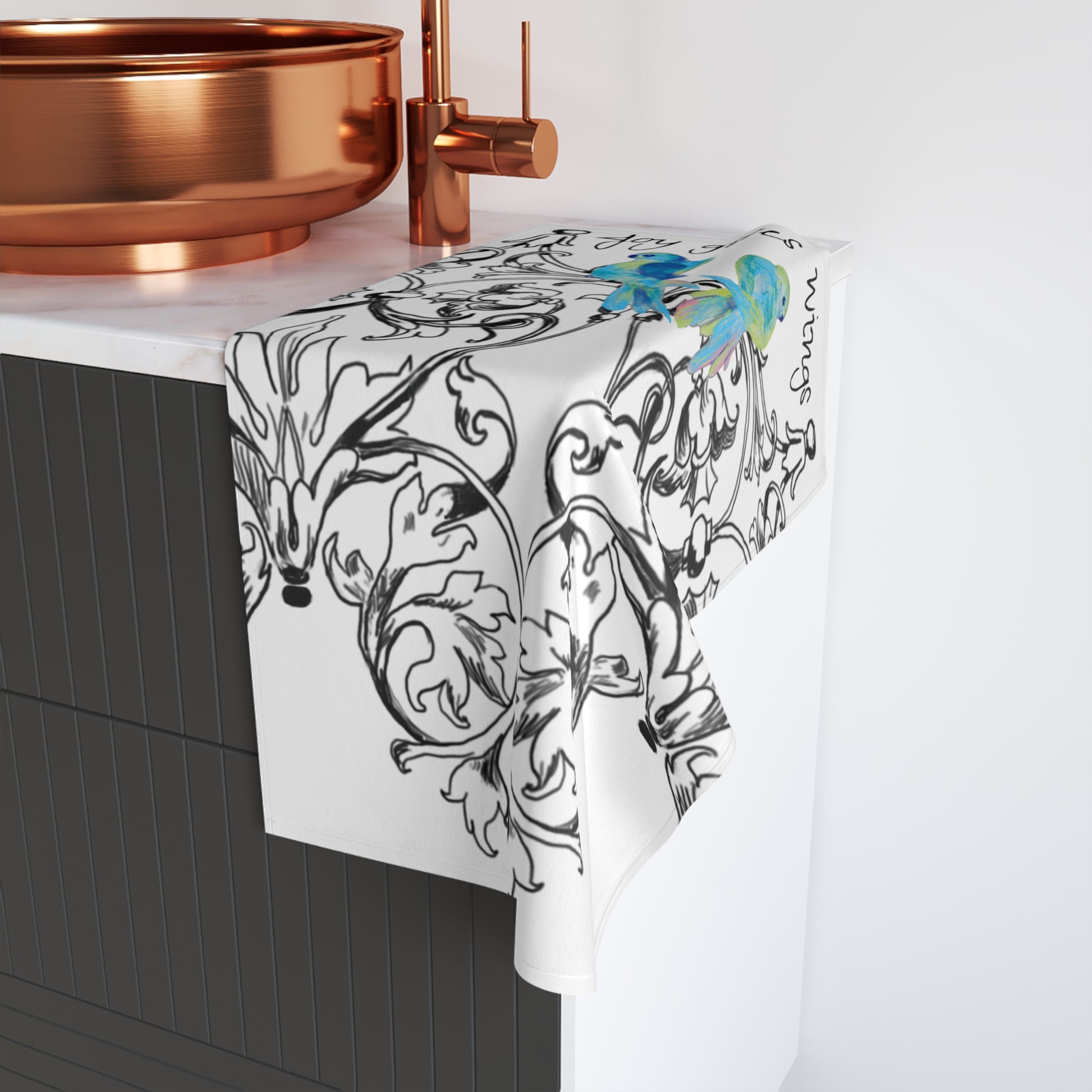 Wrought Iron Whimsy Hand Towel – Birds in Bloom 🖤🐦