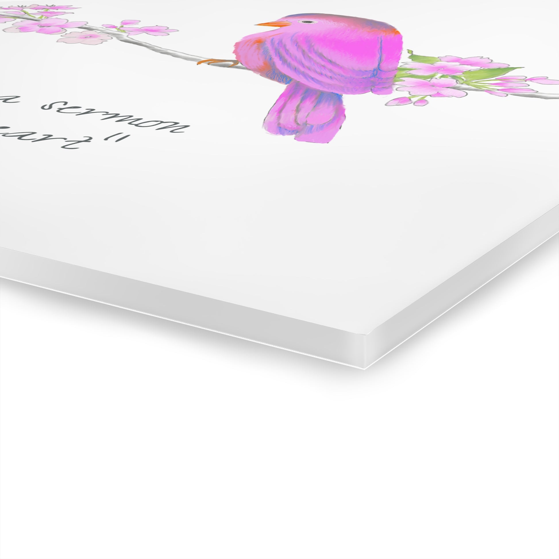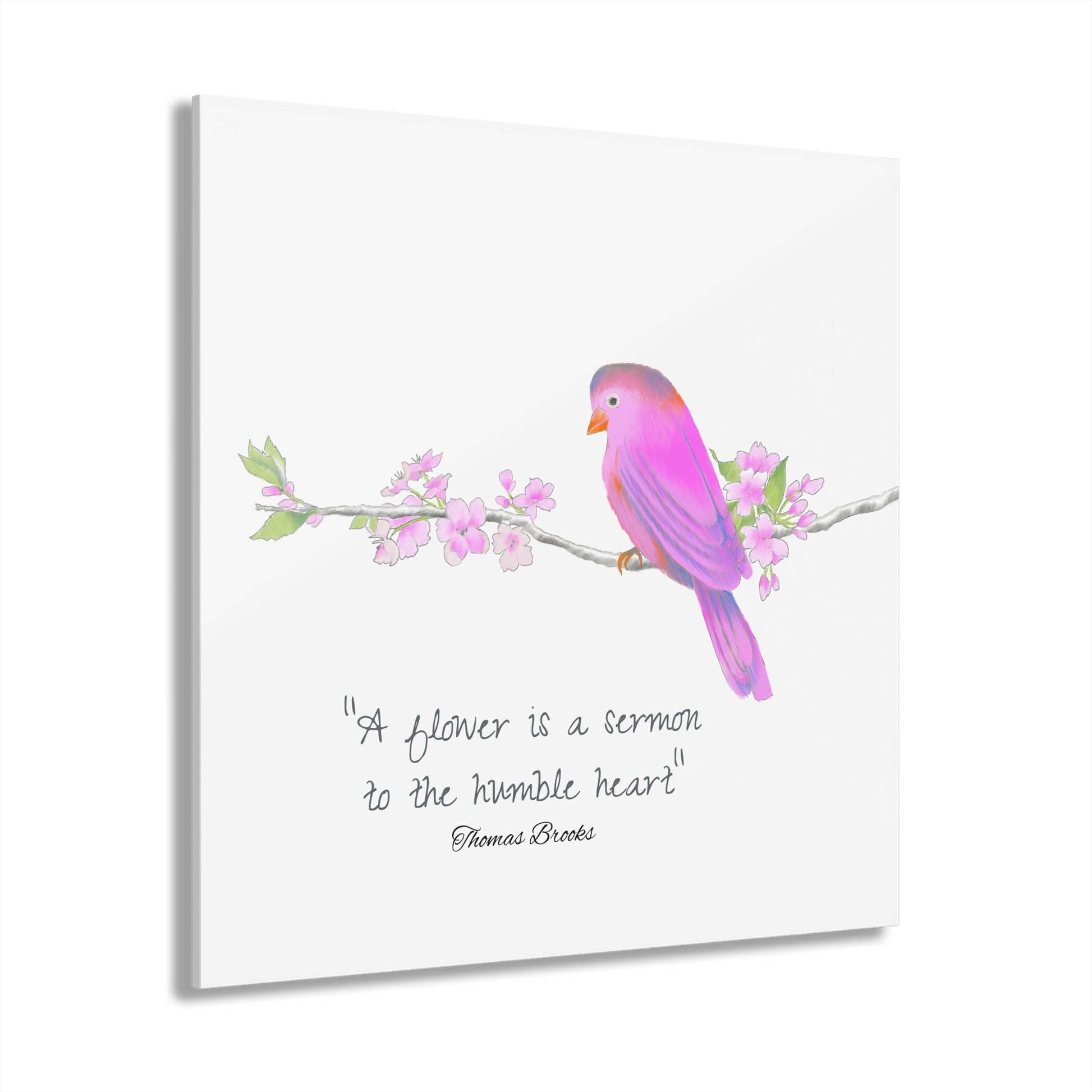 Wall Art Jolly Birds Acrylic Prints (French Cleat Hanging) Pink "A flower is a sermon..."