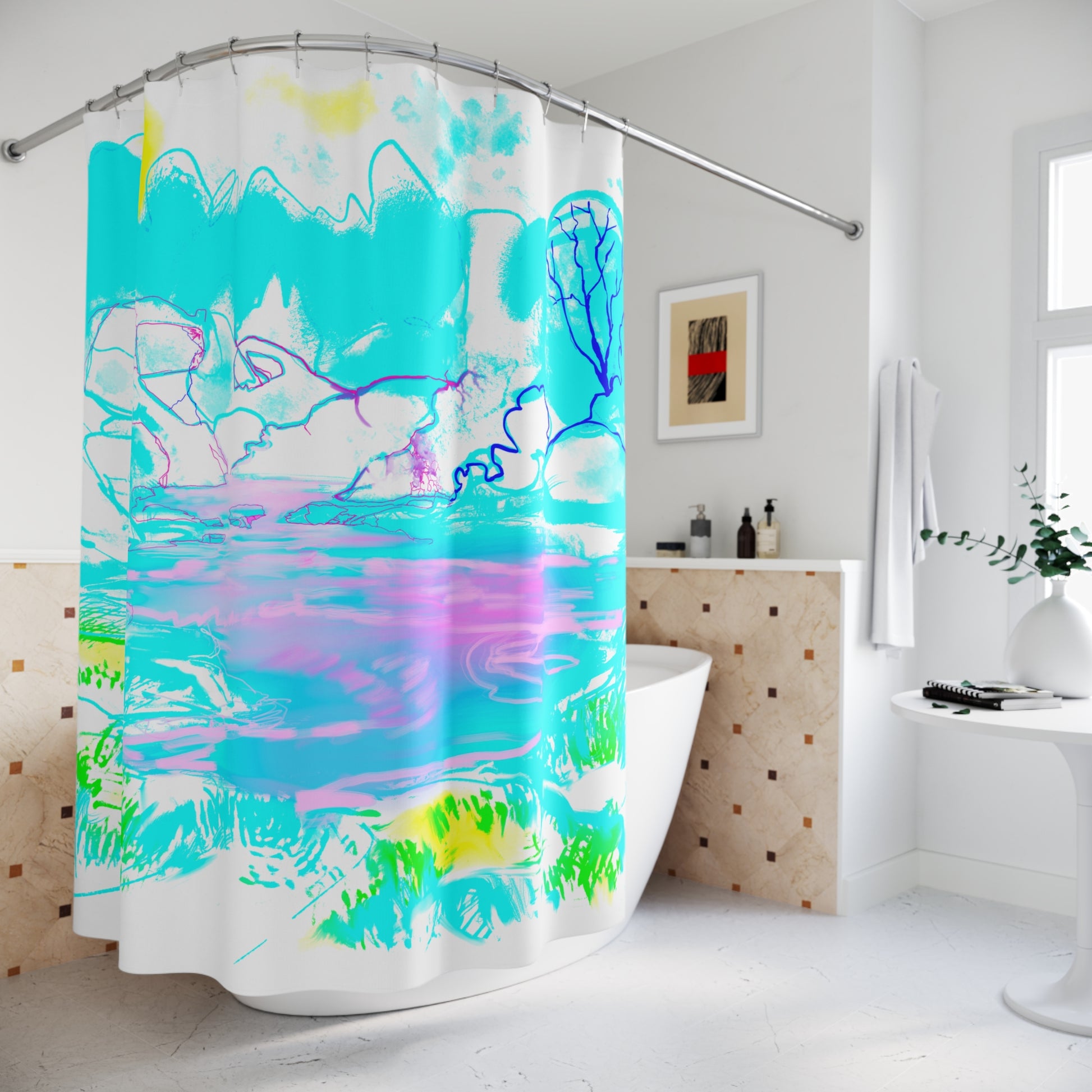Periwinkles Design – “Step Into the Landscape” Shower Curtain: Art That Brings the Outdoors In 🌿🚿
