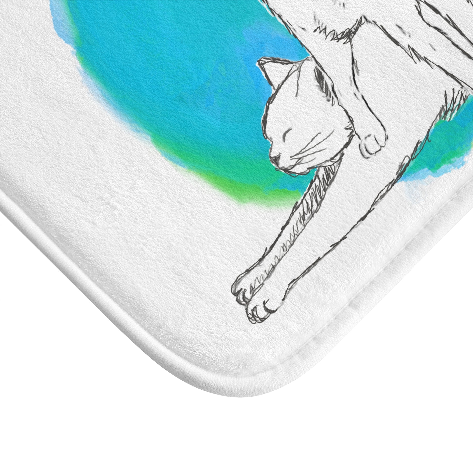 Start your day with a little whimsy! This cozy bath mat features an adorable kitty stretching across a big aqua polka dot, bringing charm, playfulness, and color to your bathroom. Soft memory foam cushions your feet, while the anti-slip backing keeps the mat safely in placeβmaking it as practical as it is delightful. Perfect for adding a touch of fun and personality to your daily routine.