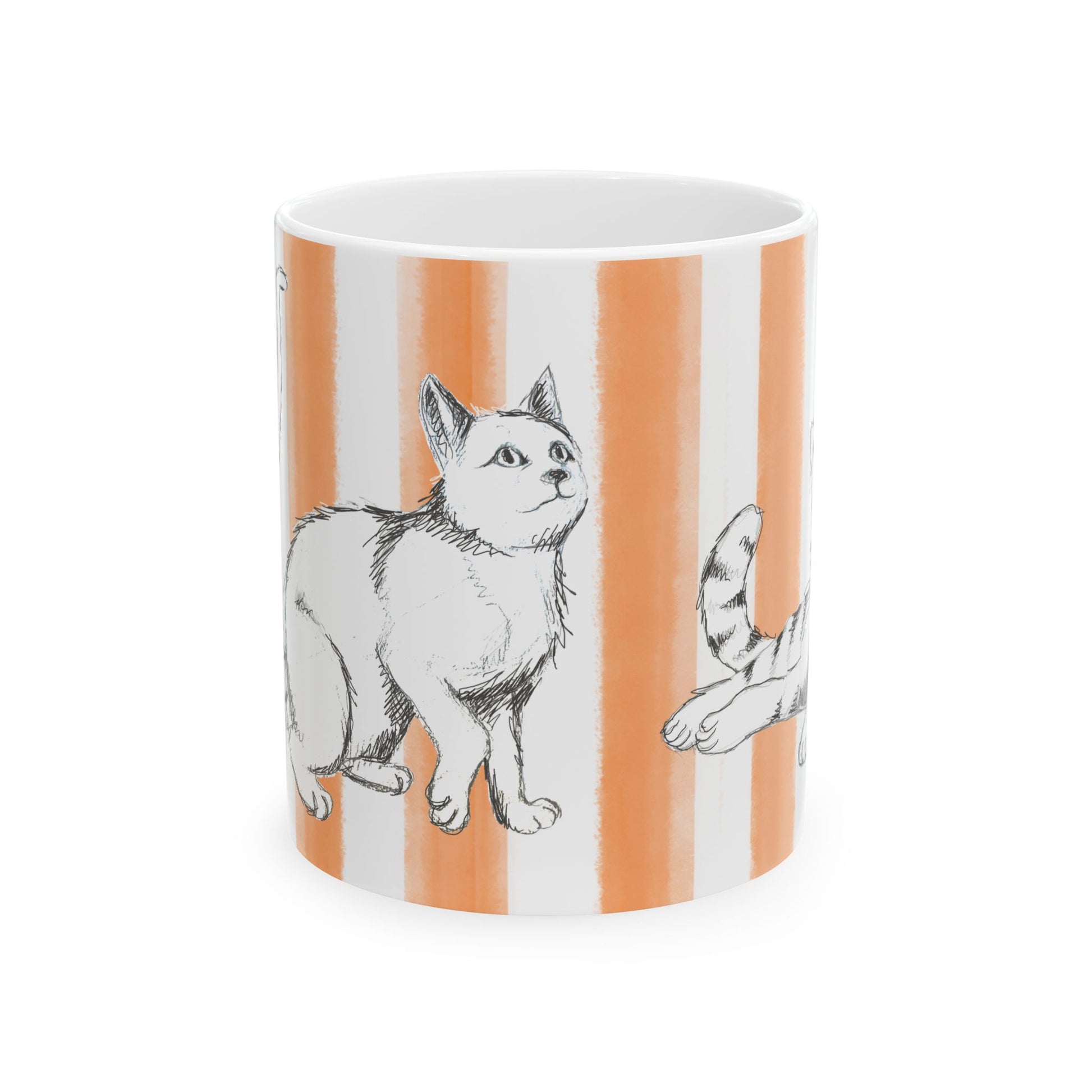 Available in 11oz and 15oz sizes, these mugs are as functional as they are artful—perfect for your morning coffee, afternoon tea, or cozy hot cocoa shared with your favorite feline friend curled nearby.