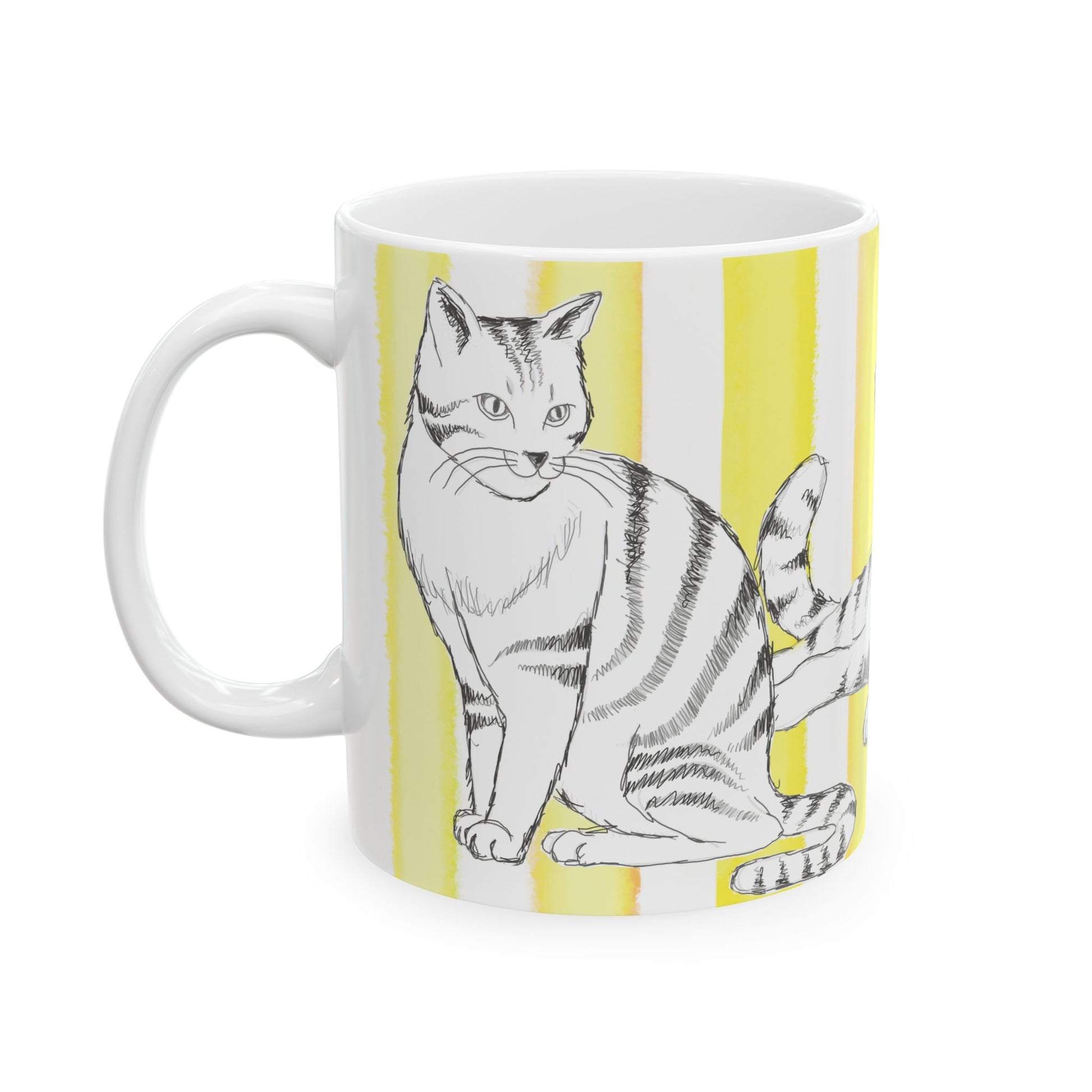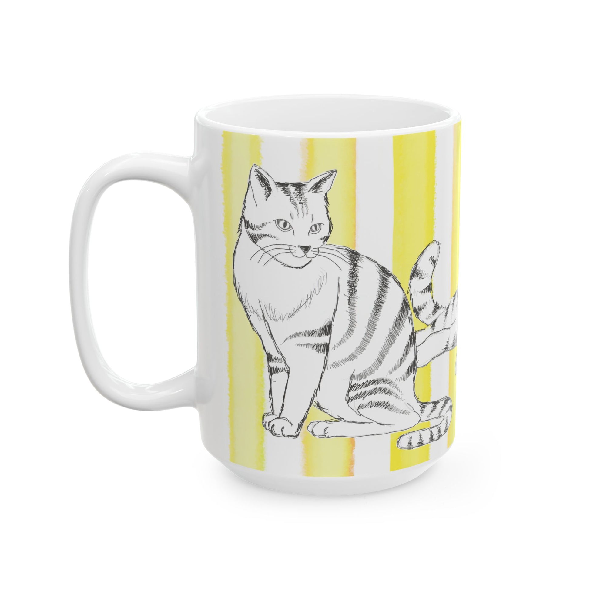 Available in 11oz and 15oz sizes, these mugs are as functional as they are artful—perfect for your morning coffee, afternoon tea, or cozy hot cocoa shared with your favorite feline friend curled nearby.