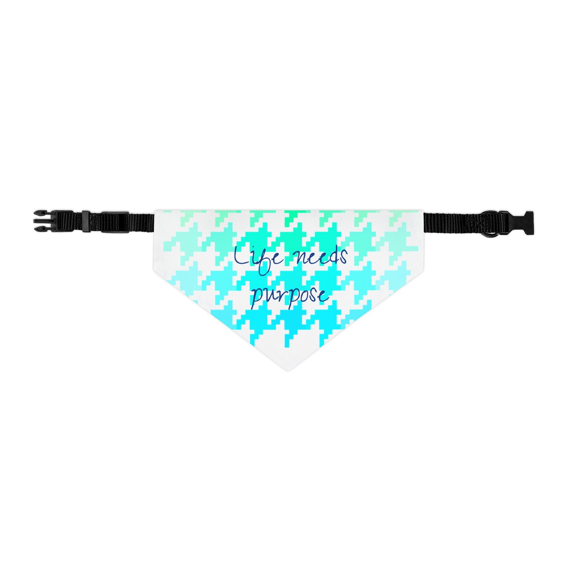 Let your pet strut in style with this fun and artsy pet bandana collar from Periwinkles Design! Designed by local artists who love color, this vibrant and stylish accessory brings personality, comfort, and charm to your furry companion’s wardrobe. Whether they’re out for a walk, playing at the park, or just lounging in style, this adjustable and secure bandana collar ensures they look adorable and fashion-forward and a reminder to all who stoop to pet the adorable pup- yes! Life Needs Purpose!!!