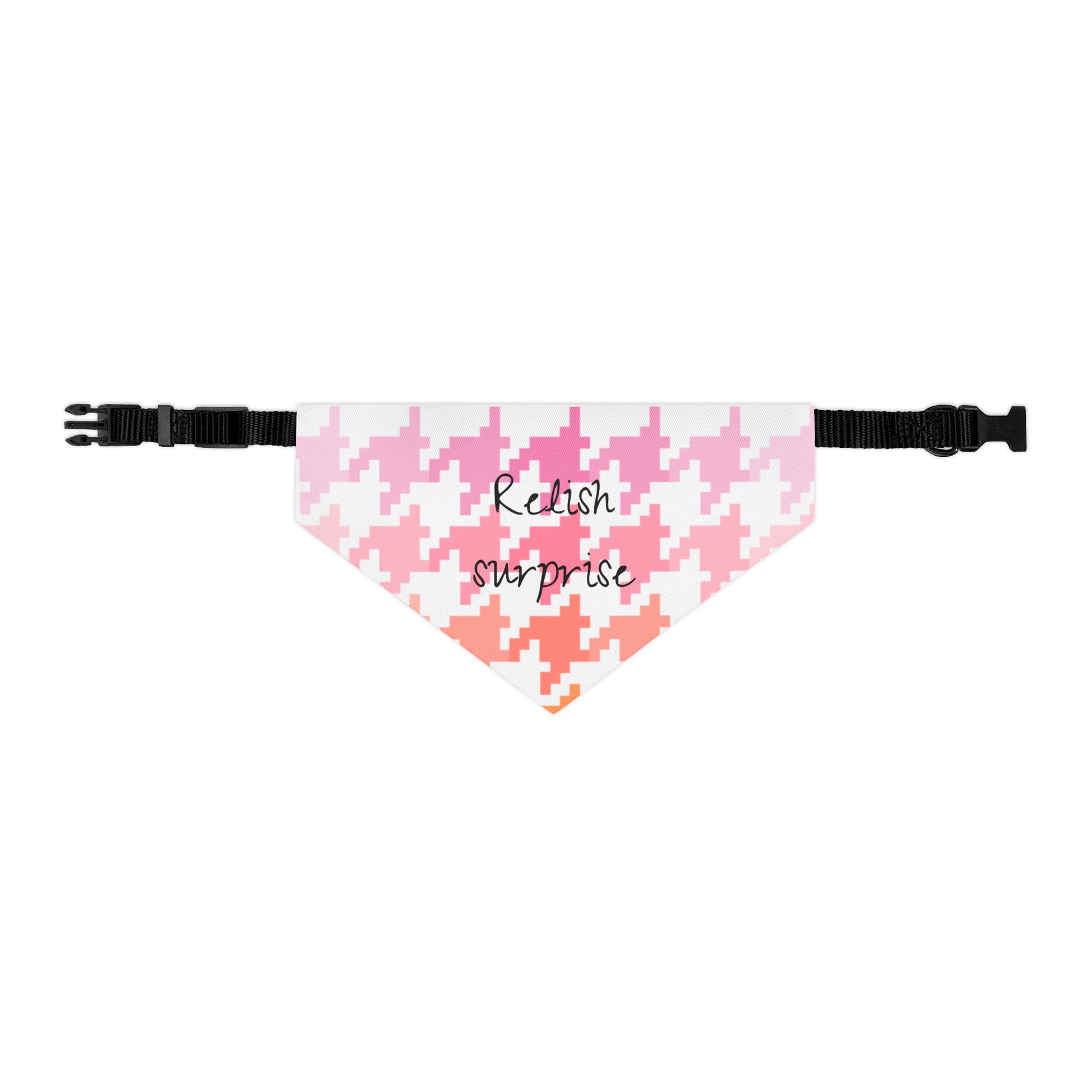 Let your pet strut in style with this fun and artsy pet bandana collar That reminds us to Relish Surprise and not become boring from Periwinkles Design! Designed by local artists who love color, this vibrant and stylish accessory brings personality, comfort, and charm to your furry companion’s wardrobe. Whether they’re out for a walk, playing at the park, or just lounging in style, this adjustable and secure bandana collar ensures they look adorable and fashion-forward!