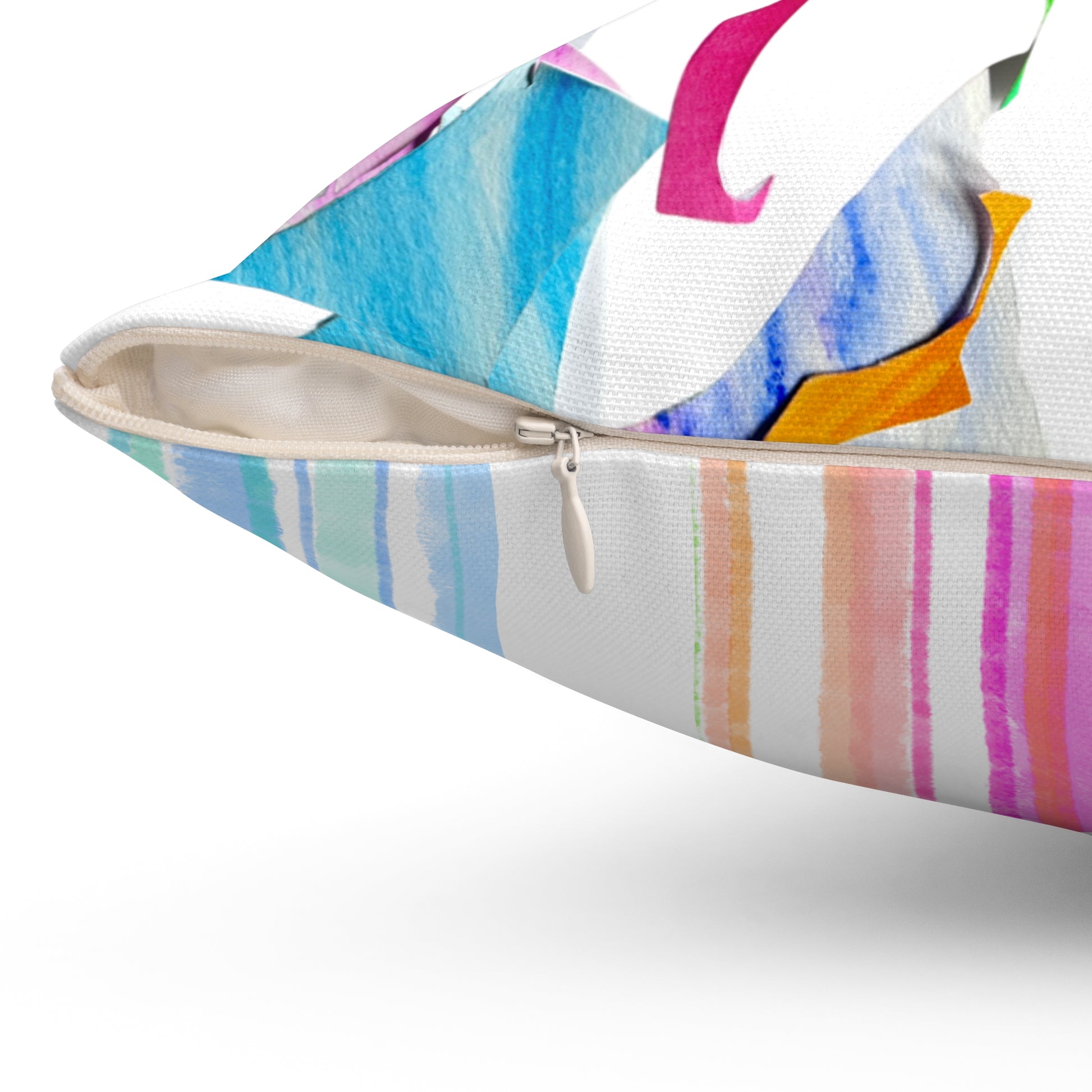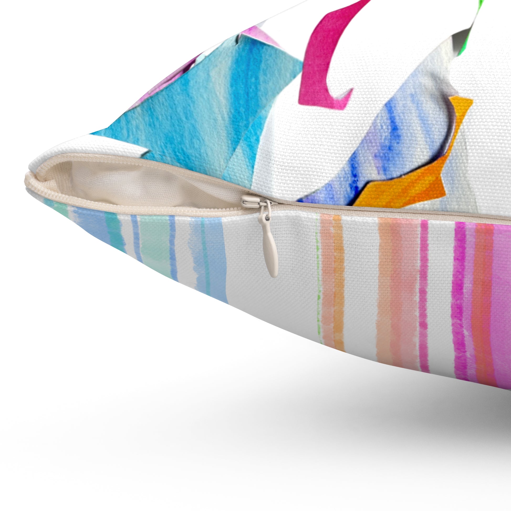 Room accents shouldn’t be underrated—especially when they carry a little magic. These playful indoor pillows, in various sizes, are more than just decor—they’re story pieces. Imagine stepping into Lois Moore's art studio, where bits of watercolor paper flutter to the floor like confetti. Those scraps—splashes of blue, swishes of pink, dashes of gold—decided they weren’t done creating. So, they danced together, tumbled into delightful shapes, and leapt onto these pillows to live new lives.