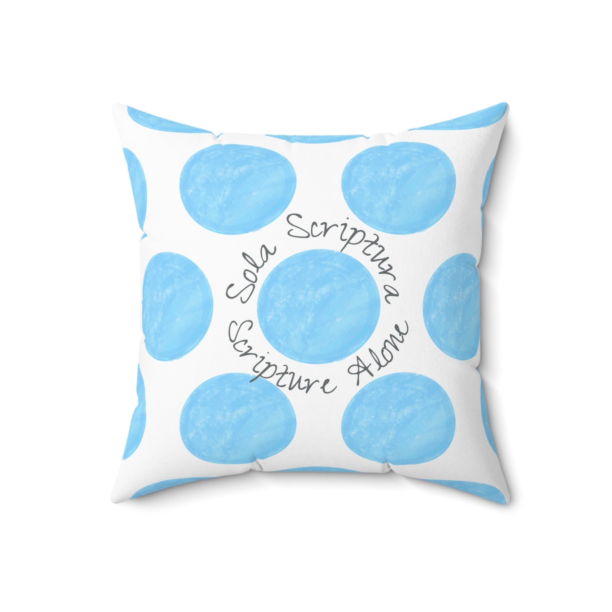Polka Dot Palette Polyester Square Pillow light blue "Sola Scriptura..."