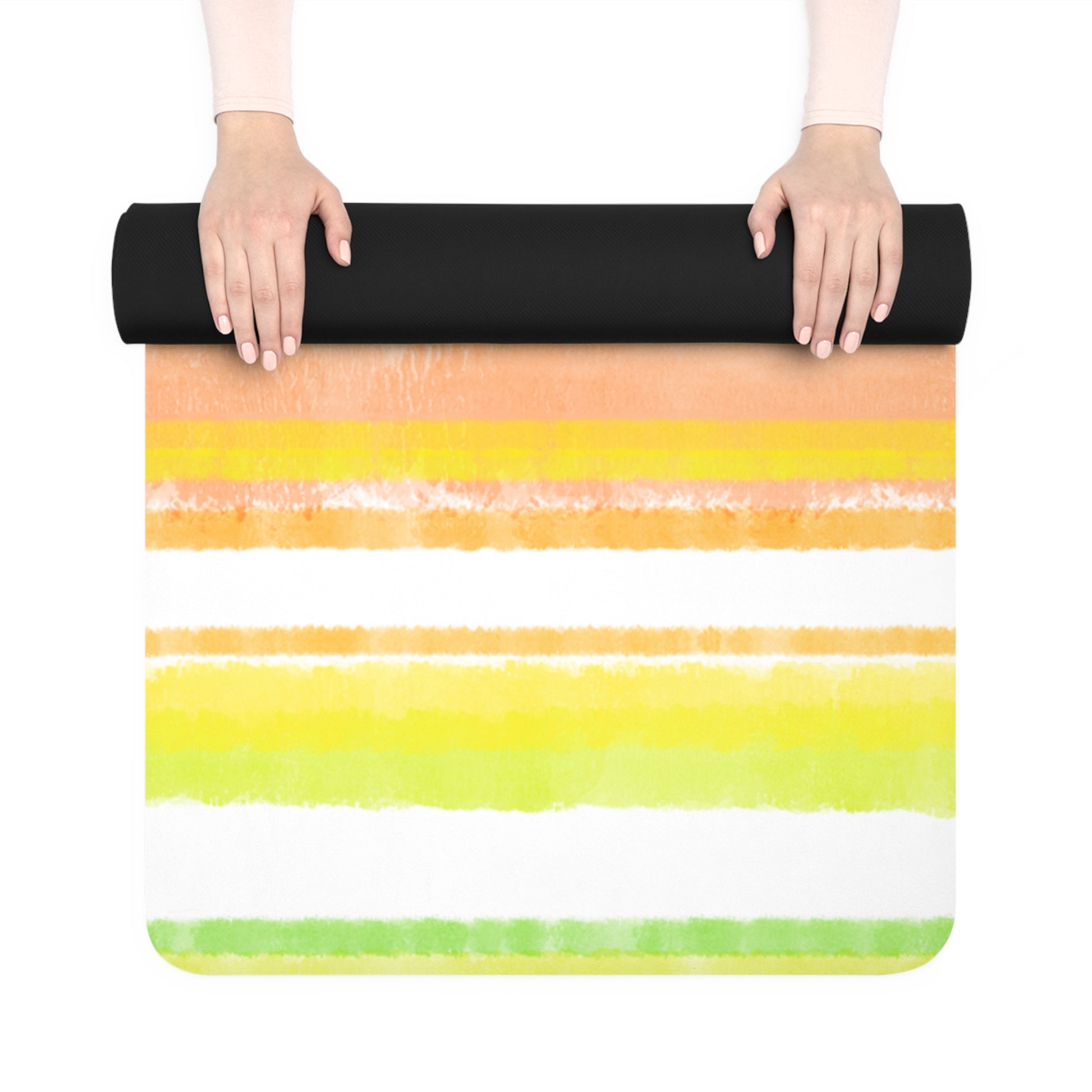 You'll feel great doing your stretches on the Watercolor Stripes created by Lois Moore. Any outfit you are wearing will look great on this multi-colored energy filled color. With an anti-slip rubber bottom for extra stability, this yoga mat helps you better balance during any pose and absorbs impact, delivering a higher comfort factor for all your exercise.