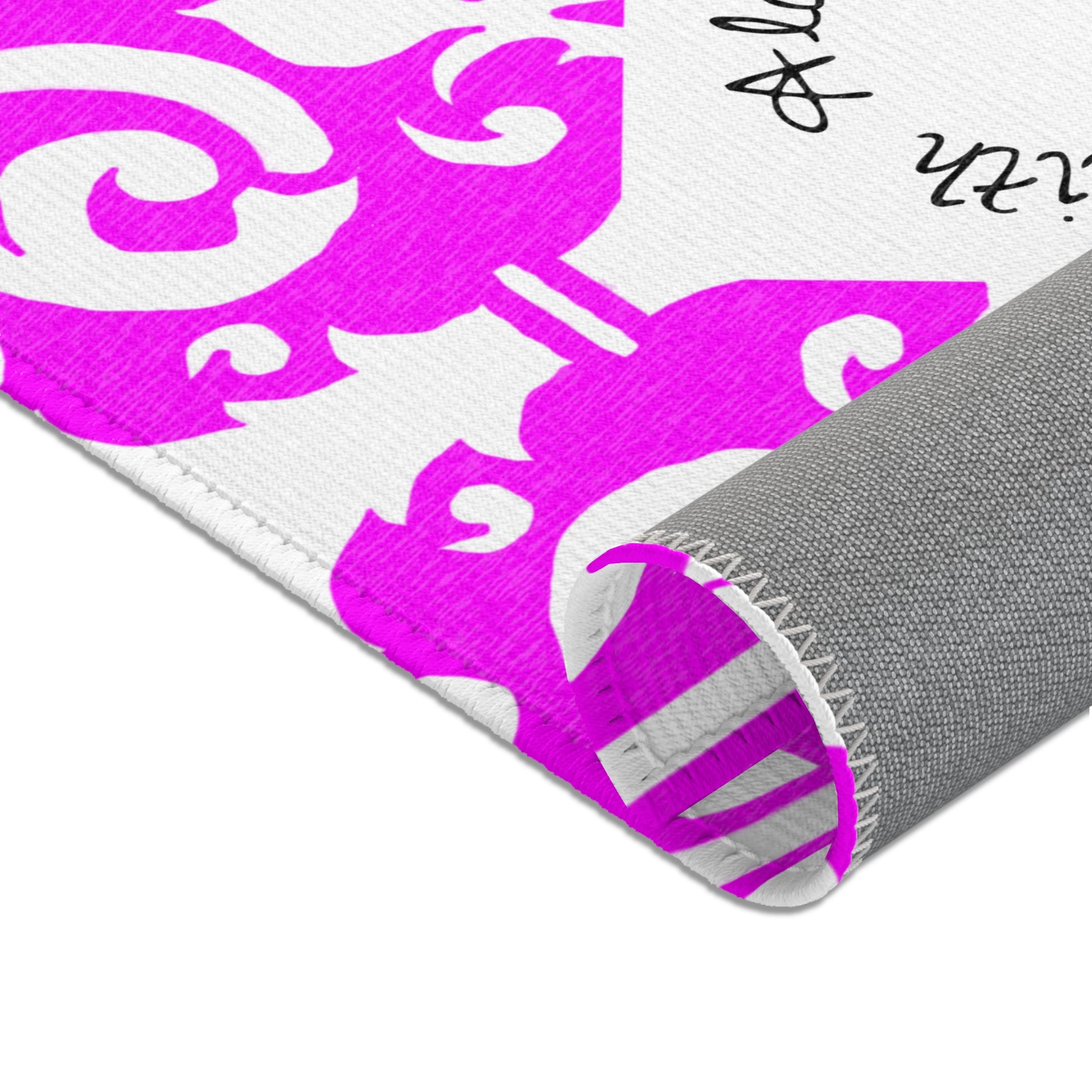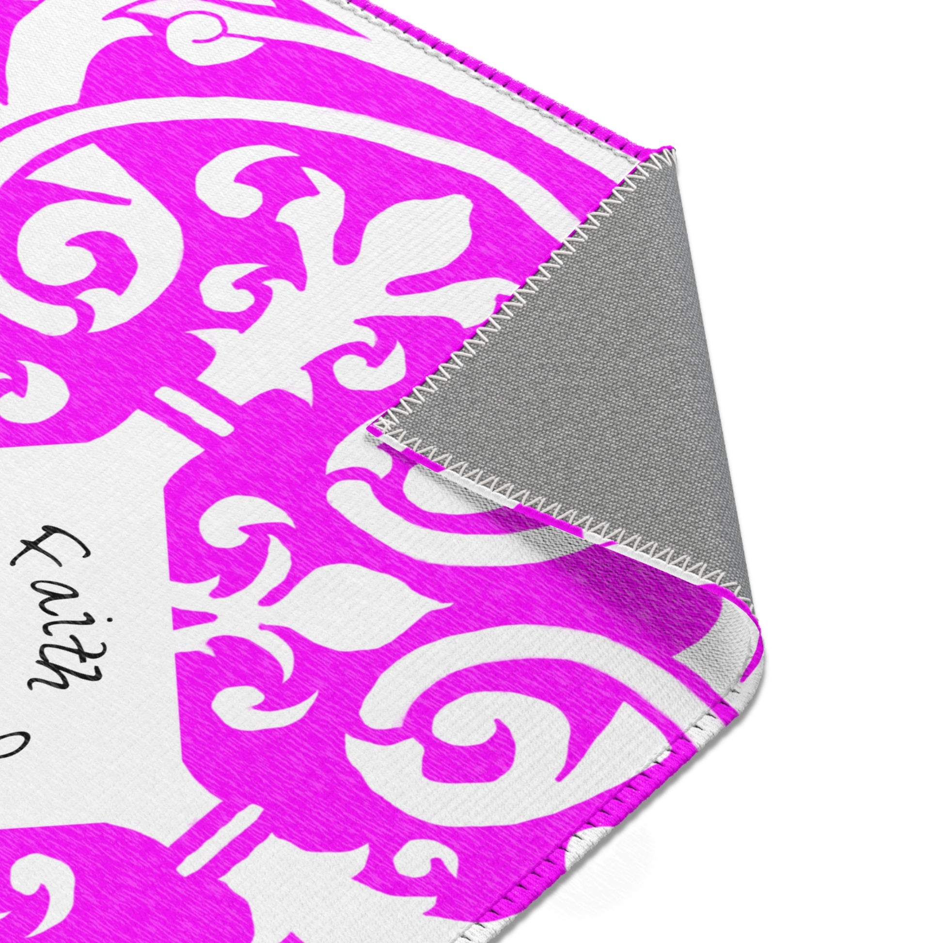 Scrollwork Indoor/Outdoor Rug Raspberry "Sola Fide..."