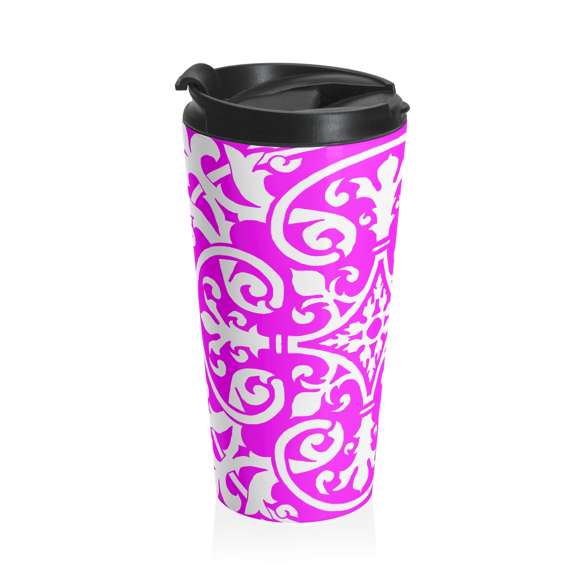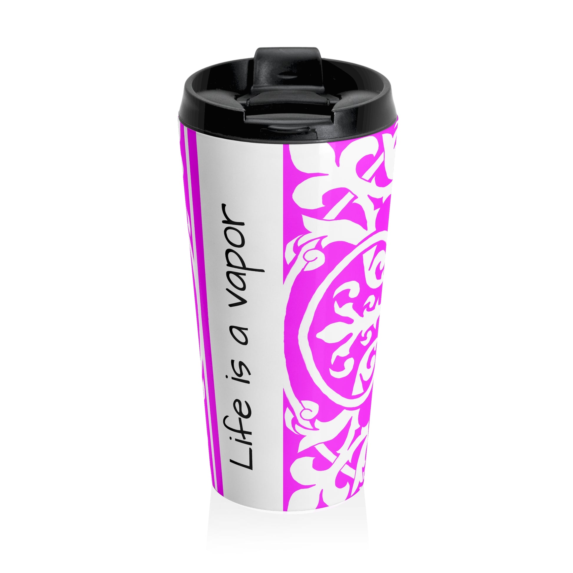 Scrollwork Stainless Steel Travel Mug "Life is a vapor"