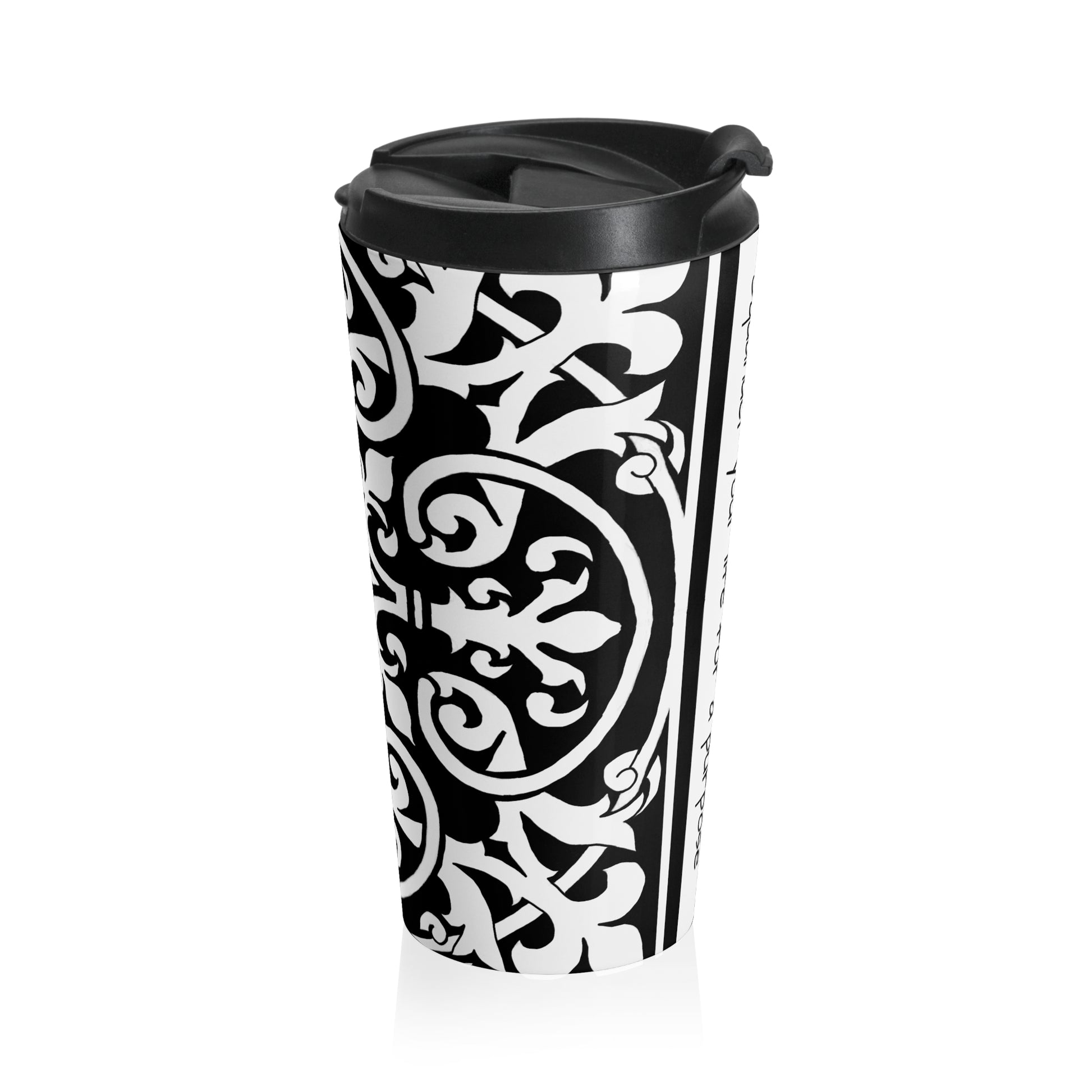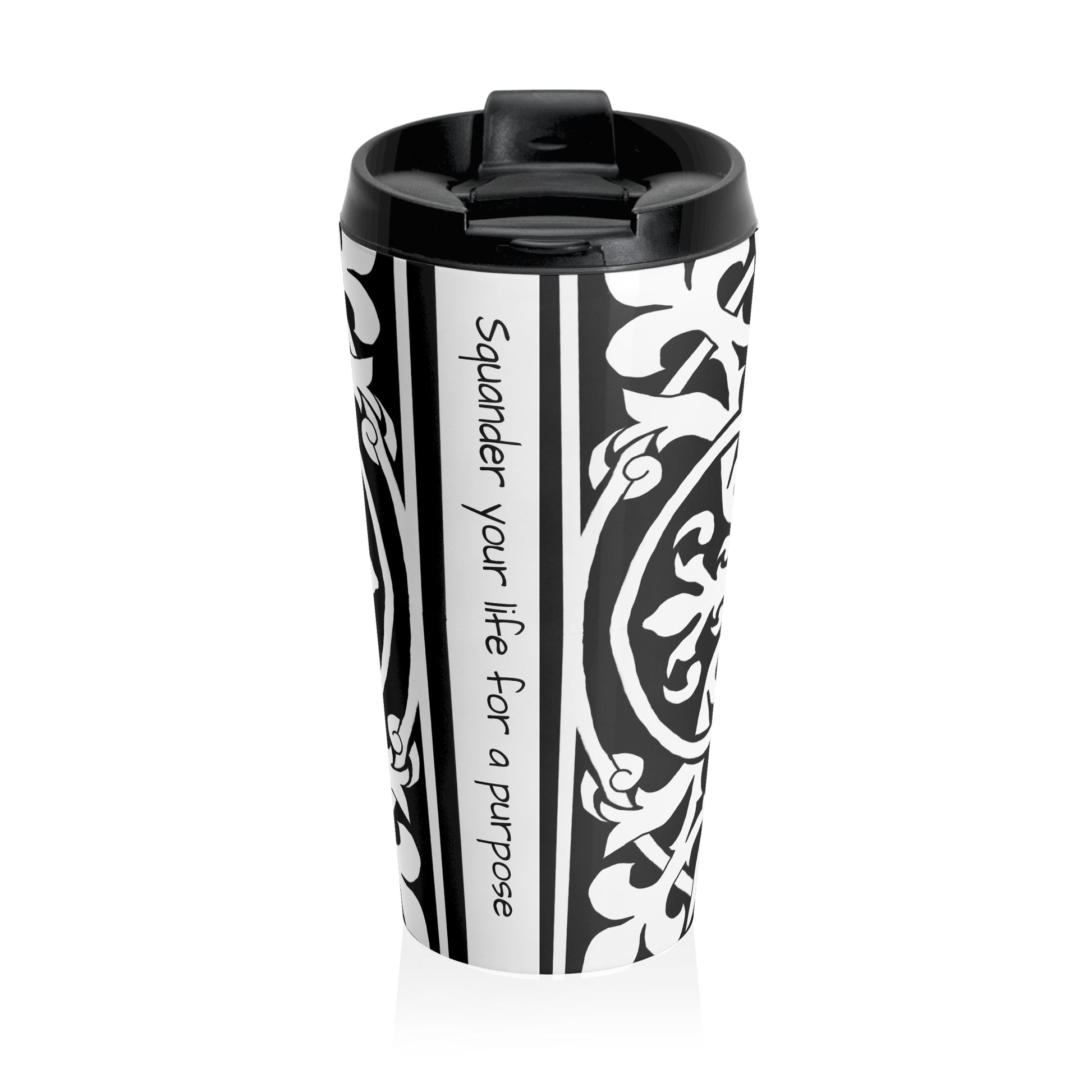 Scrollwork Stainless Steel Travel Mug "Squander your life for a purpose"