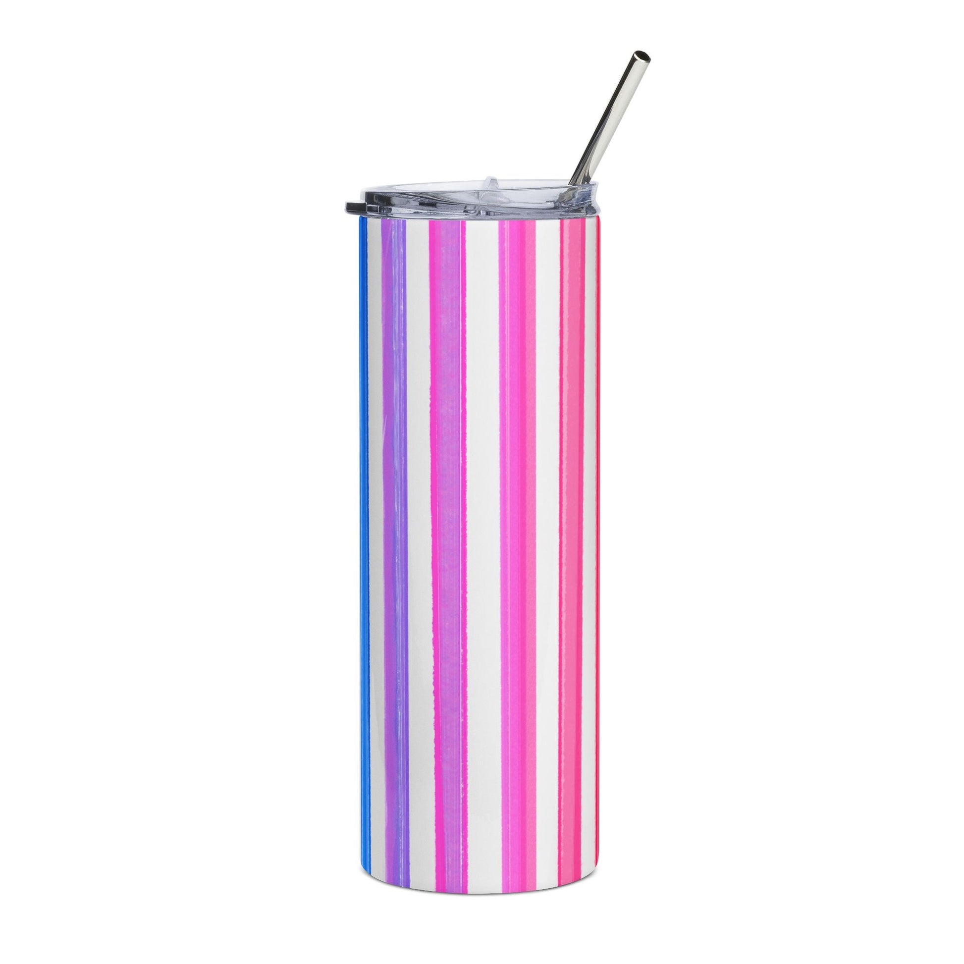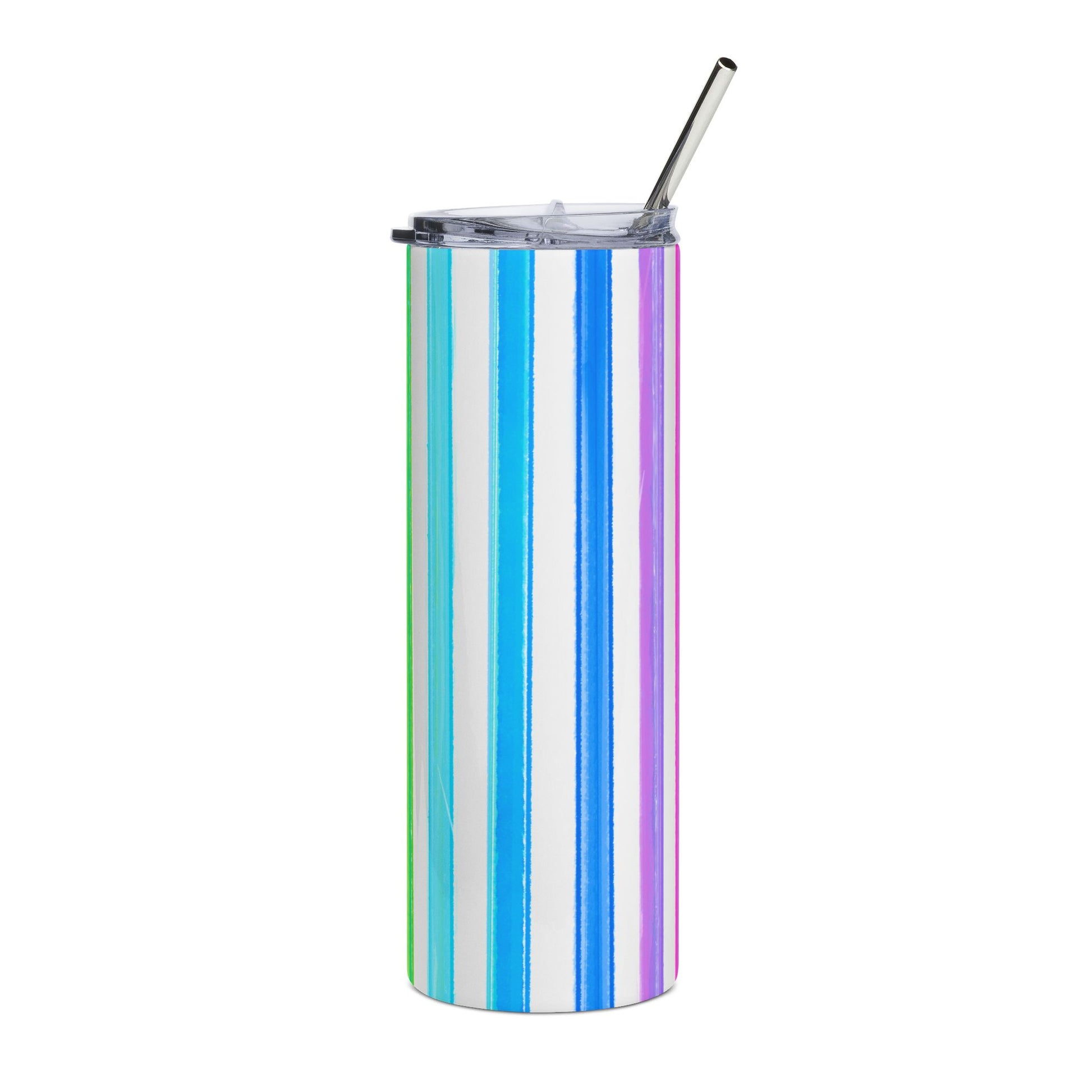 Sip, smile, and swirl in color! This 20 oz tumbler is wrapped in Lois Moore’s hand-painted watercolor stripes, a cheerful rainbow parade that dances around your drink. Every sip becomes a little celebration—because everyone loves a stripe, and everyone loves a rainbow!
