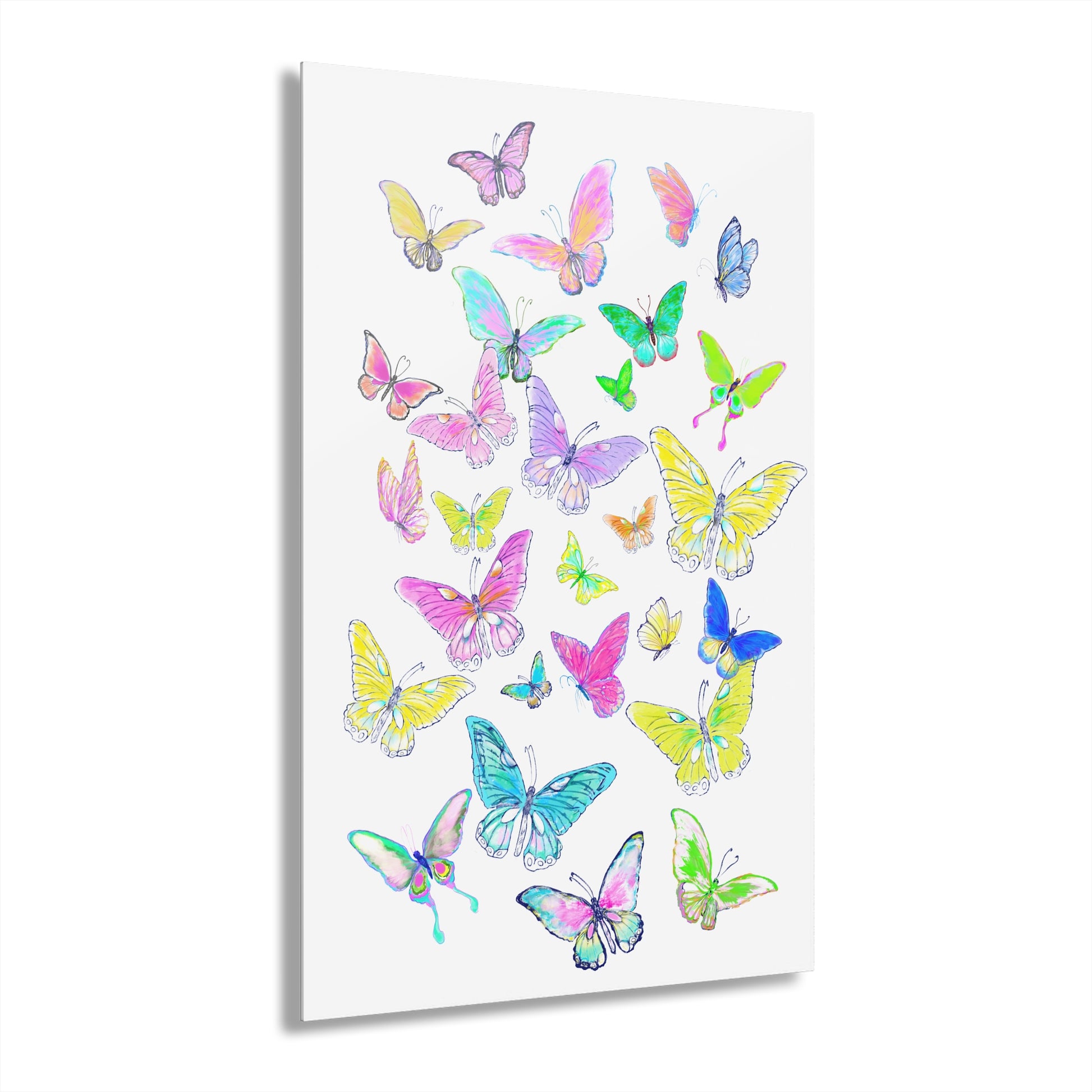 Bring the wonder of nature indoors with this luminous butterfly acrylic print from Periwinkles Design. Hand-painted by a local artist, the vibrant colors and delicate details capture a moment of pure joy—a playful dance of butterflies, fluttering like a breeze of color and life across your wall.