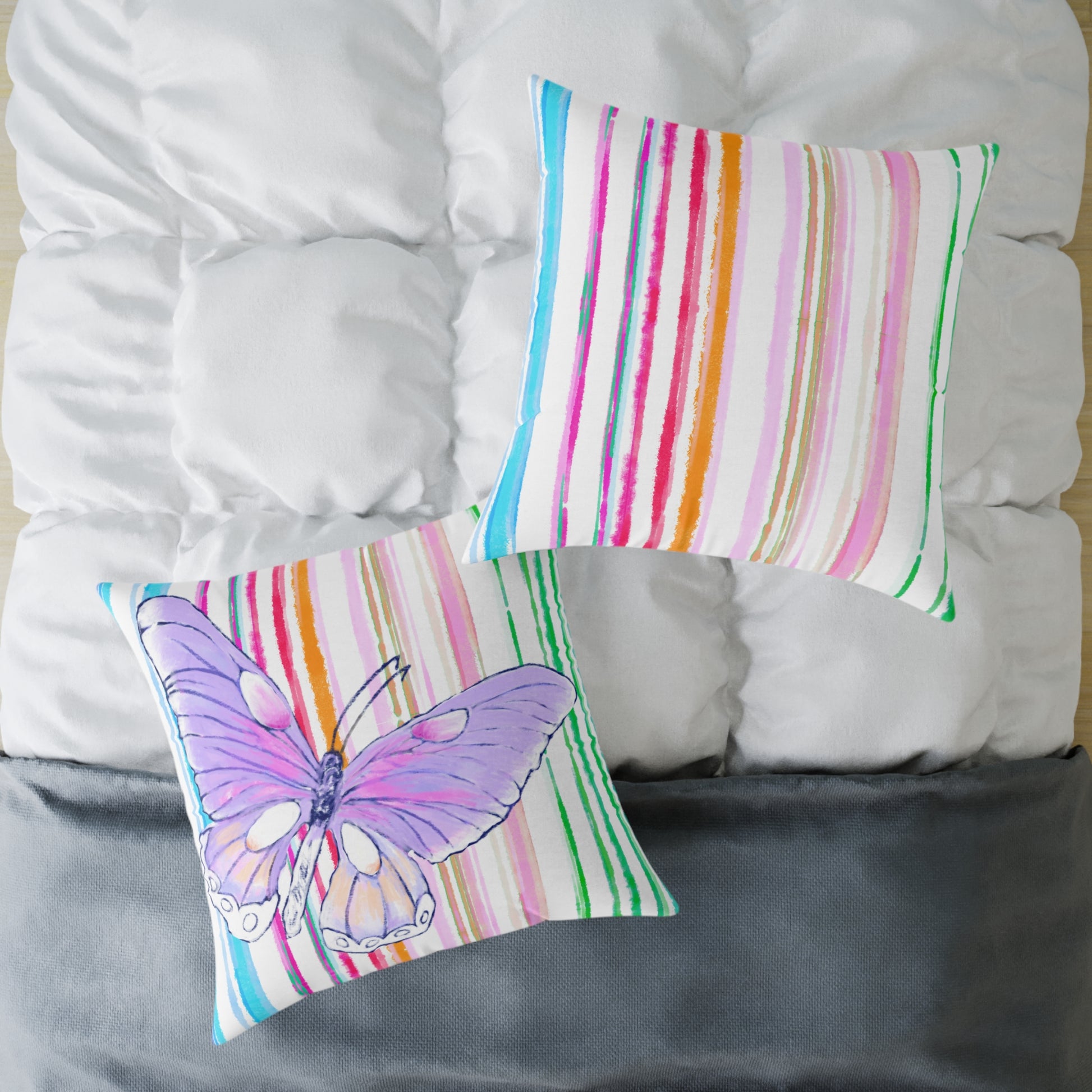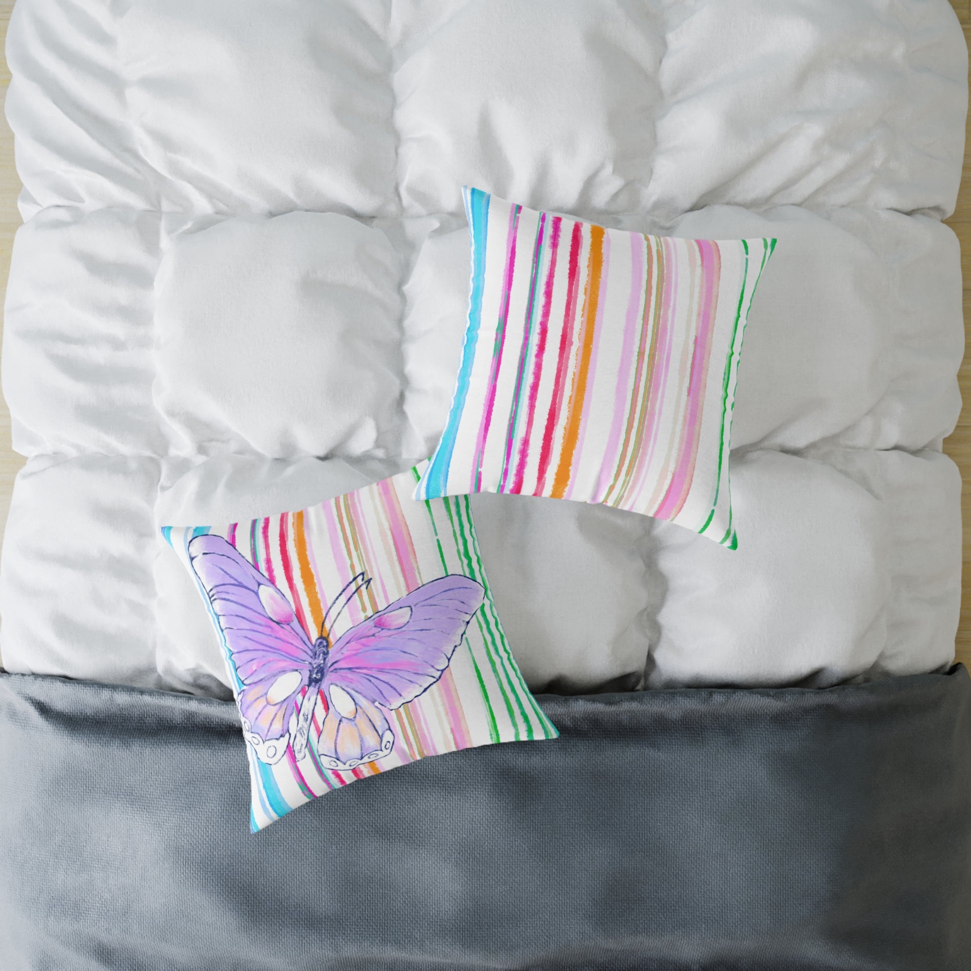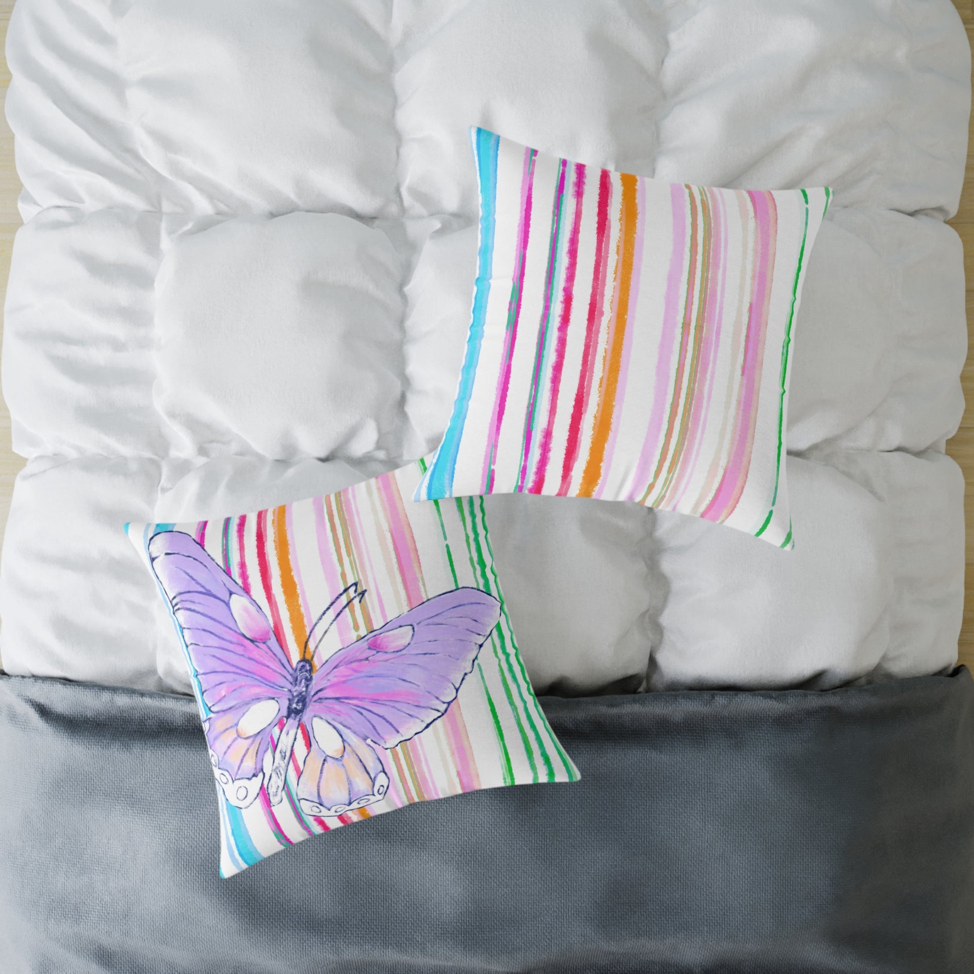 🦋 Periwinkles Design – “Butterfly & Stripes” Double-Sided Pillow