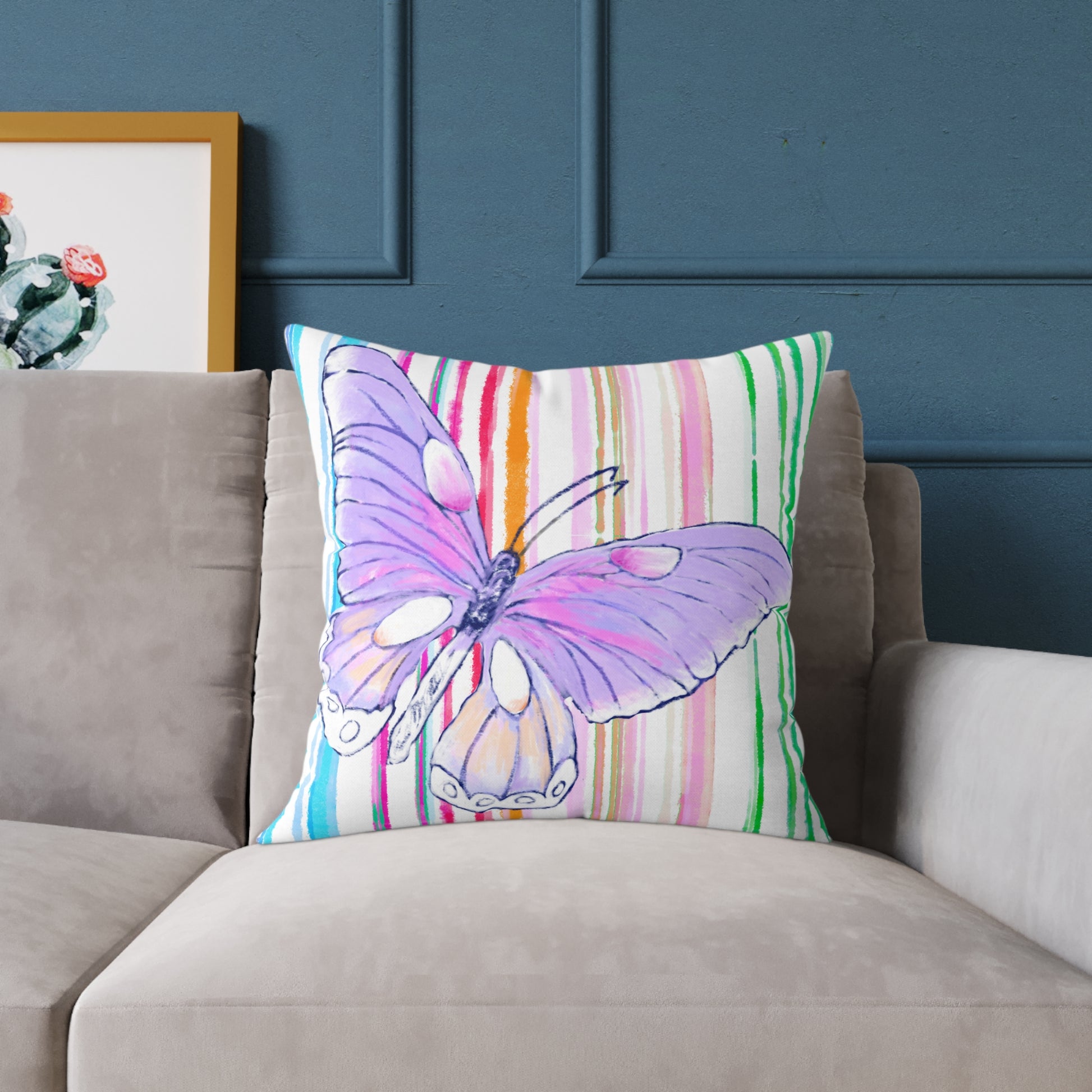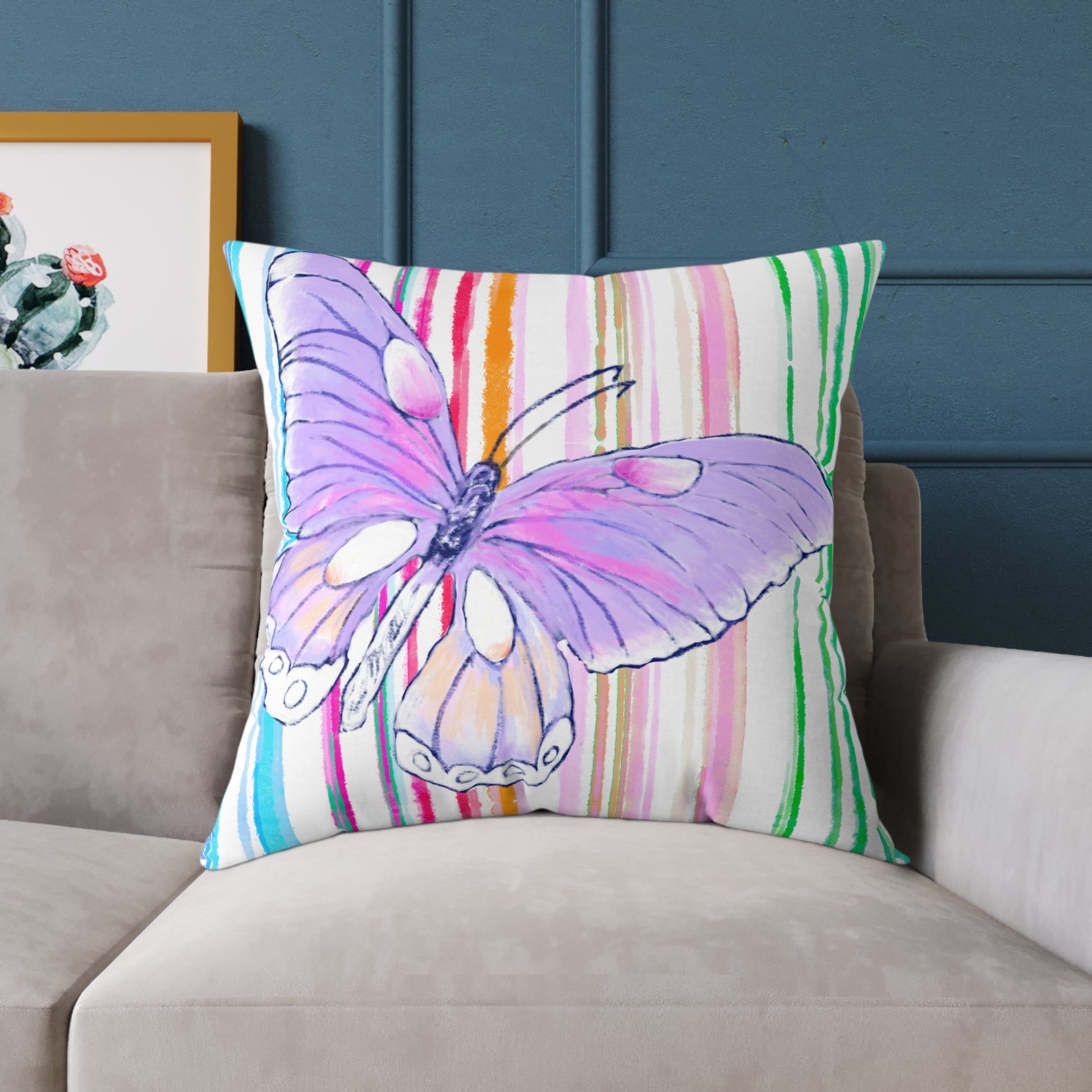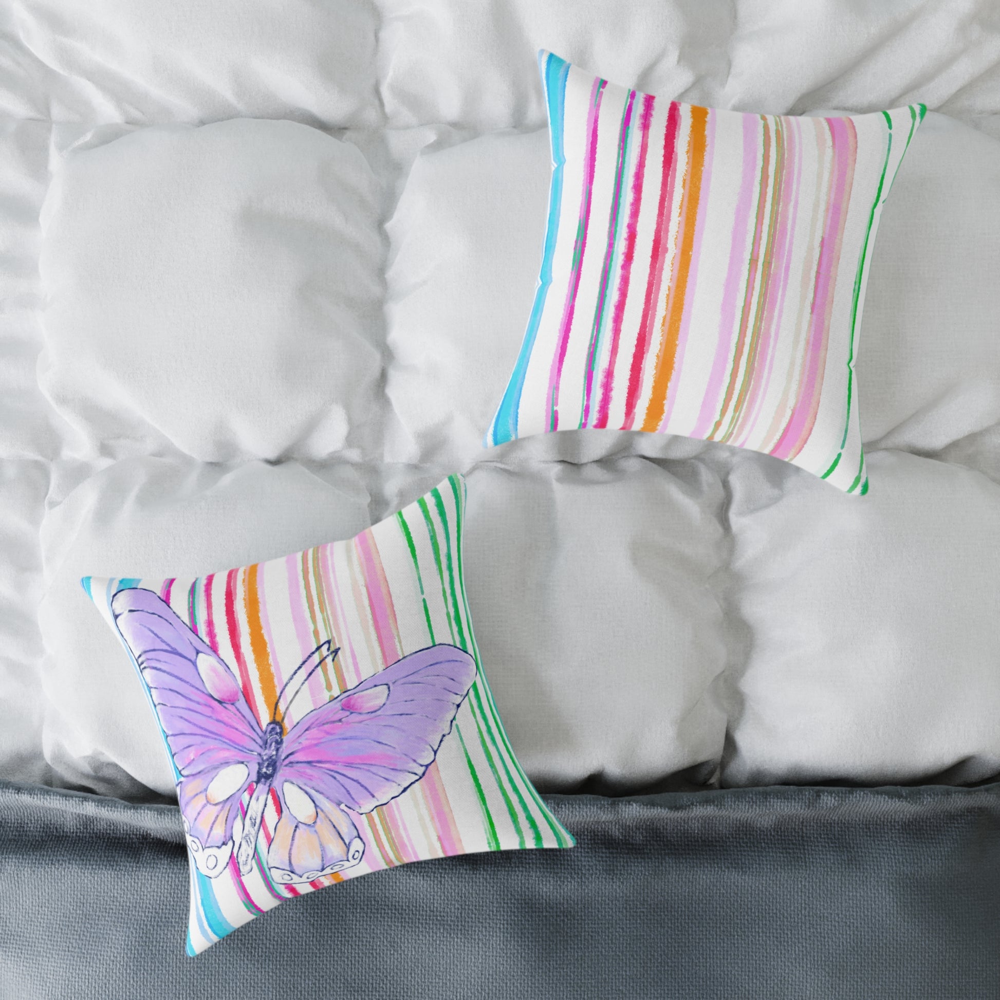 🦋 Periwinkles Design – “Butterfly & Stripes” Double-Sided Pillow