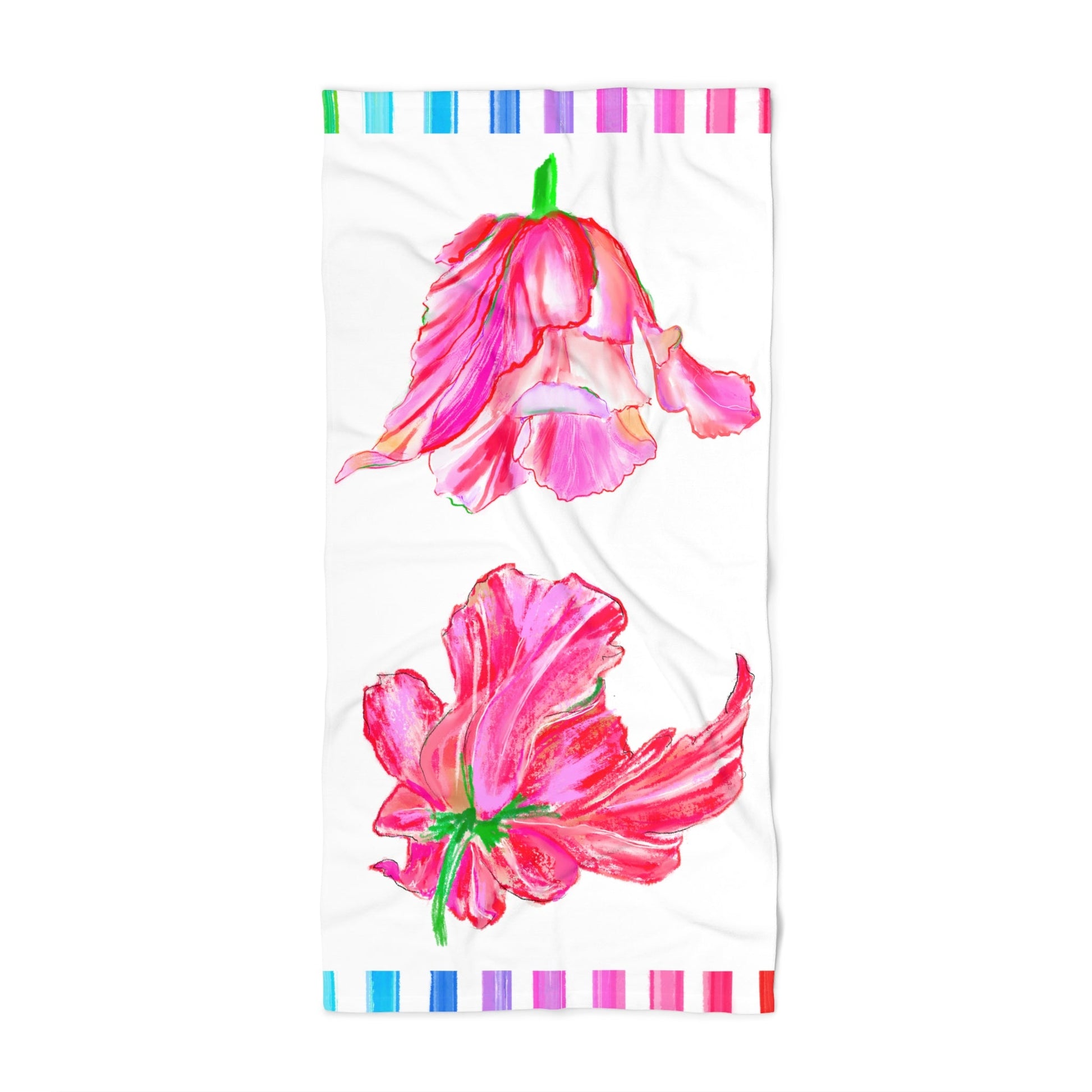 Beach days are pure bliss—and now, you can bring a splash of Periwinkles tulip art along for the ride! Whether you're lounging by the water or freshening up at home, this beautifully printed towel wraps you in the cheerful energy of a blooming garden. With vibrant, hand-drawn tulips on one side and a soft cotton loop backing on the other, it’s a perfect blend of art and function.