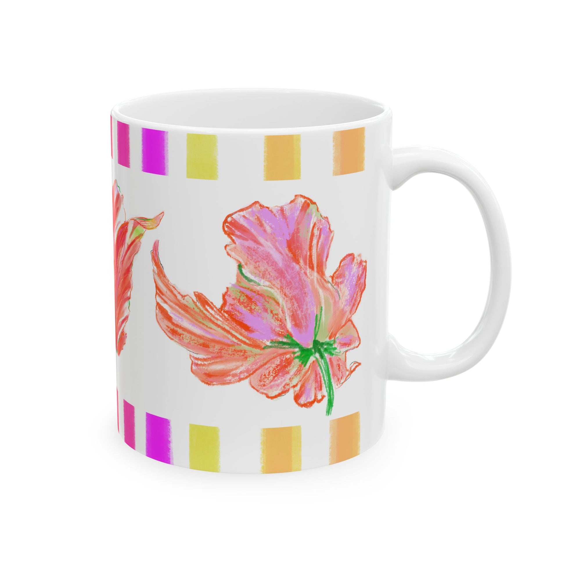 Tulip Love Ceramic Mug (11oz, 15oz) Orange, Pink