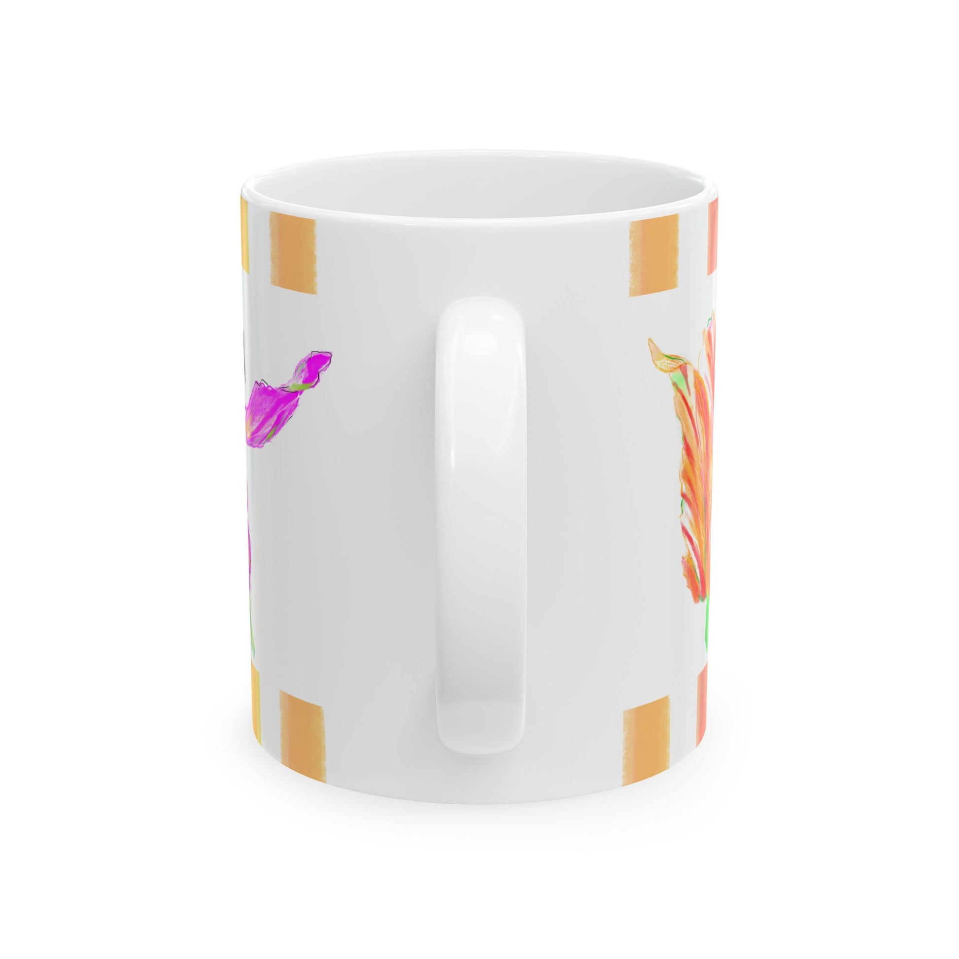 Tulip Love Ceramic Mug, (11oz, 15oz) Pink, Orange