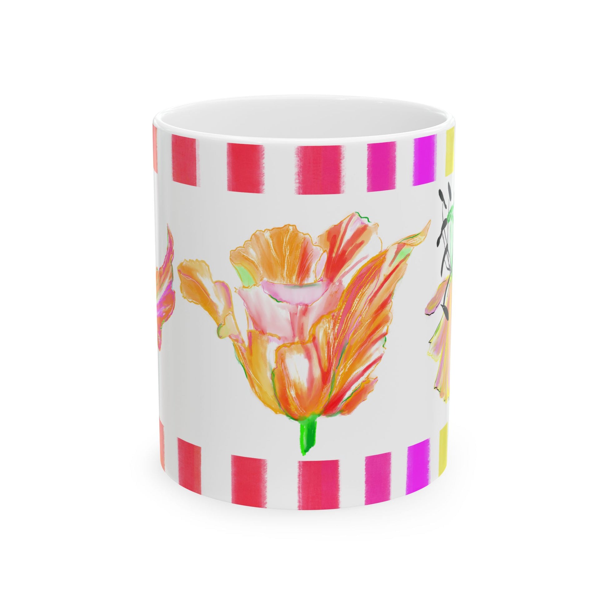Tulip Love Ceramic Mug, (11oz, 15oz) Pink, Orange, Yellow