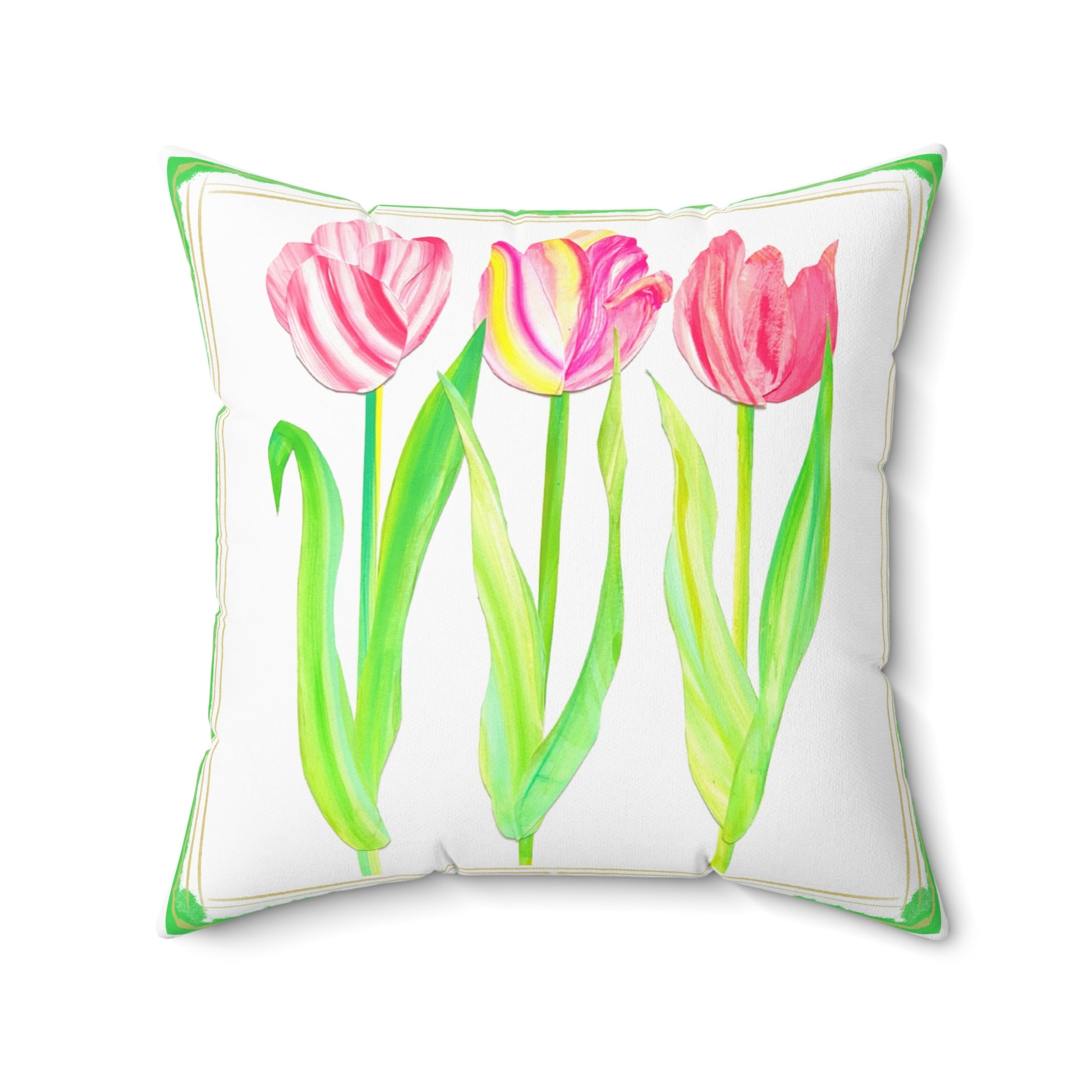 🌷 Hand-Cut Tulip Watercolor Design – Created by a tulip-loving local artist, this pillow is full of color, movement, and charm.
