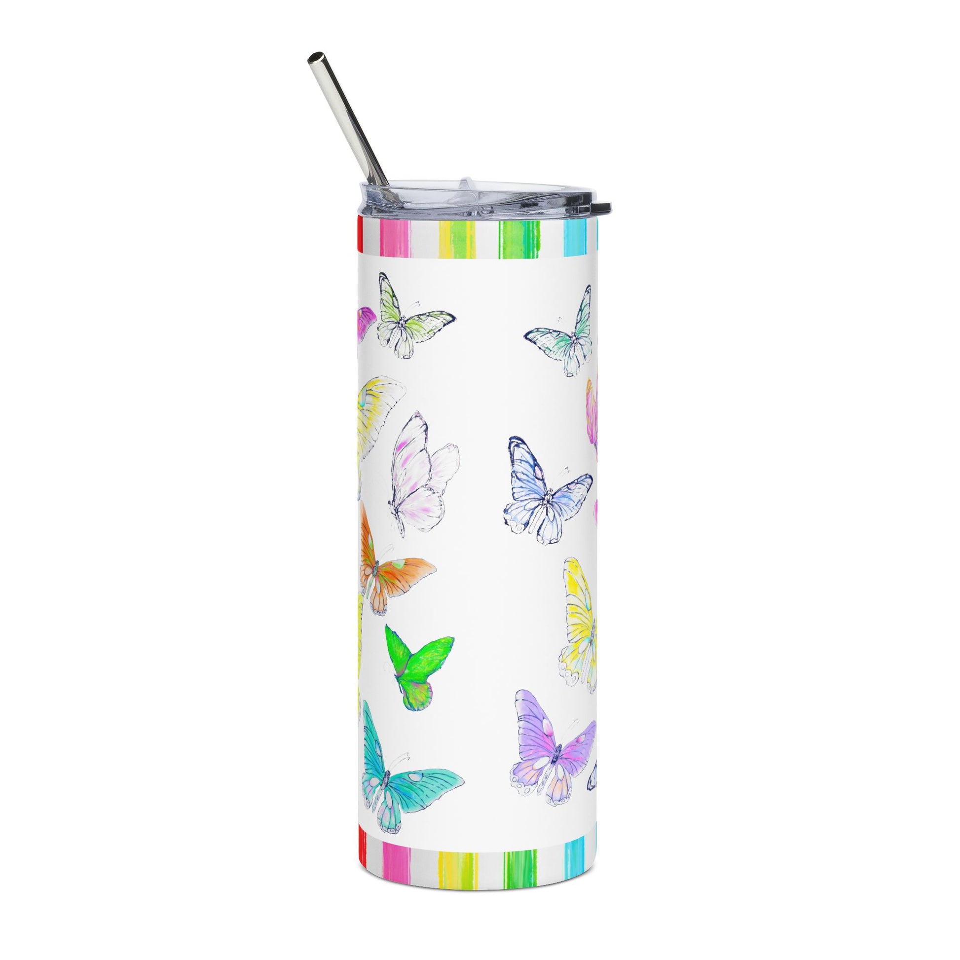 Periwinkles Design – Rainbow Stripe & Butterfly Tumbler (20 oz) 🌈🦋