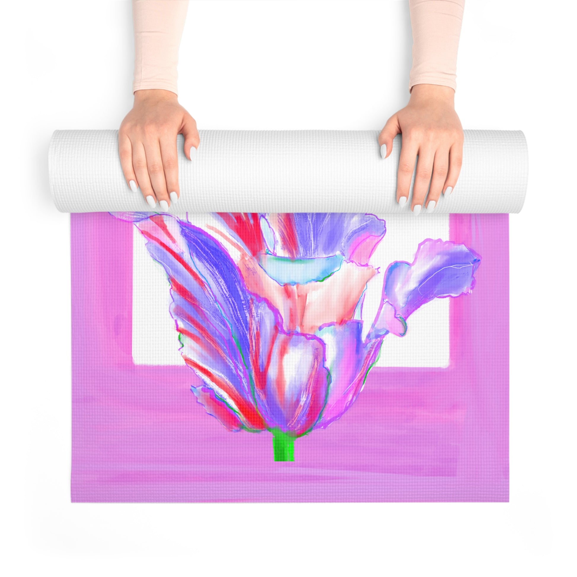 Brighten your workout space and inspire your daily movement with the “Tulip Bloom” exercise mat from Periwinkles Design. Featuring hand-painted tulips by Lois Moore arranged in bold color block formations, this mat turns ordinary exercise into a visually vibrant, soul-lifting ritual.