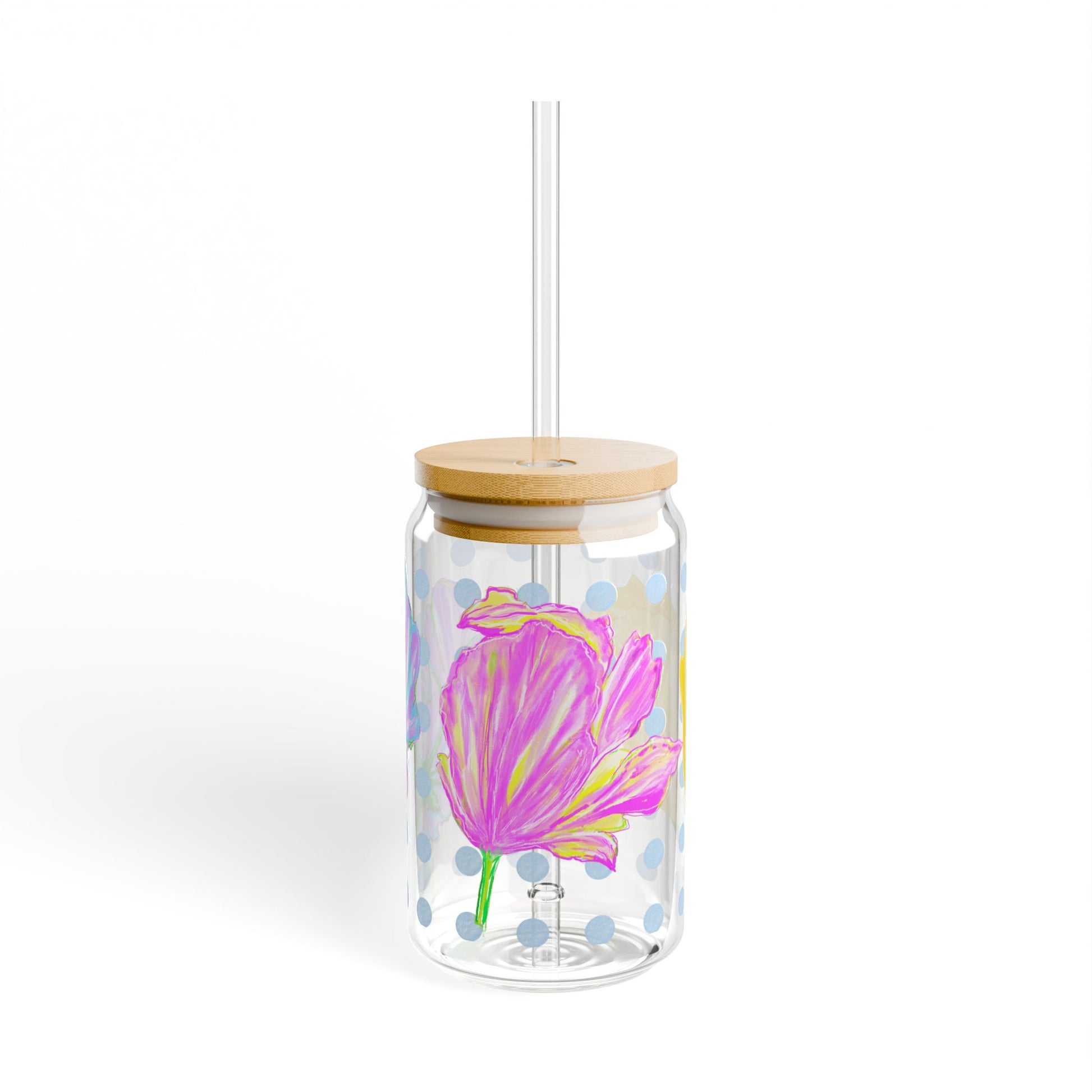 Quench your thirst with a twist of charm! Our 16oz Sipper Glass is more than just a vessel—it’s a little piece of hand-drawn joy, designed by local artists who adore color and storytelling. Whether you're packing a picnic or pouring pink lemonade on the porch with your pup and a dear friend, this sipper glass brings artful delight to everyday moments.