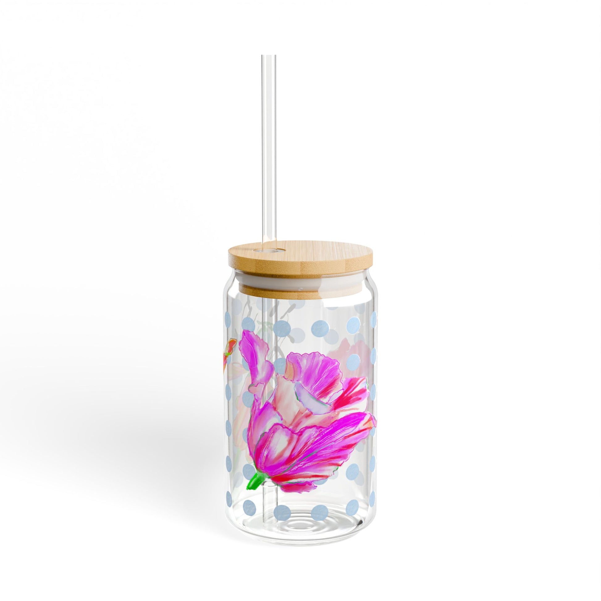 Vibrant Tulips Sipper Glass, 16oz, Raspberry, Orange