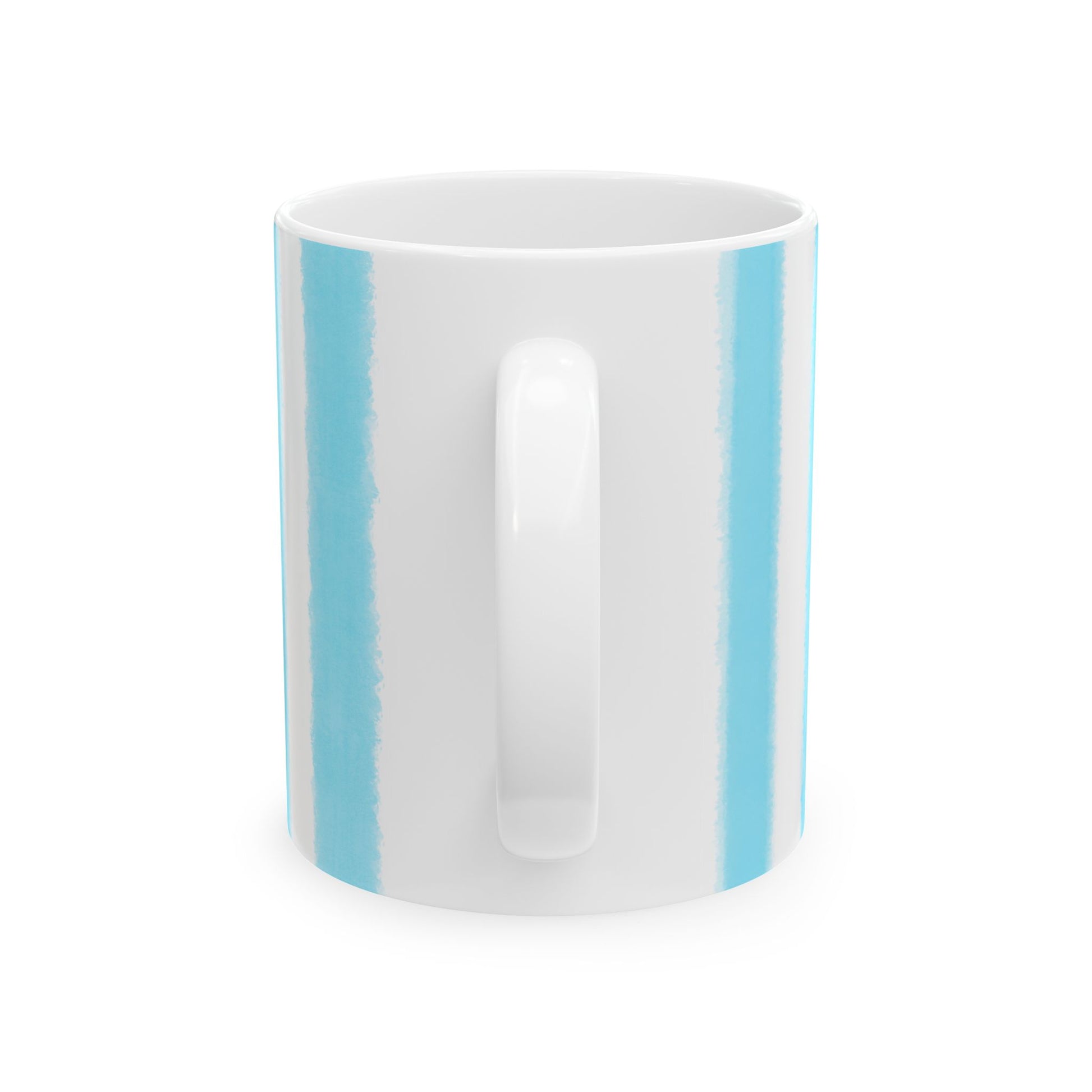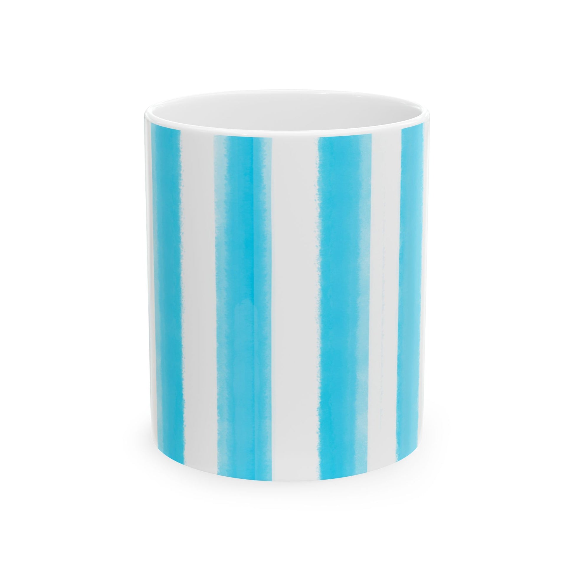 Watercolor Stripe Ceramic Mug in Aqua, 11oz