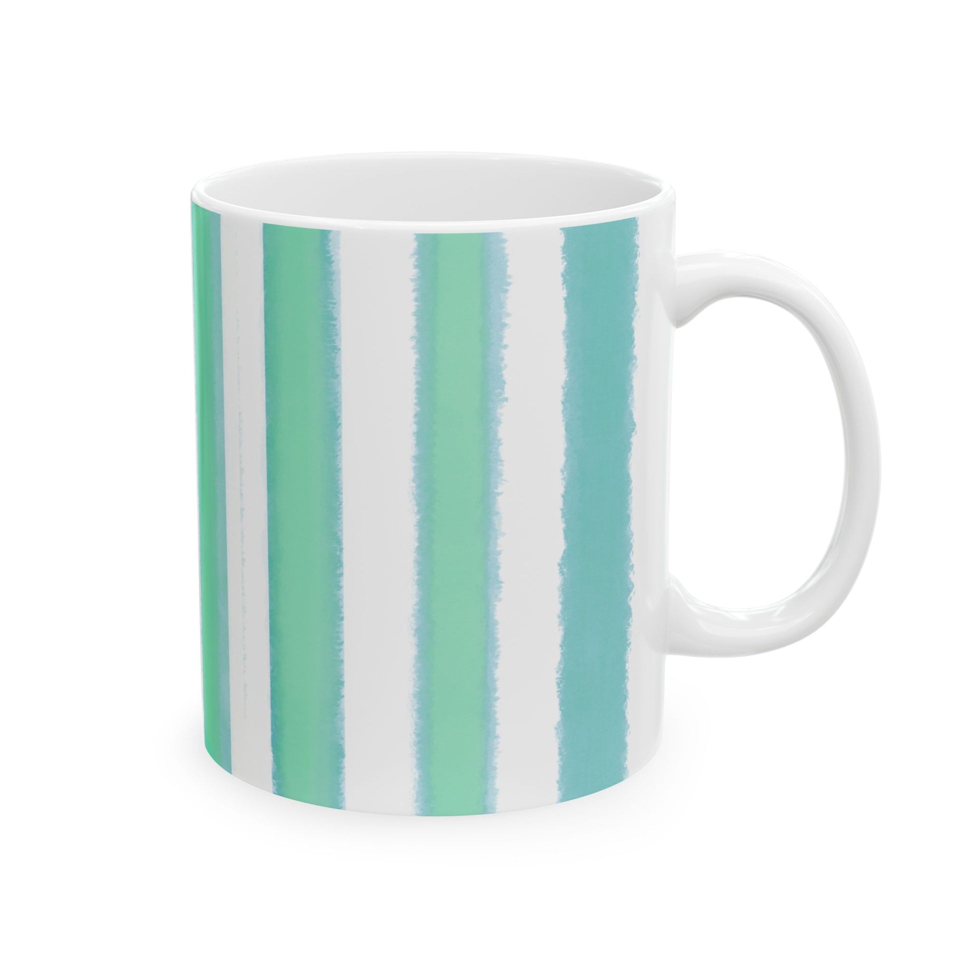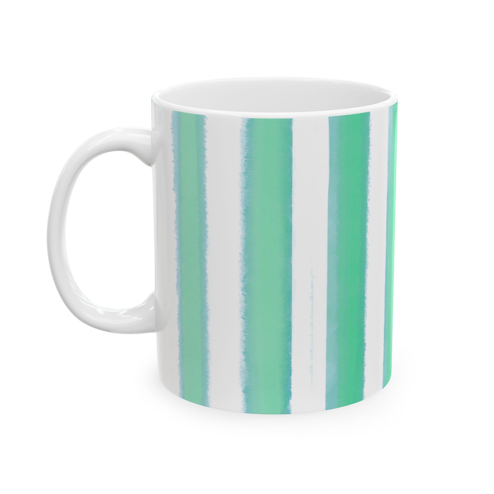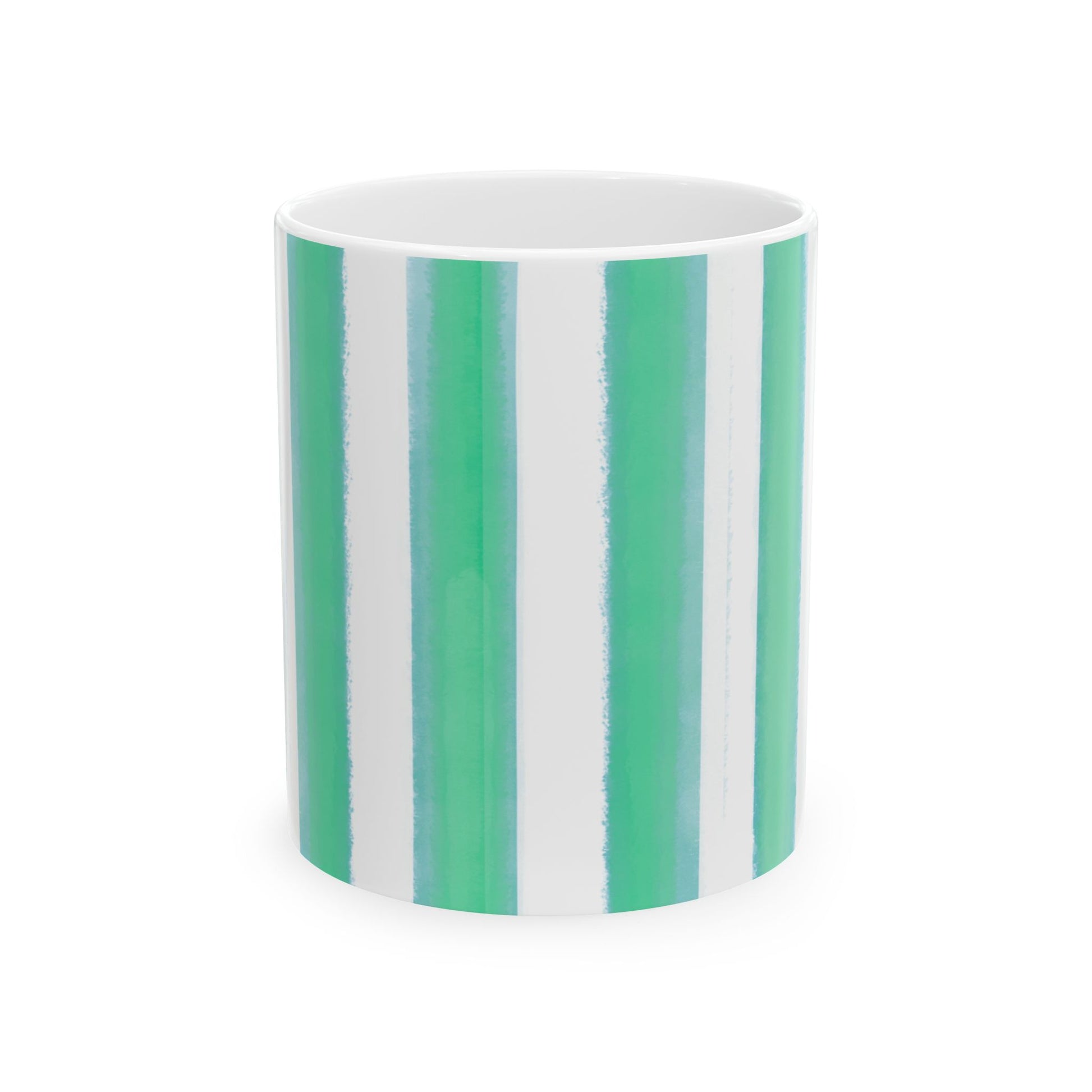 Watercolor Stripe Ceramic Mug in Aqua Green, 11oz