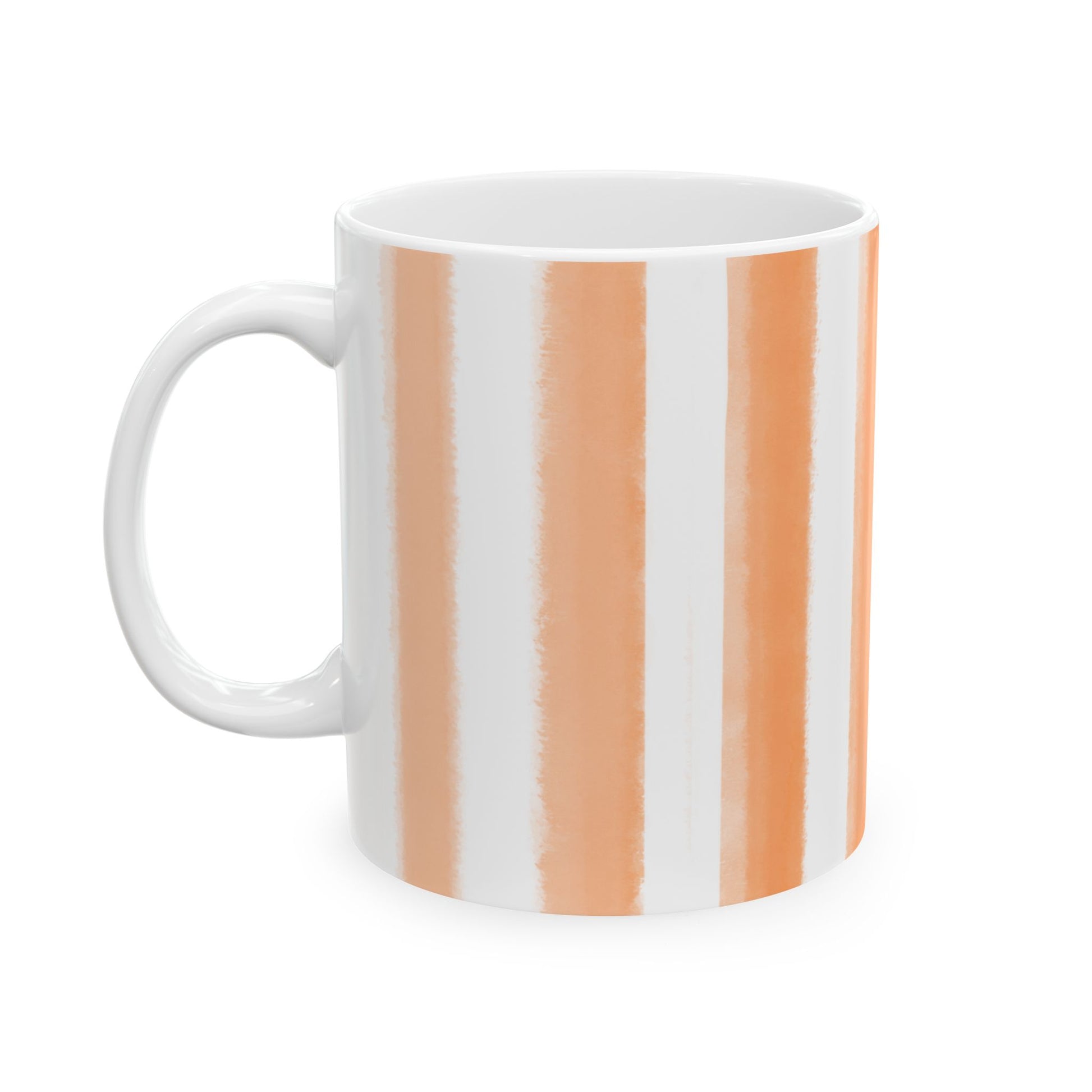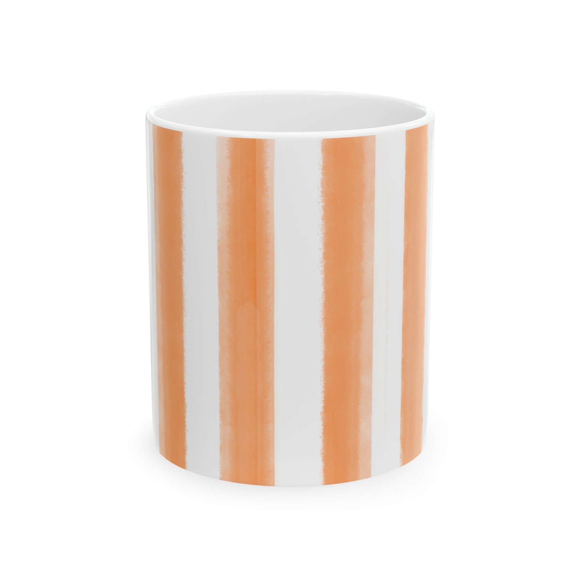 Watercolor Stripe Ceramic Mug in Orange, 11oz