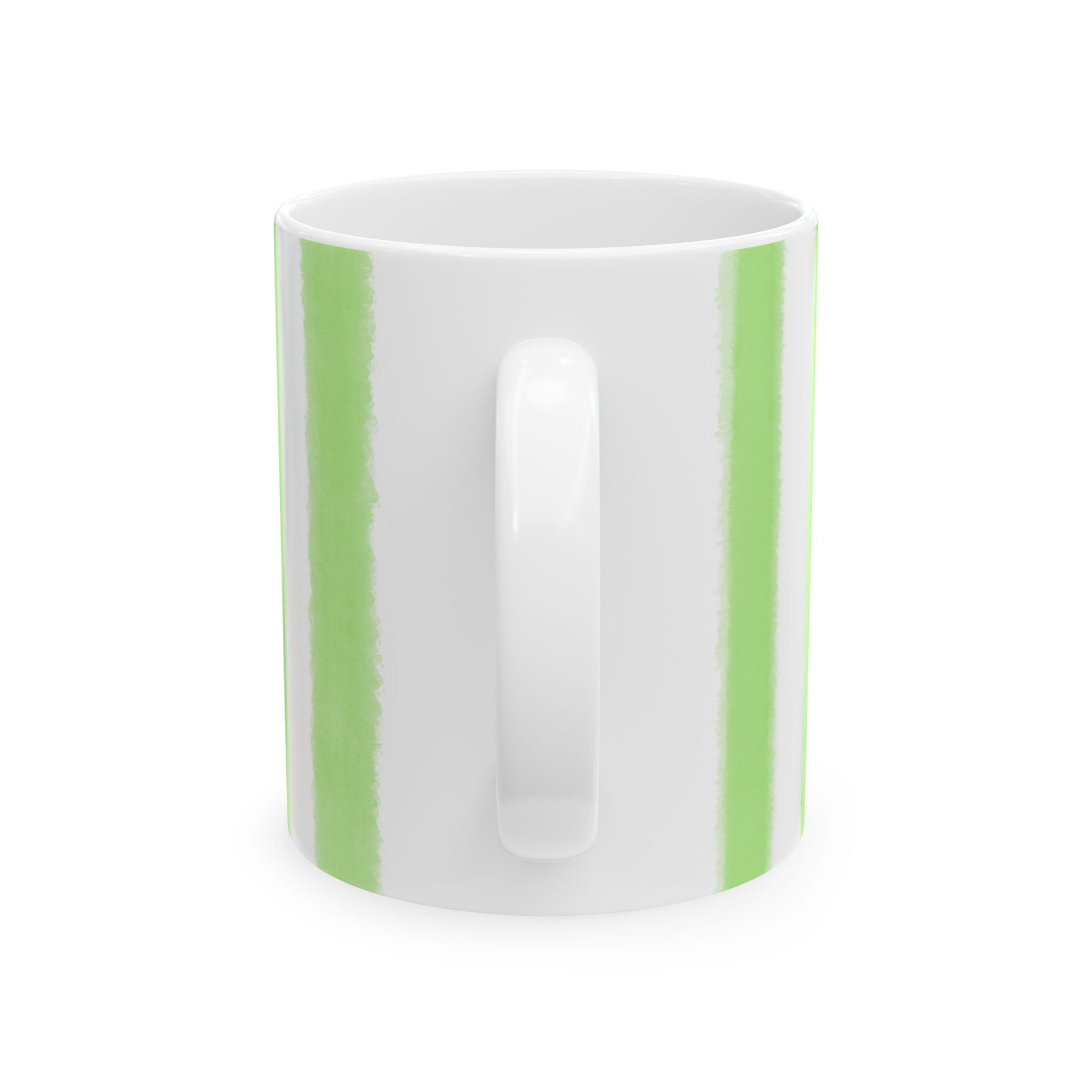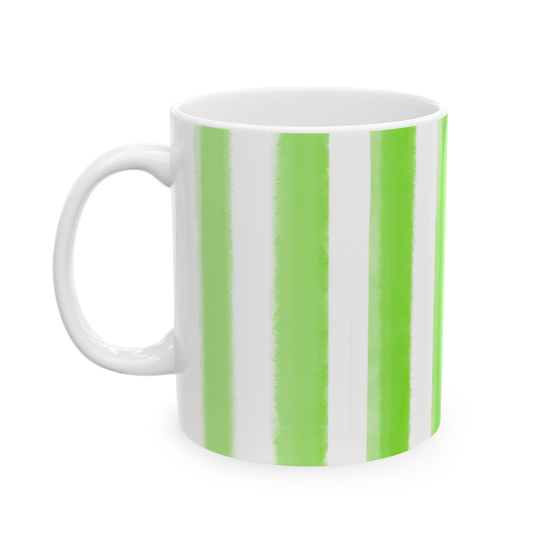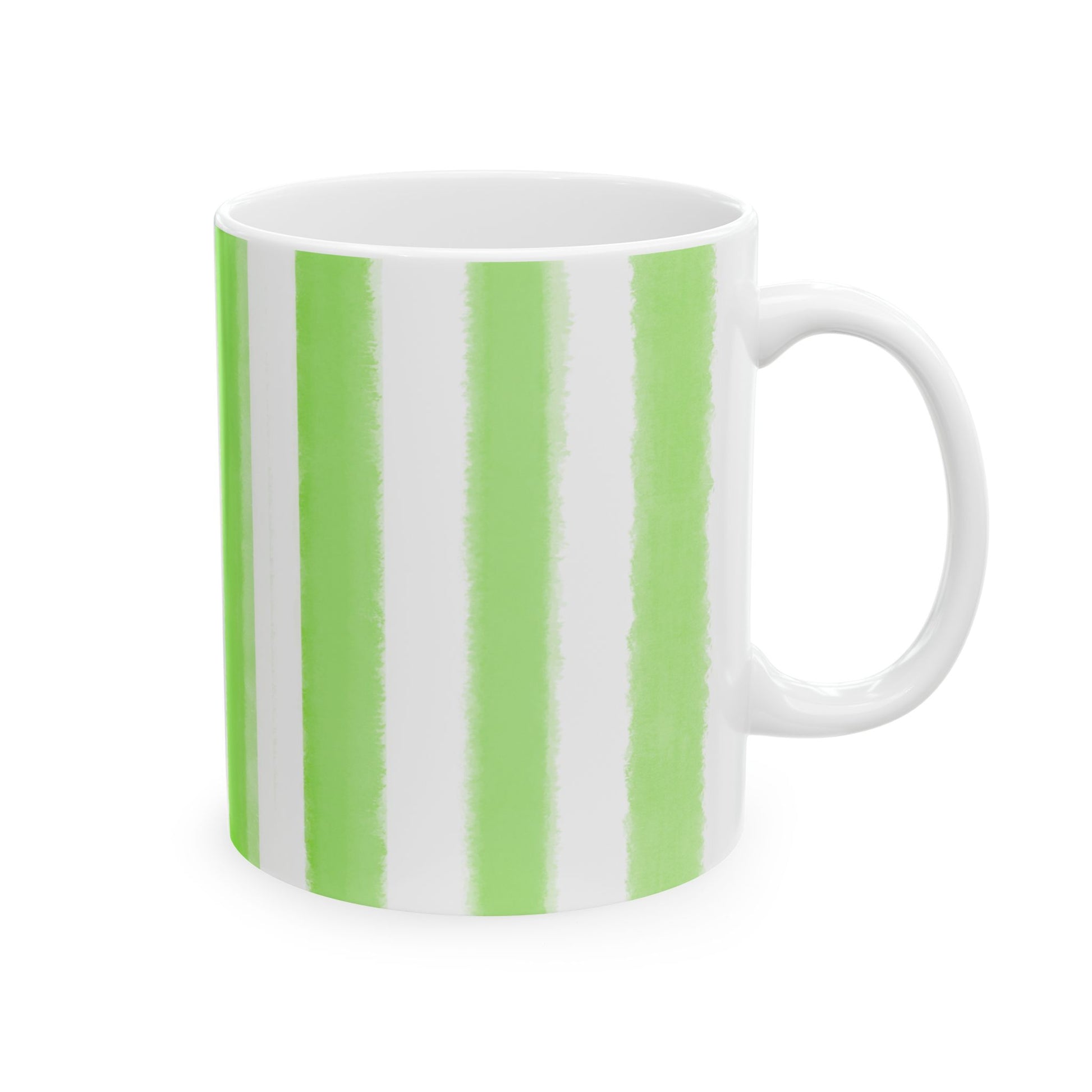 Watercolor Stripes Ceramic Mug in Light Green, 11oz