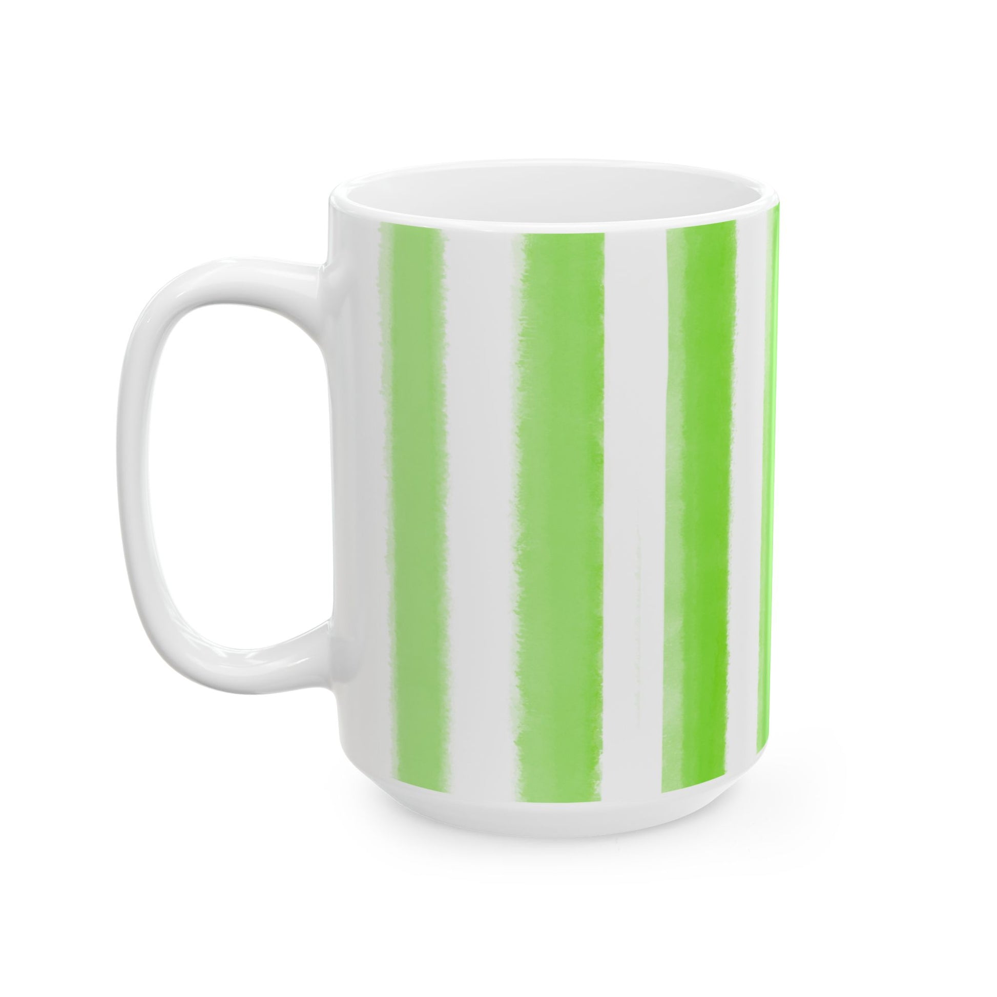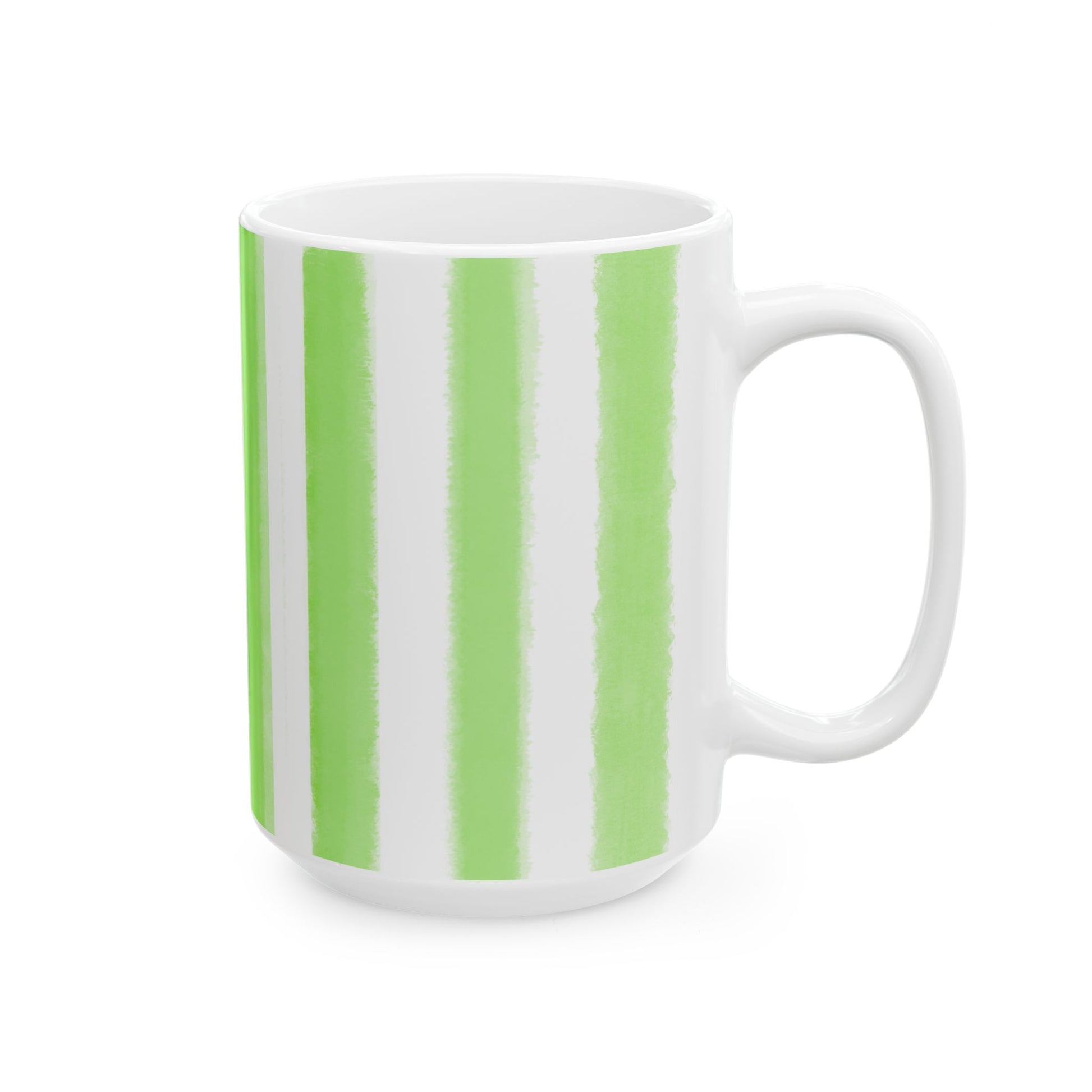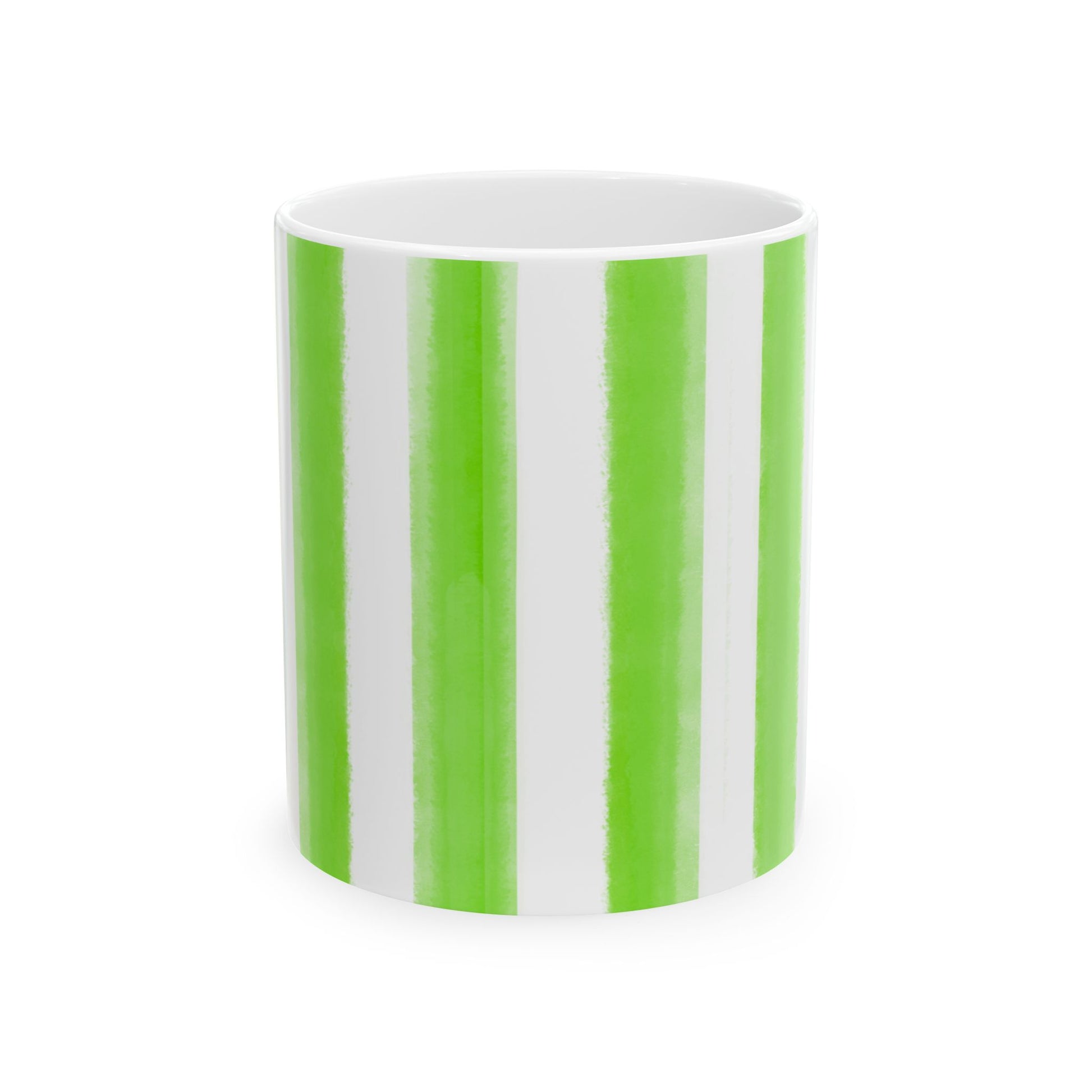 Watercolor Stripes Ceramic Mug in Light Green, 11oz