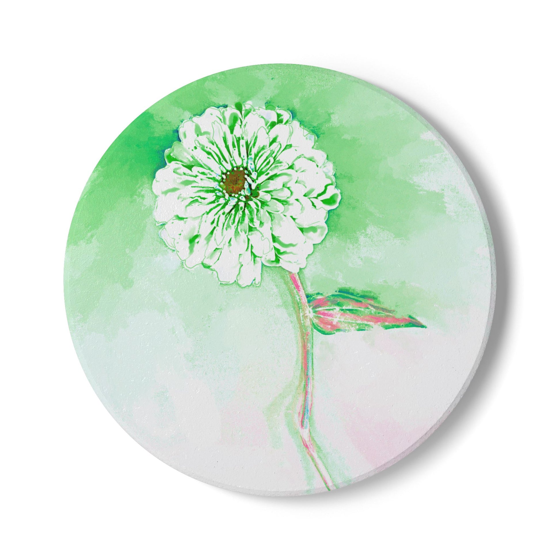 Bring the energy and color of a blooming garden into your everyday life with the Vibrant Zinnia Bloom Coasters from Periwinkles Design! Inspired by a visit to a flower farm, Joel hand-painted these joyful zinnias, capturing their vibrant charm and whimsical nature in each colorful, abstract bloom.