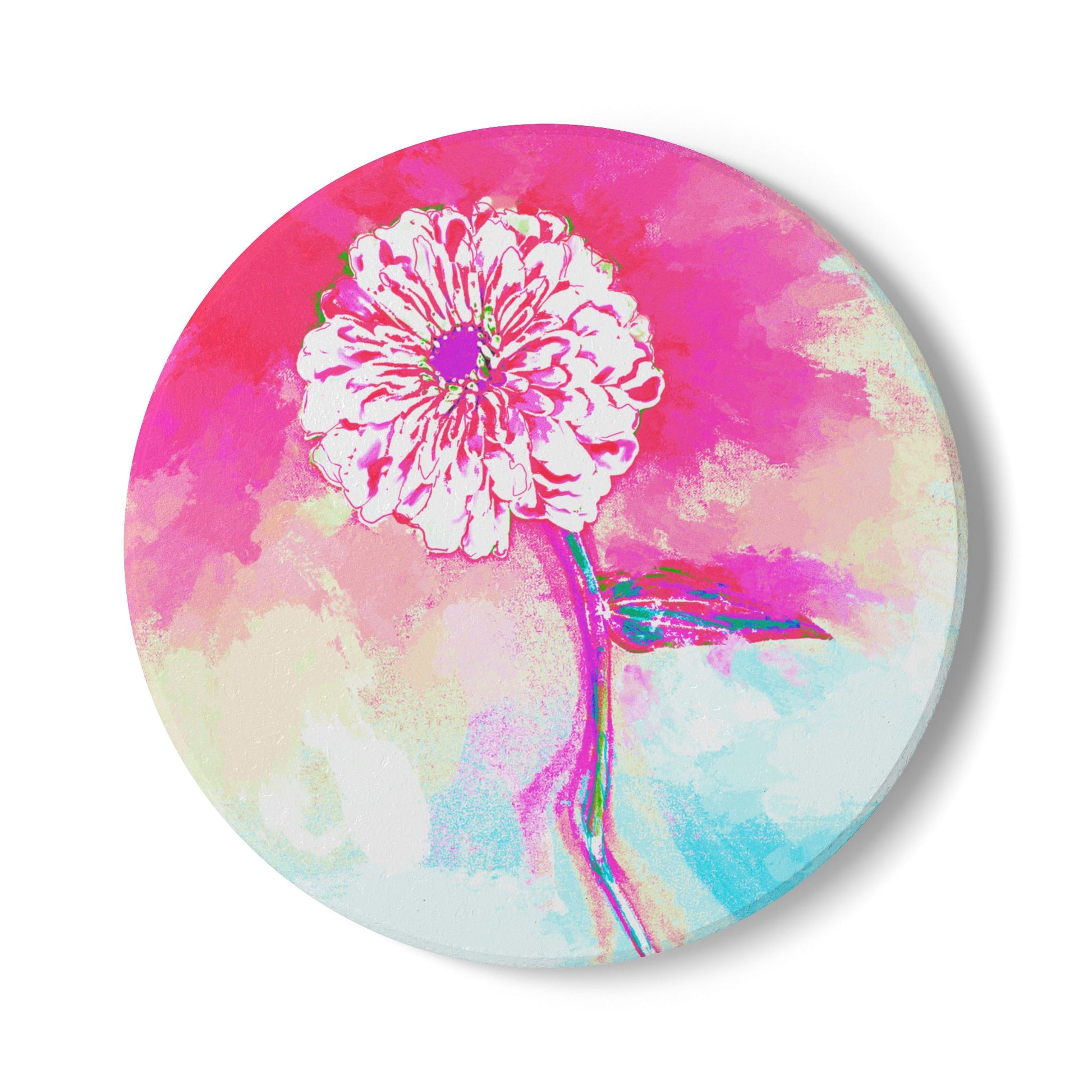 Bring the energy and color of a blooming garden into your everyday life with the Vibrant Zinnia Bloom Coasters from Periwinkles Design! Inspired by a visit to a flower farm, Joel hand-painted these joyful zinnias, capturing their vibrant charm and whimsical nature in each colorful, abstract bloom.