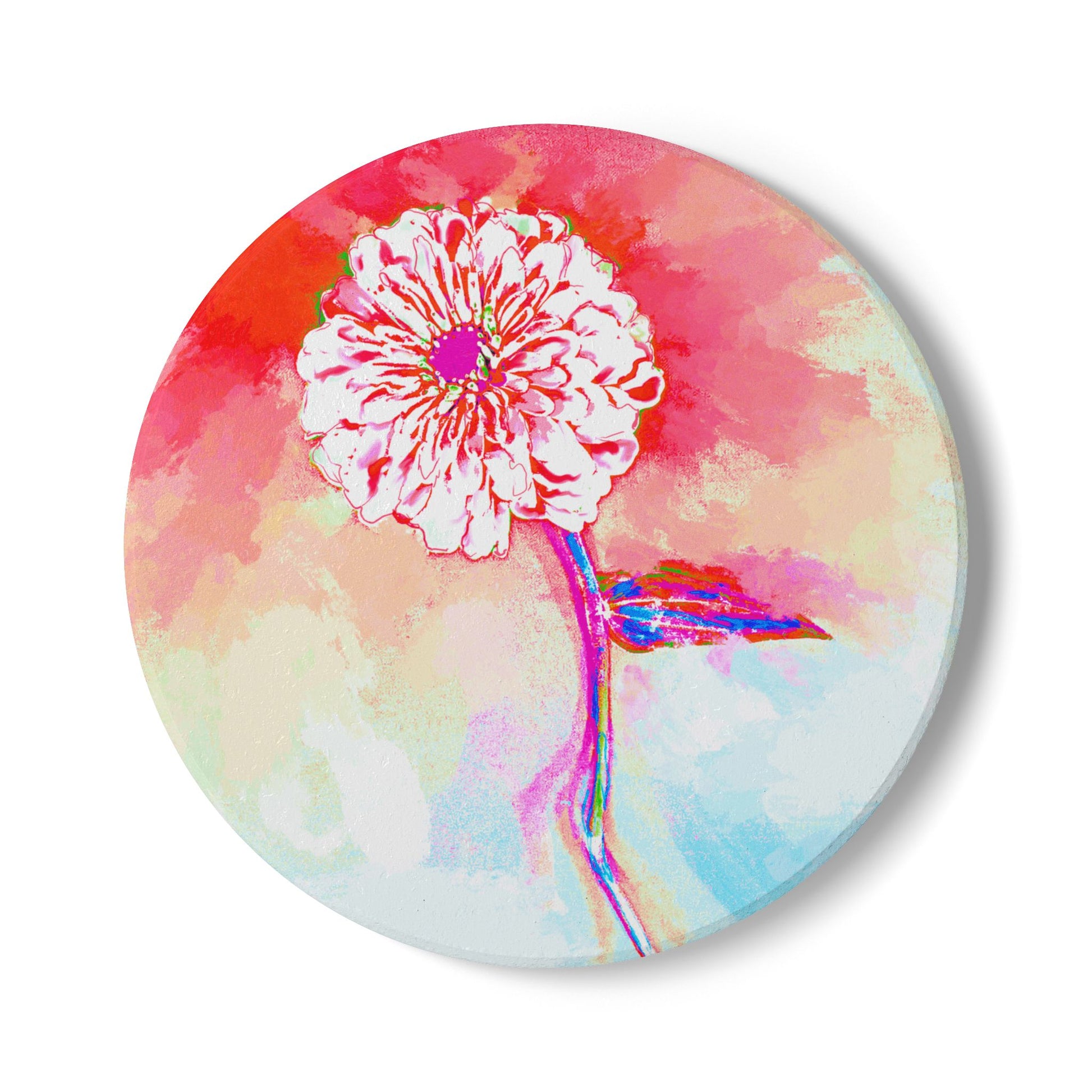 Bring the energy and color of a blooming garden into your everyday life with the Vibrant Zinnia Bloom Coasters from Periwinkles Design! Inspired by a visit to a flower farm, Joel hand-painted these joyful zinnias, capturing their vibrant charm and whimsical nature in each colorful, abstract bloom.