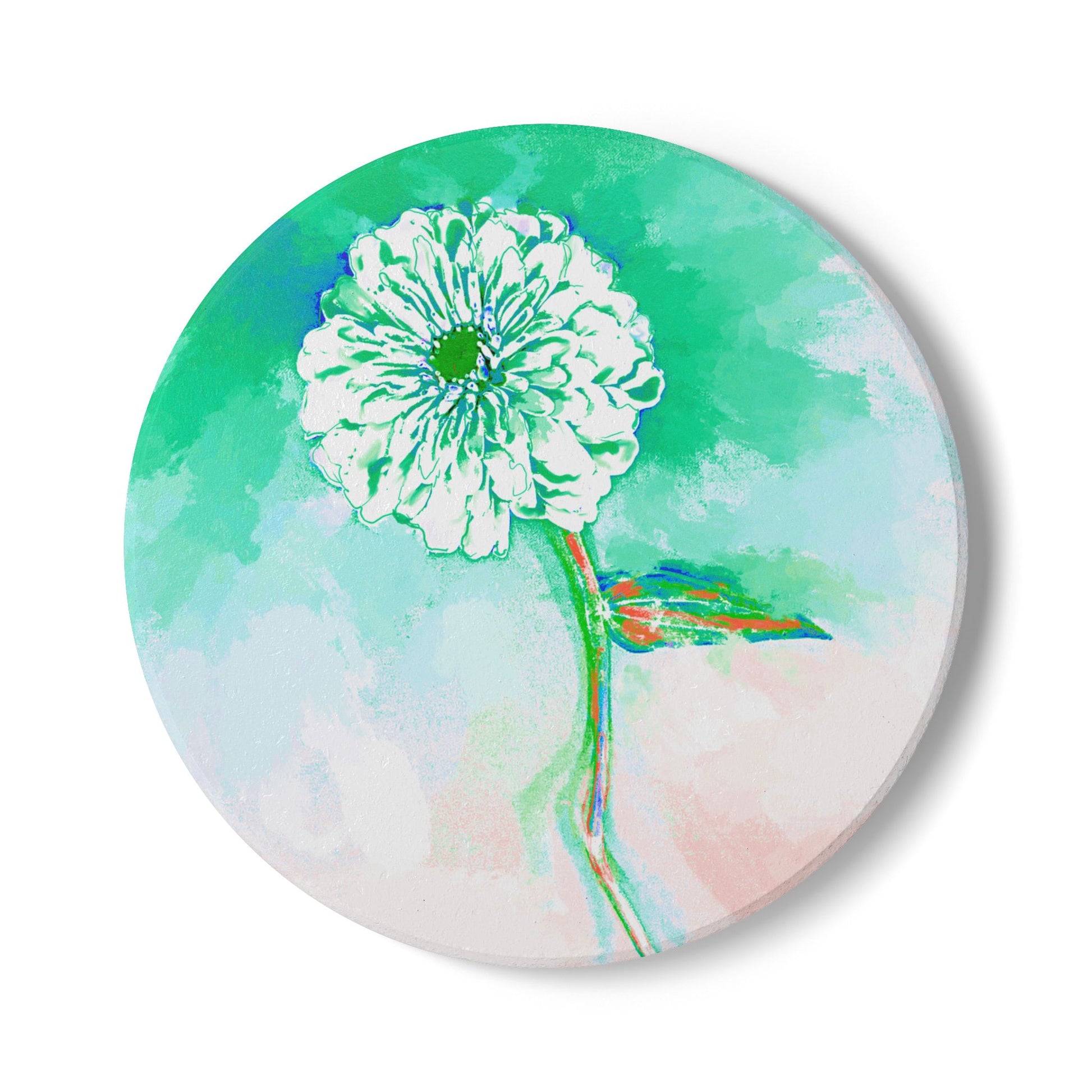 Bring the energy and color of a blooming garden into your everyday life with the Vibrant Zinnia Bloom Coasters from Periwinkles Design! Inspired by a visit to a flower farm, Joel hand-painted these joyful zinnias, capturing their vibrant charm and whimsical nature in each colorful, abstract bloom.