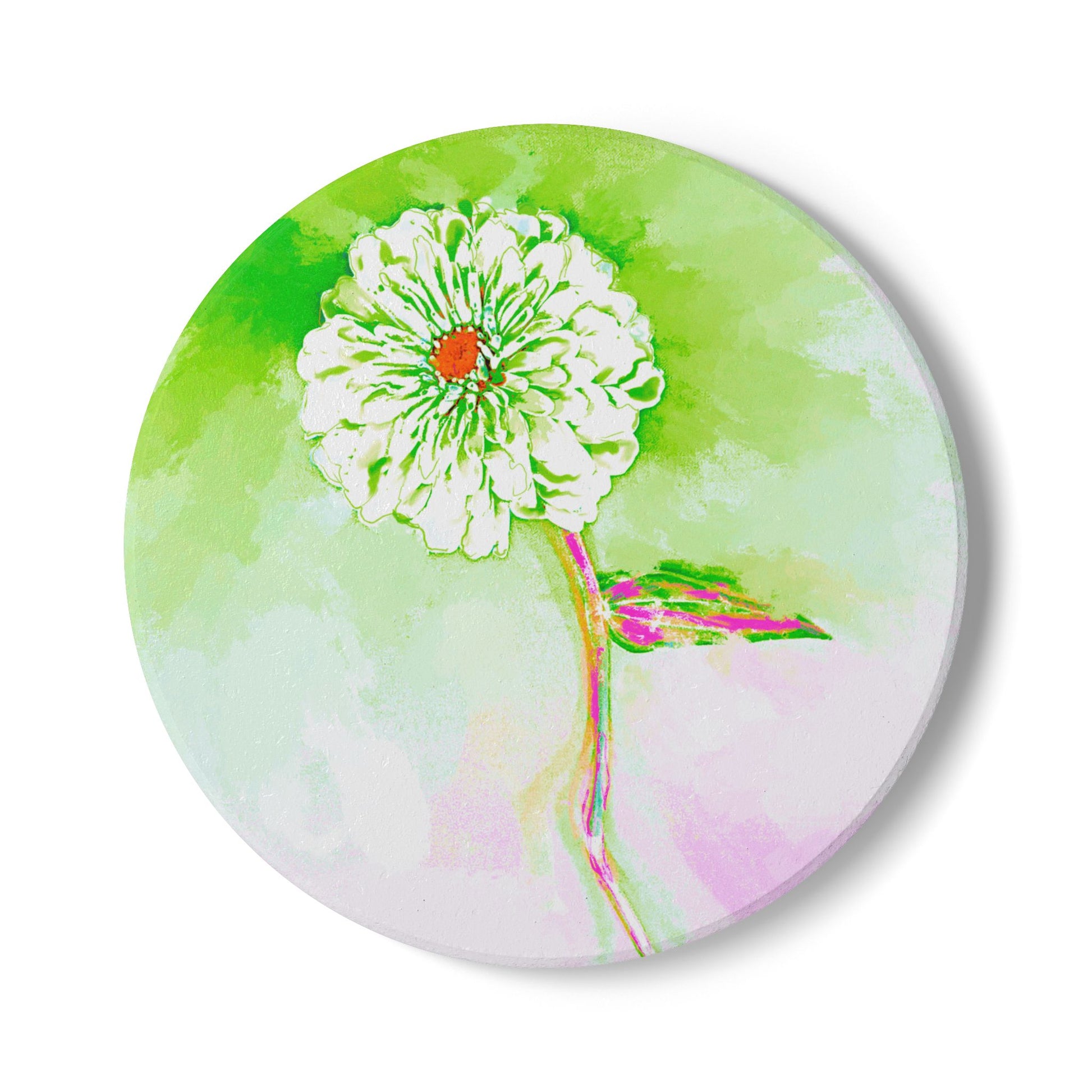 Bring the energy and color of a blooming garden into your everyday life with the Vibrant Zinnia Bloom Coasters from Periwinkles Design! Inspired by a visit to a flower farm, Joel hand-painted these joyful zinnias, capturing their vibrant charm and whimsical nature in each colorful, abstract bloom.