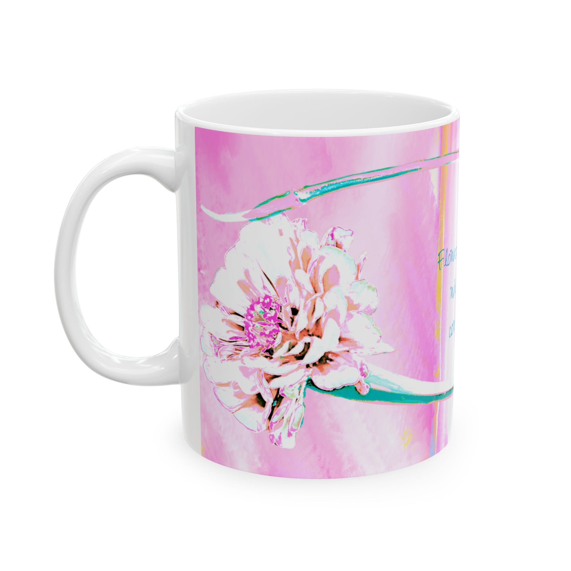 Zinnia Ceramic Mug in Raspberry Orange "Flowers are God's whispers of contentment"