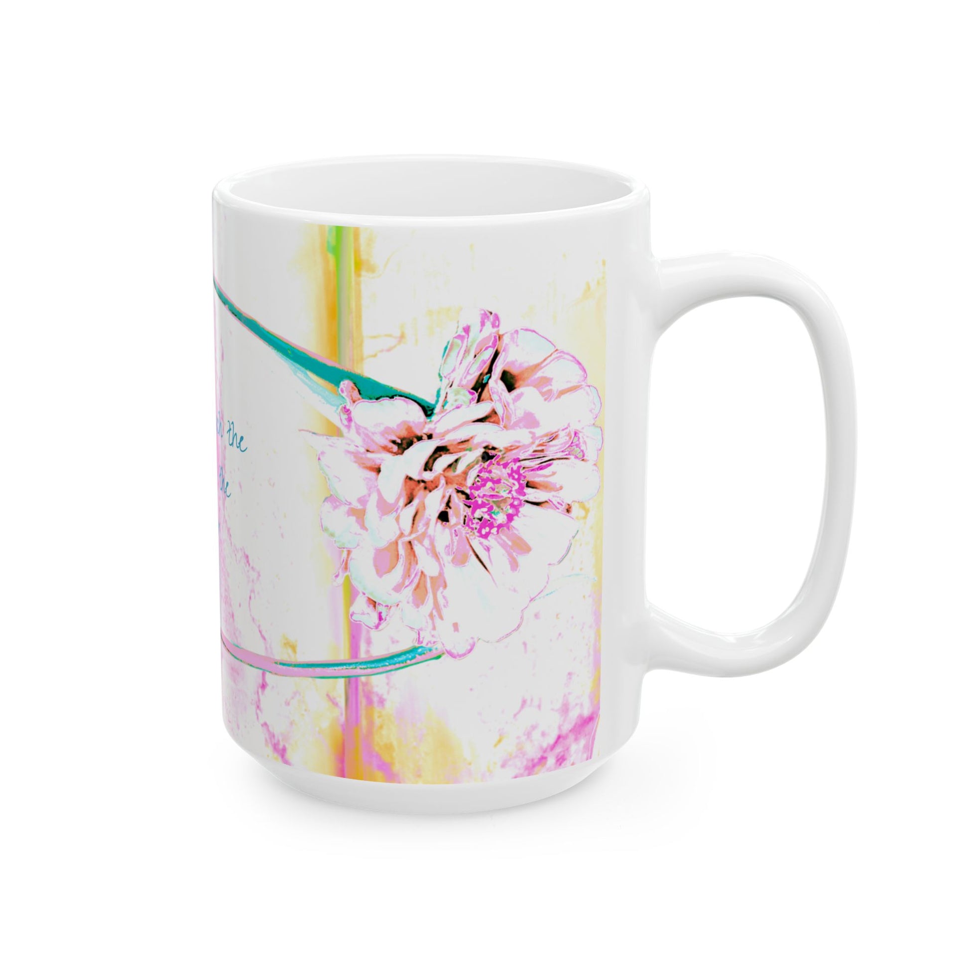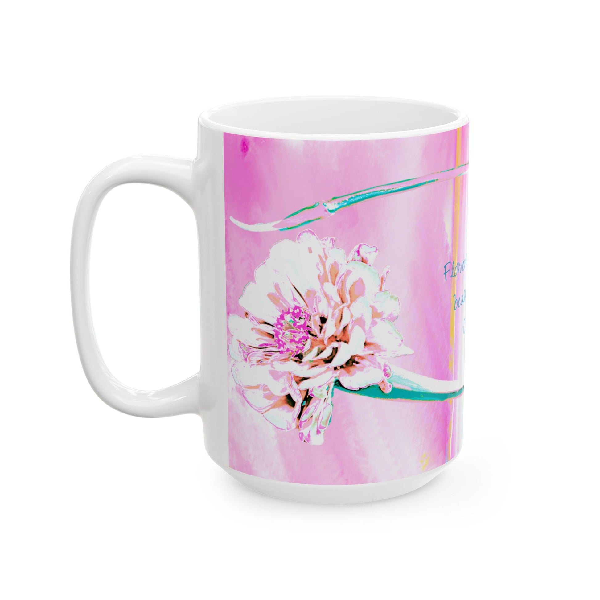 Zinnia Ceramic Mug Raspberry Orange " Flowers preach the beauty of the Creator"