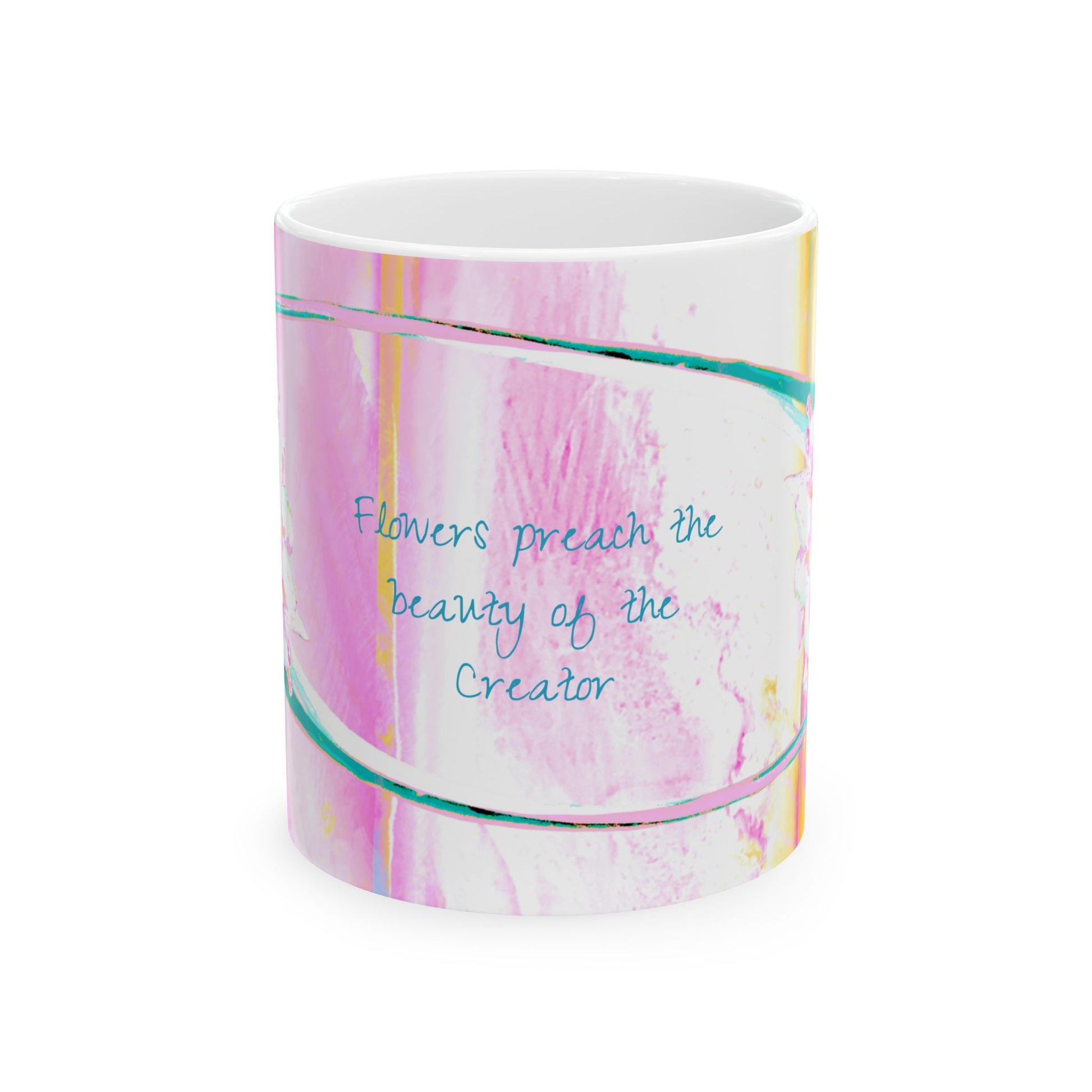 Featuring a quote from Charles Spurgeon, "Flowers preach the beauty of the Creator," this mug reminds us that creation itself is a sermon—one that calls us to see God's handiwork, dwell on His loveliness, and ask ourselves what He desires from us. Every sip becomes an opportunity to pause, listen, and find joy in the One who made all things beautiful.