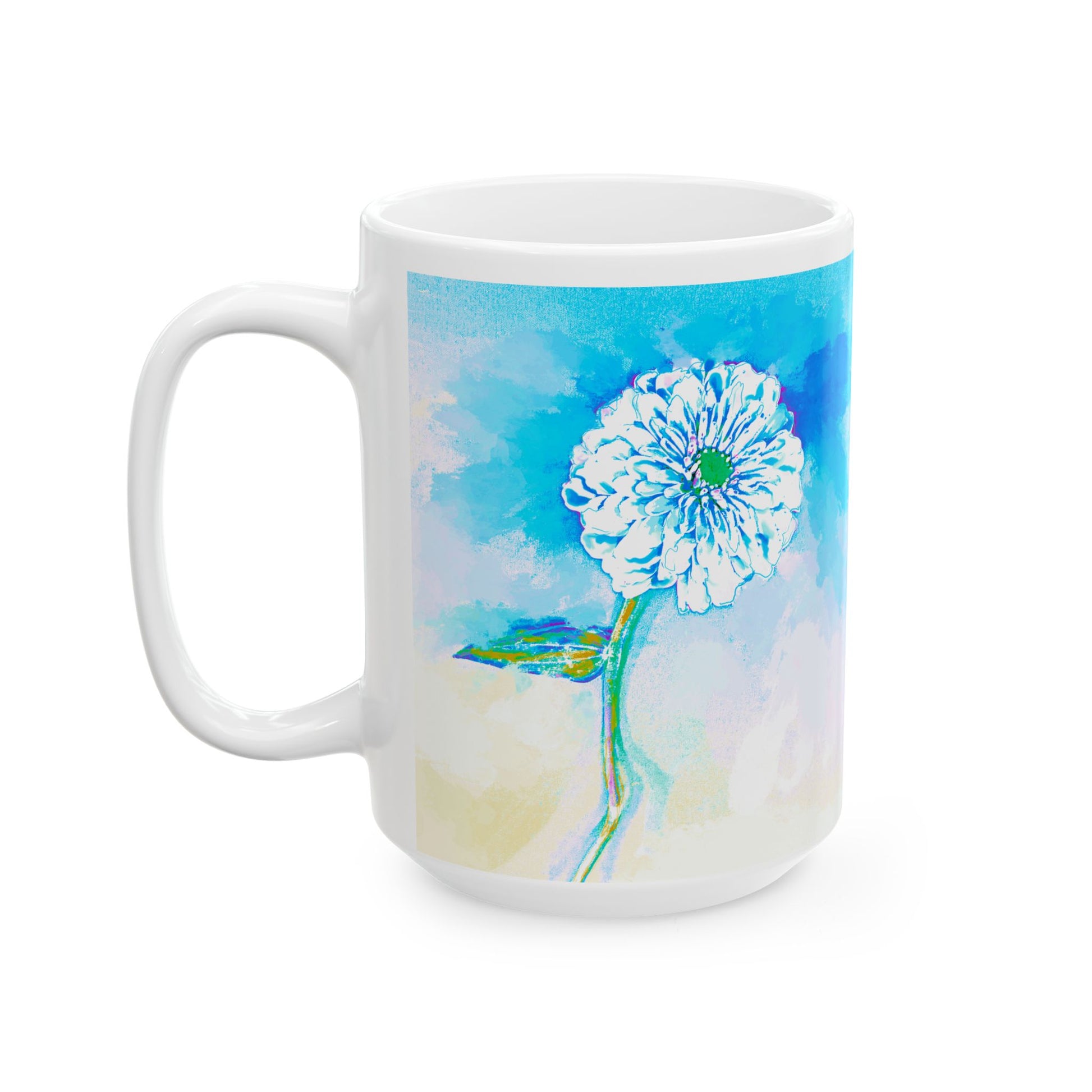 Brighten your morning ritual or afternoon pause with this lively ceramic mug featuring a hand-drawn bouquet of abstract zinnias. Each bloom bursts with expressive color, adding not only a touch of whimsy to your cabinet, but also a bold reminder about the beauty and brevity of life.