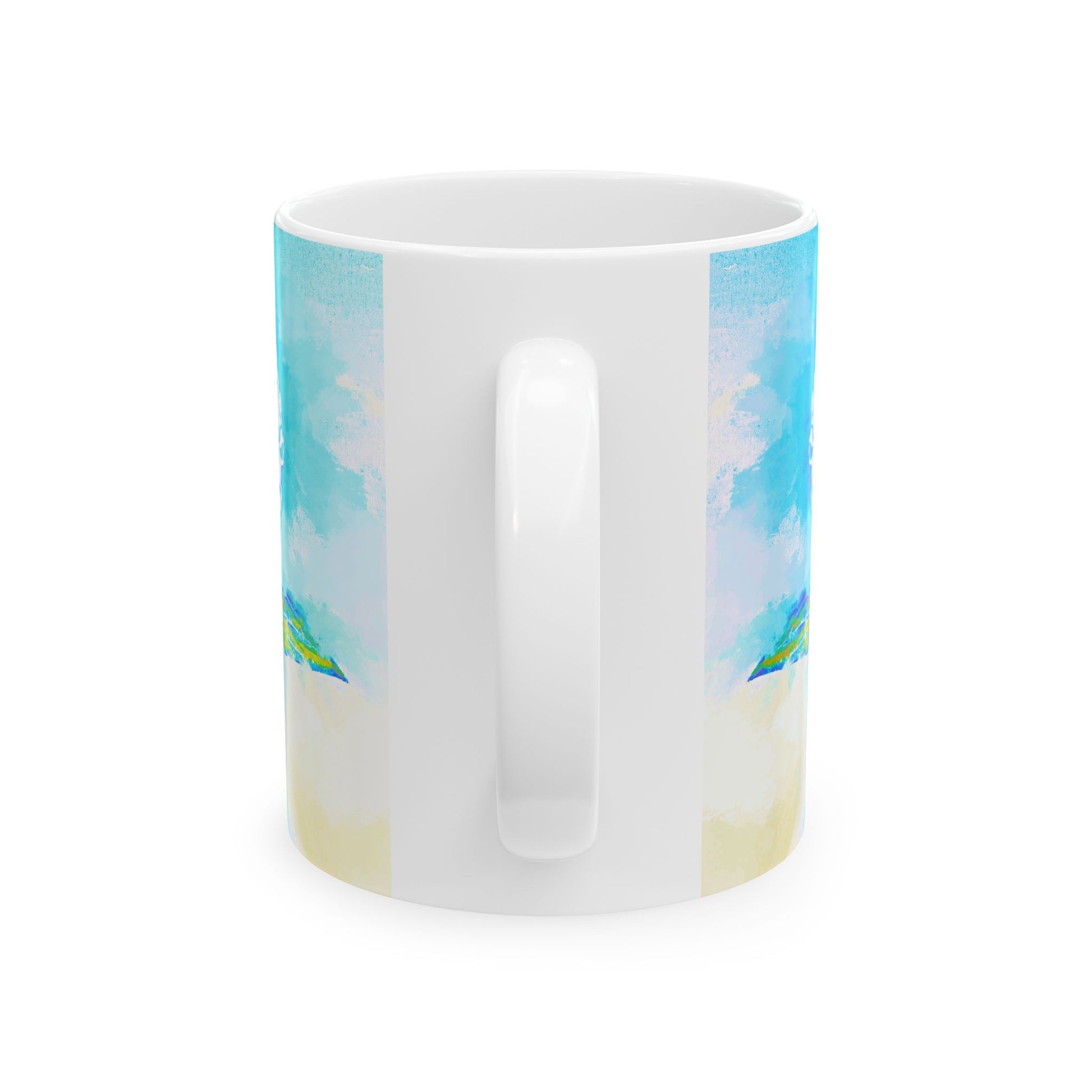 🌼 Periwinkles Design – “Abstract Zinnias & Conversation” Ceramic Mug